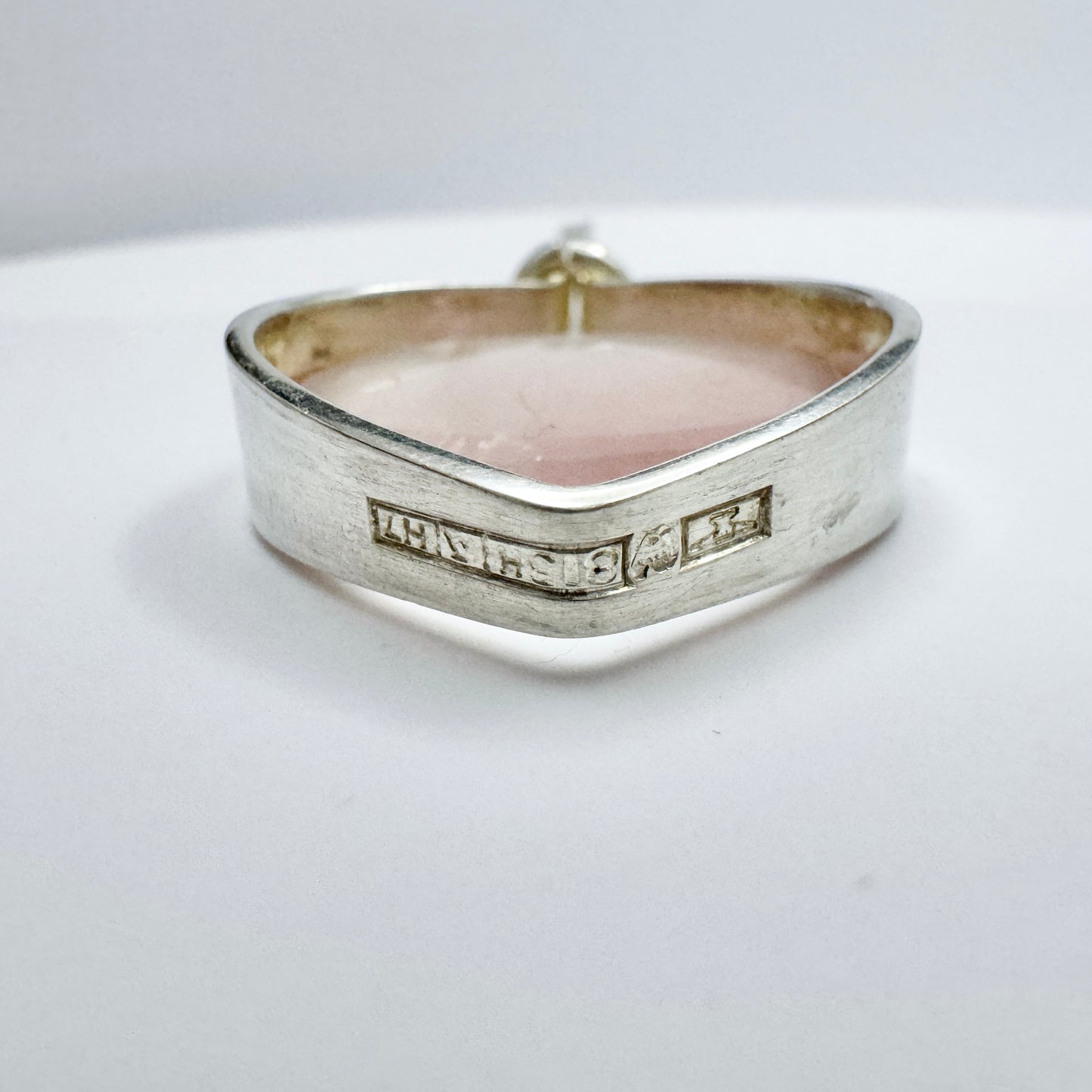 Wonderful and much sought after vintage solid silver rose quartz pendant. Fully hallmarked for renowned Elis Kauppi, Kupittaan Kulta Finland year 1962.