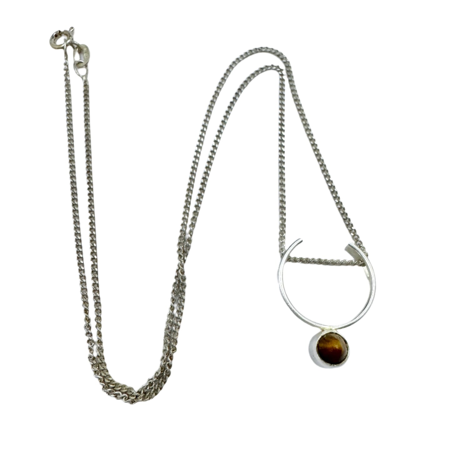 Elis Kauppi, Kupittaan Kulta Finland 1965. Vintage Solid Silver Tiger's Eye Pendant + Chain.