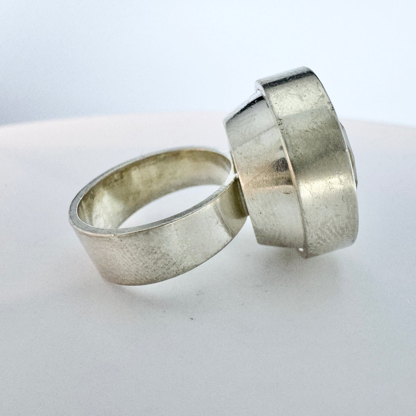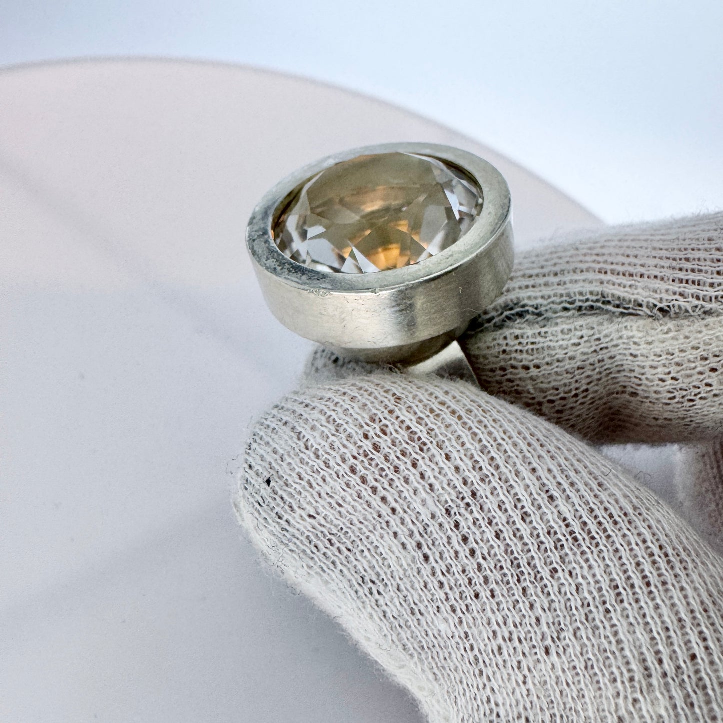 Elis Kauppi, Kupittaan Kulta, Finland 1968. Vintage Solid Silver Rock Crystal Ring.