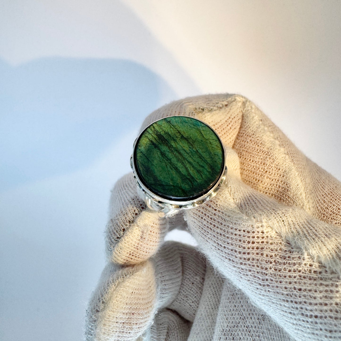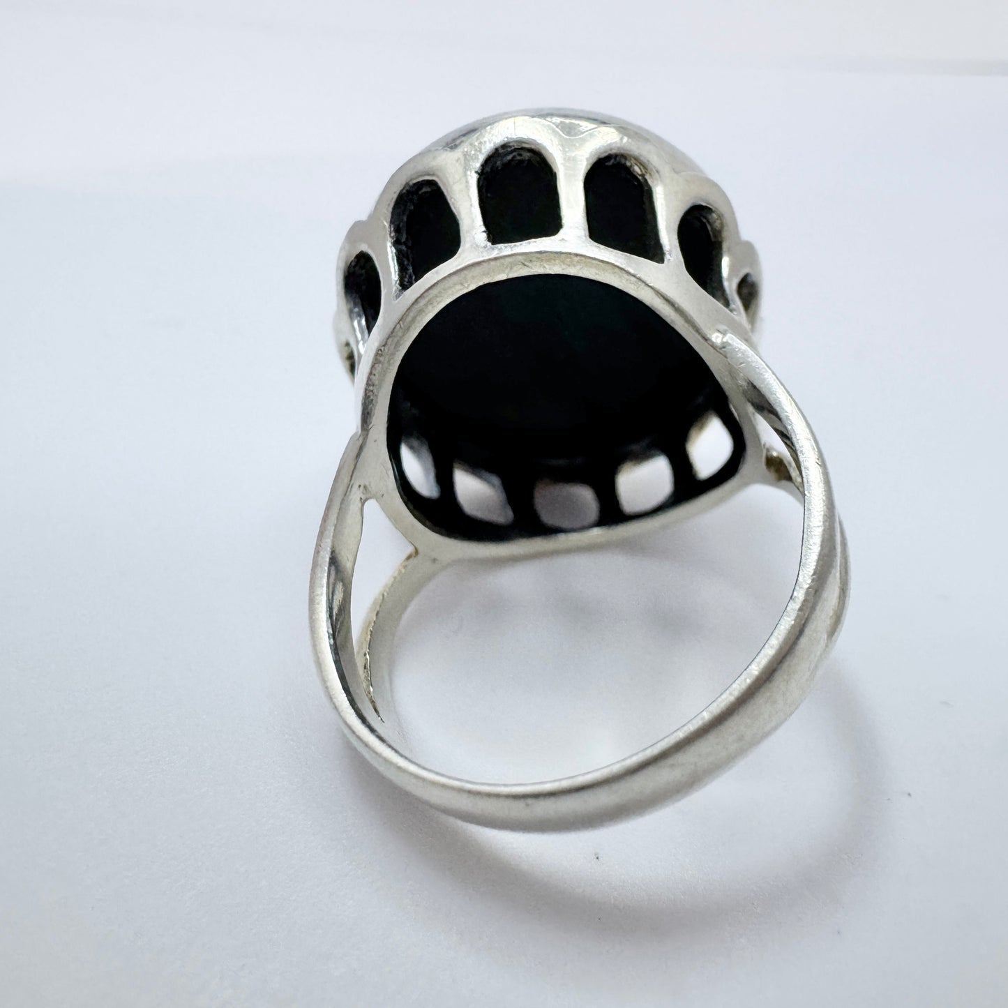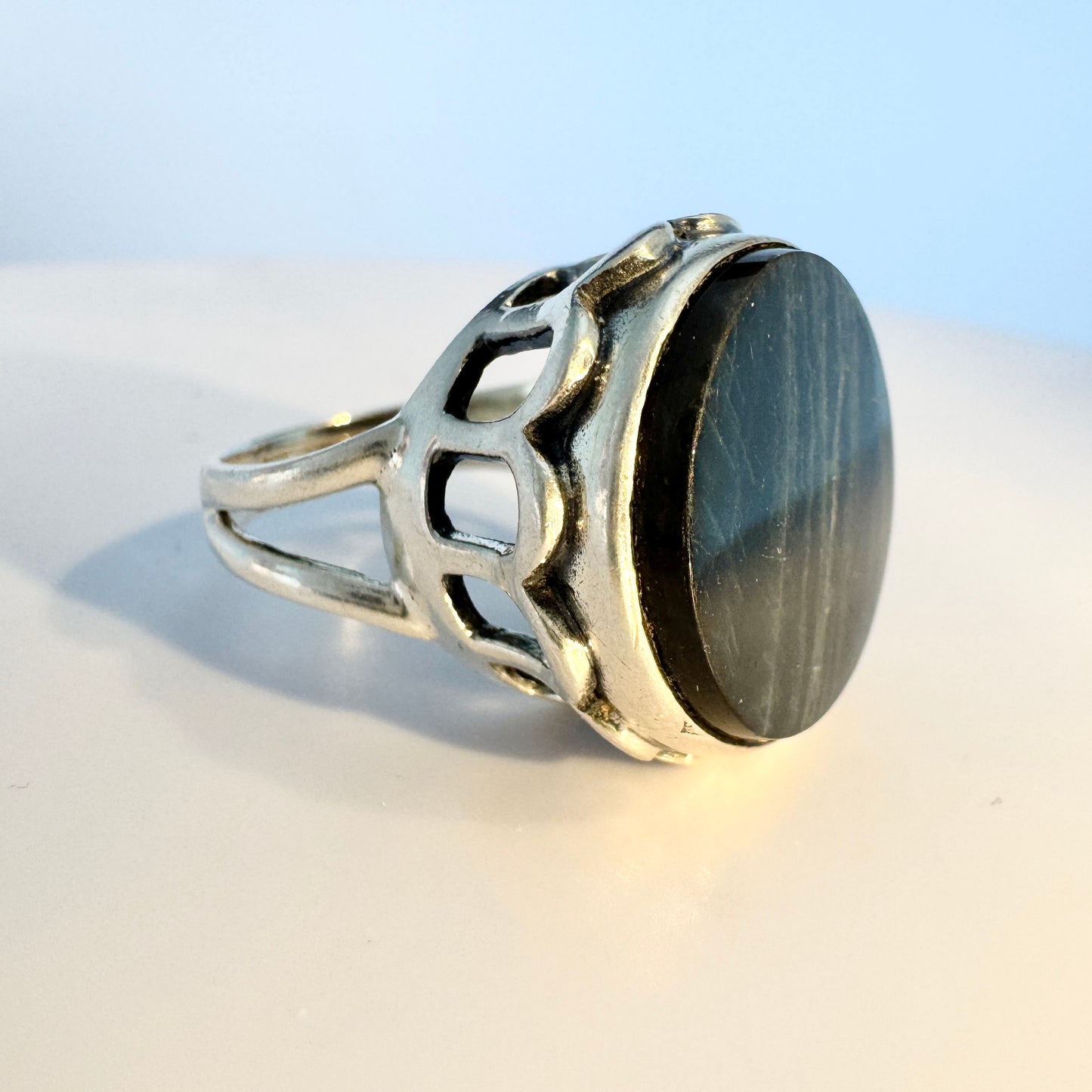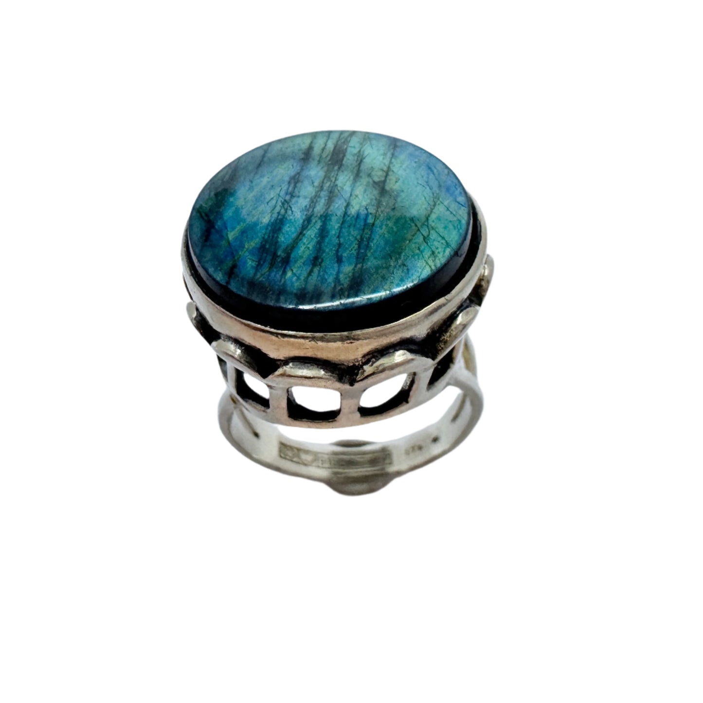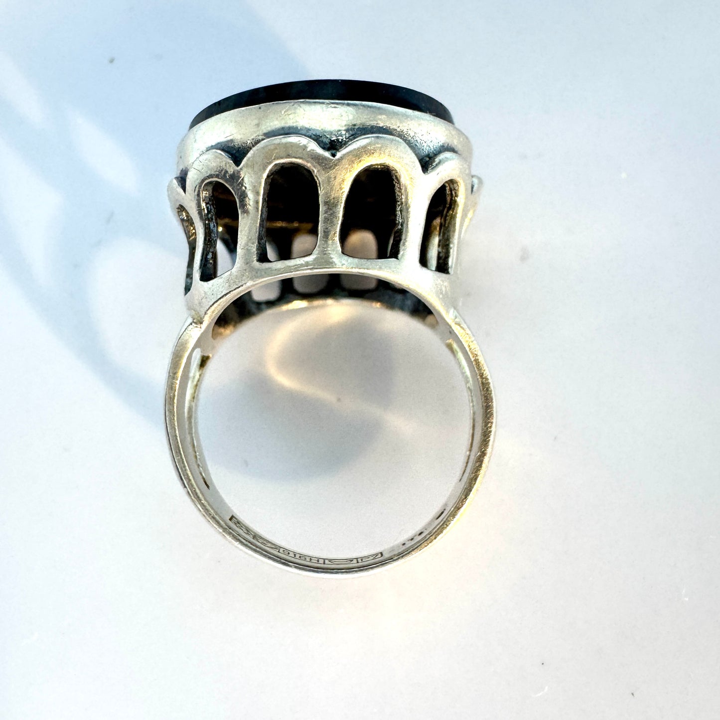 Erik Granit, Finland 1968. Vintage Solid Silver Spectrolite Ring.