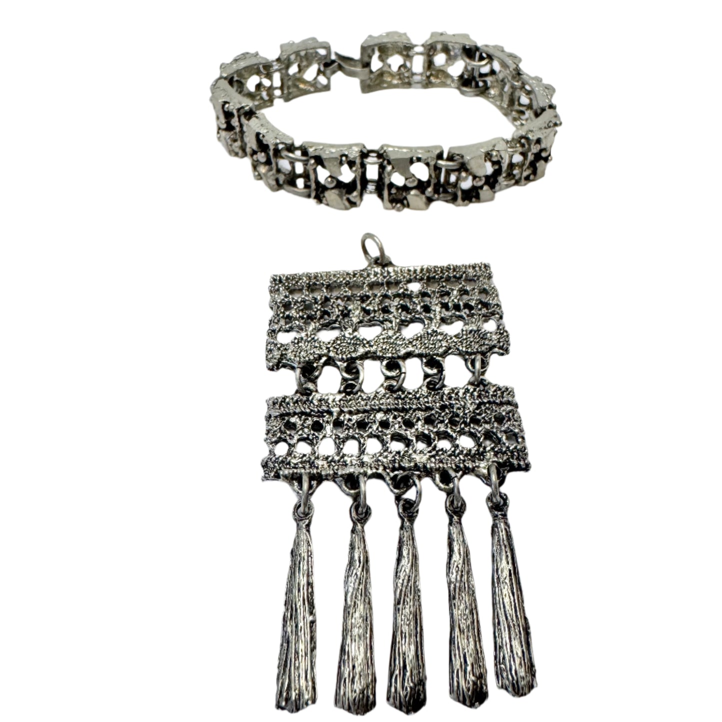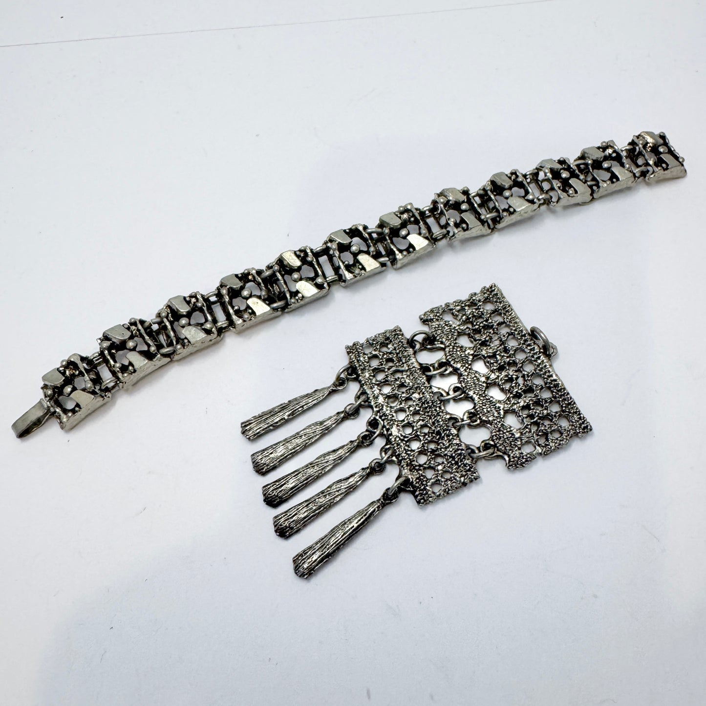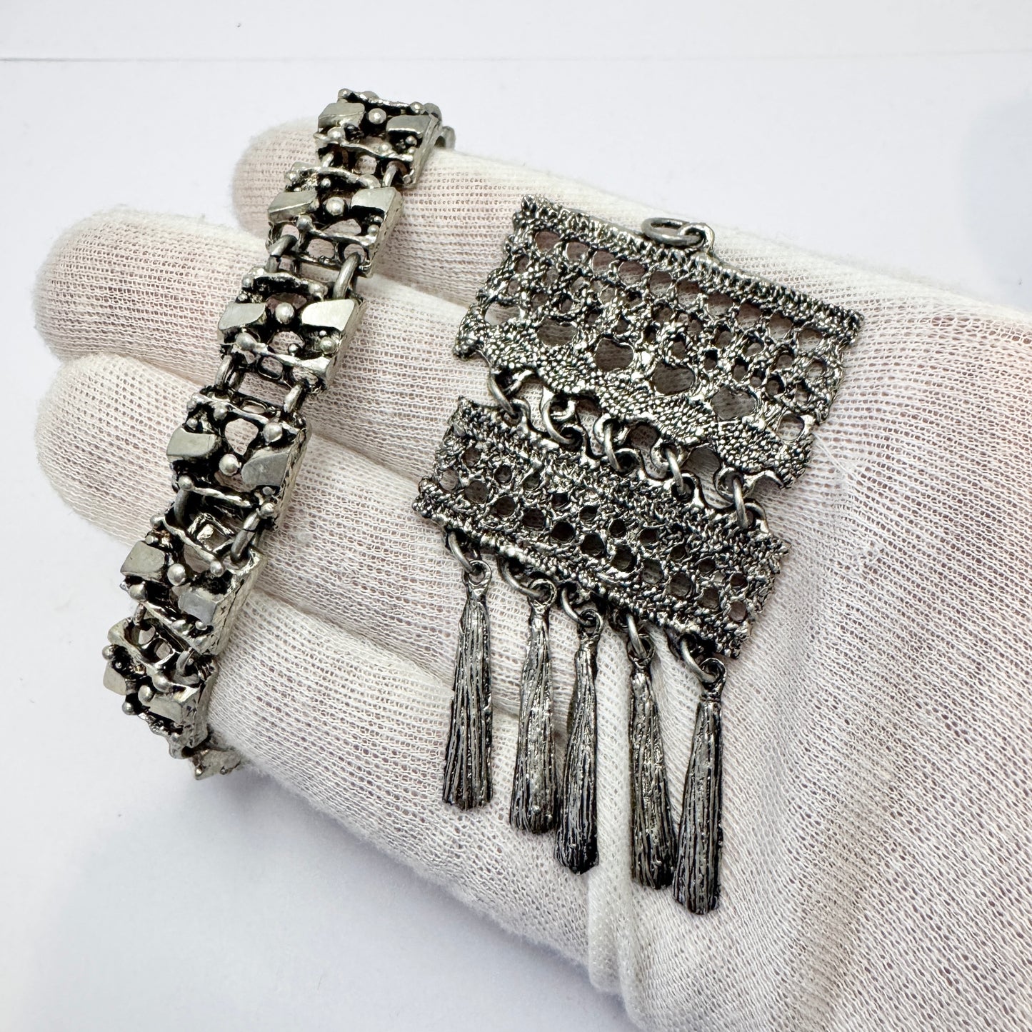 Charming vintage white metal bracelet and pendant. Probably Tapani Vanhatalo, Finland.