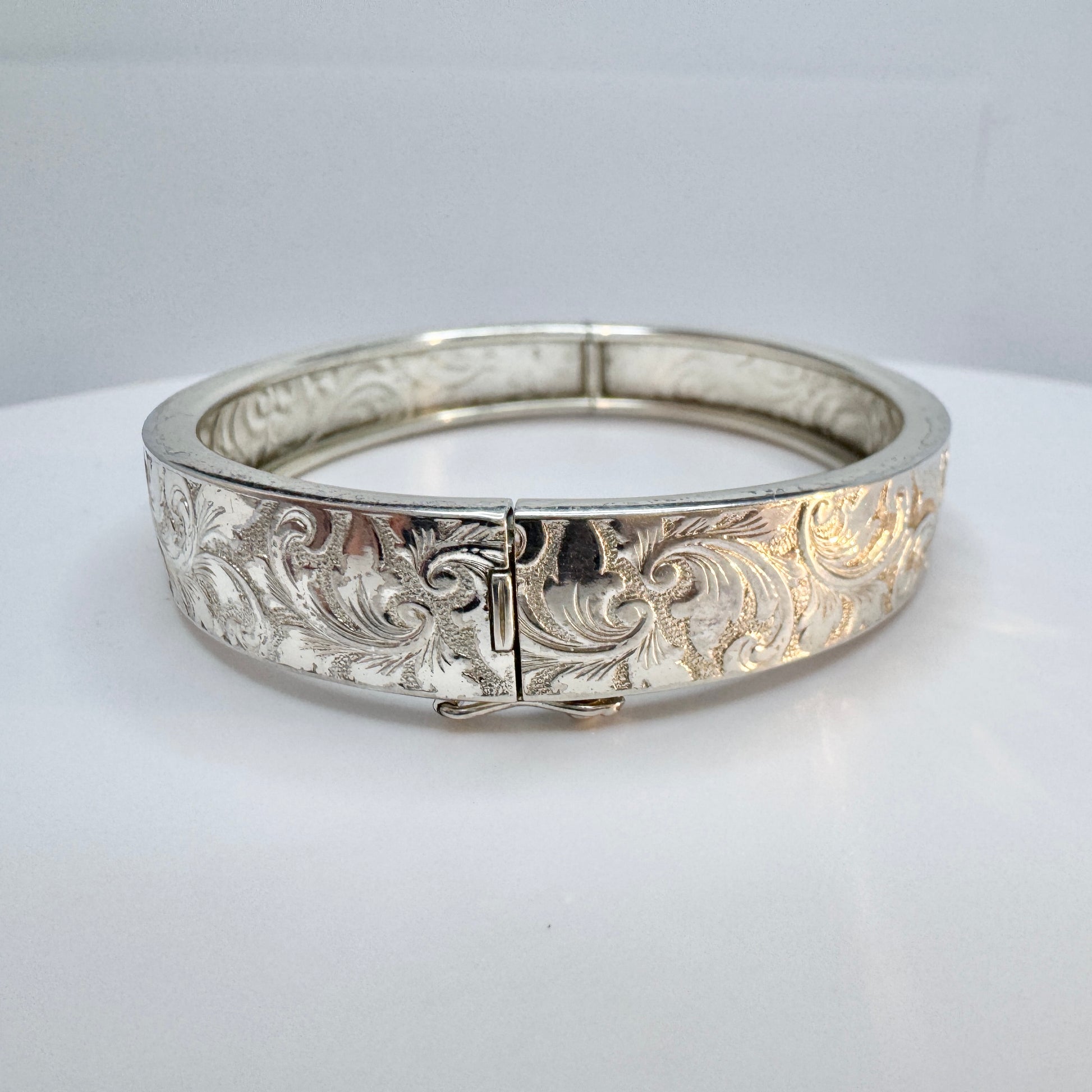 Beautiful vintage solid silver hinged bangle bracelet. Hallmarked for Friedrich Speidel, Germany c 1950s.