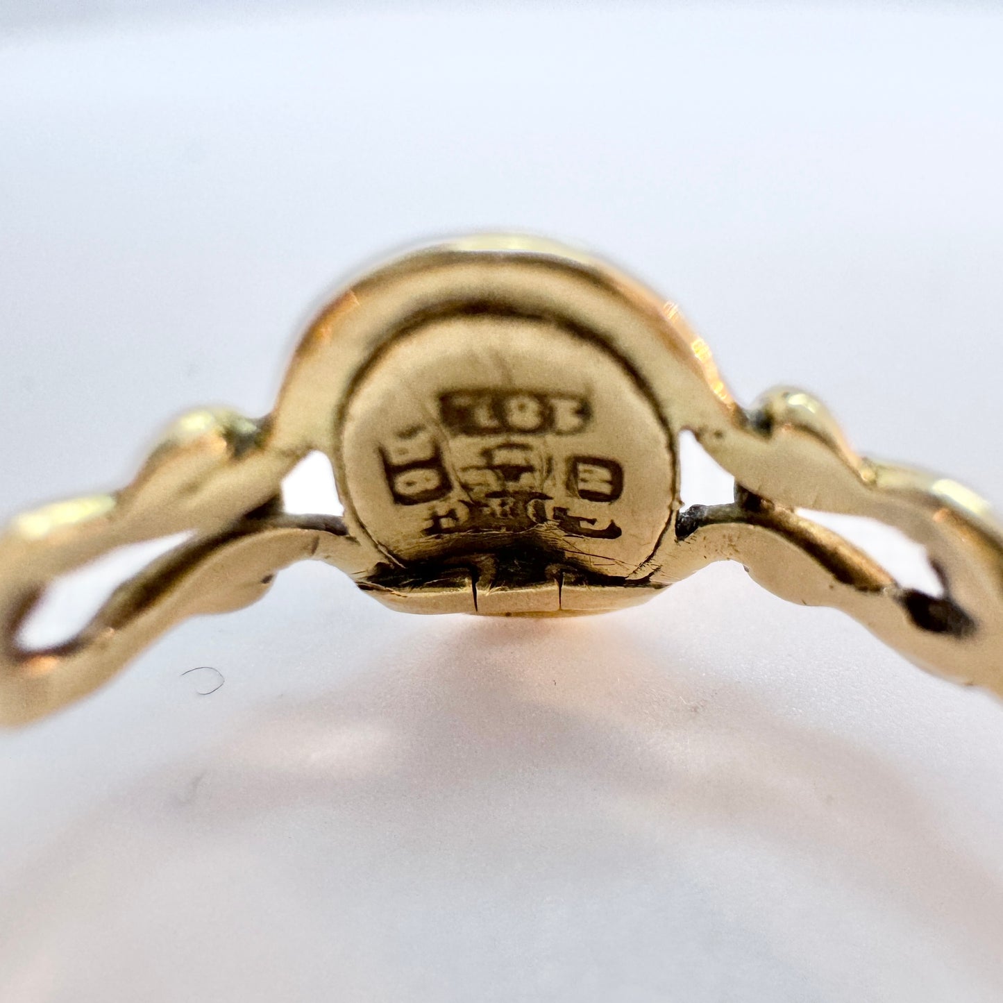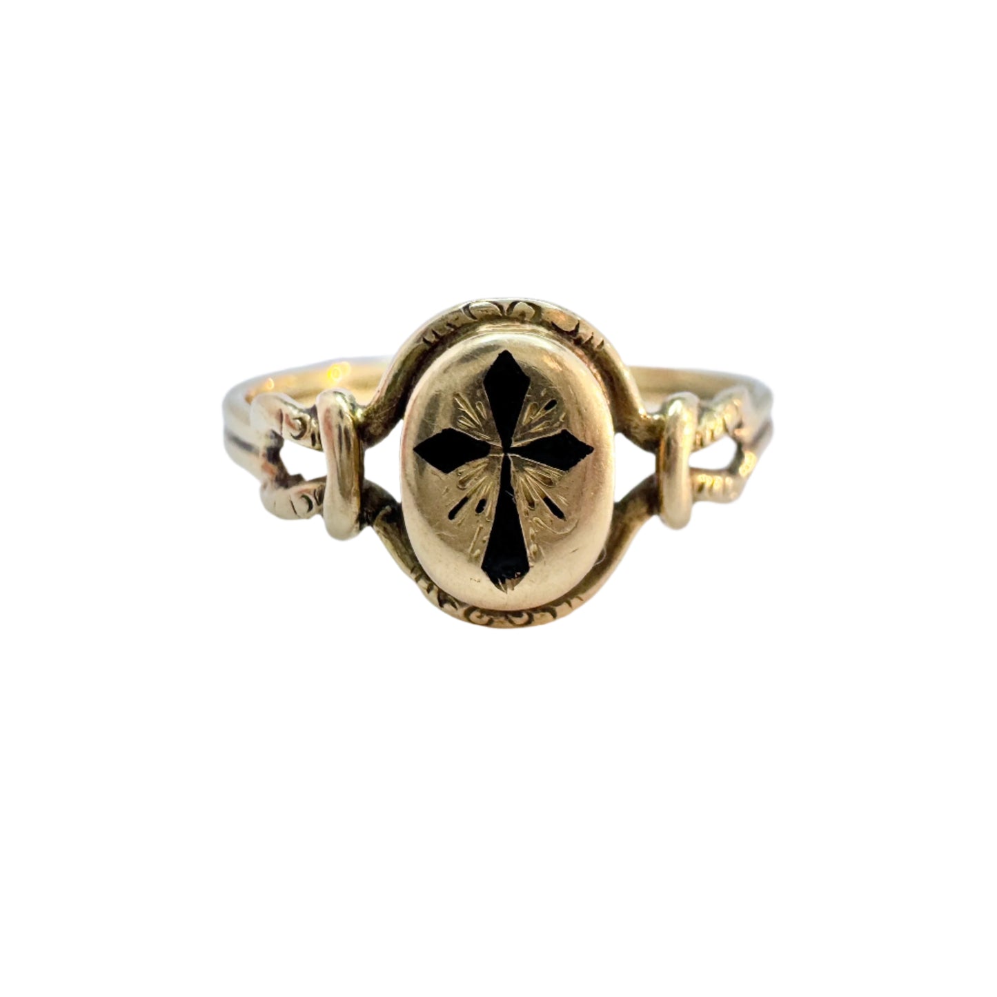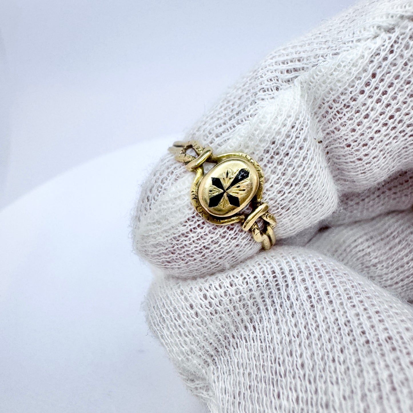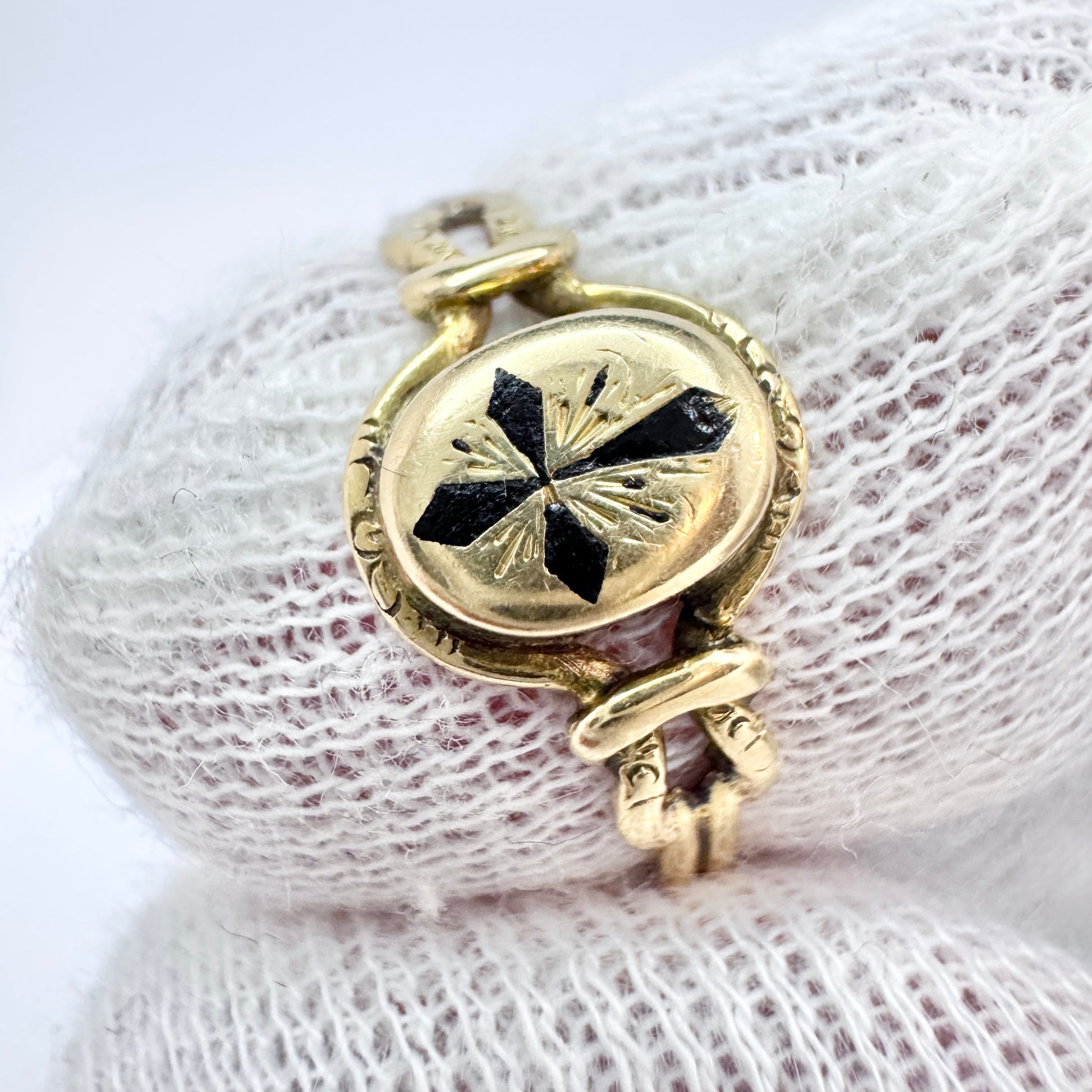 G Dahlgren, Sweden year 1880. Antique 18k Gold Enamel Mourning Ring.