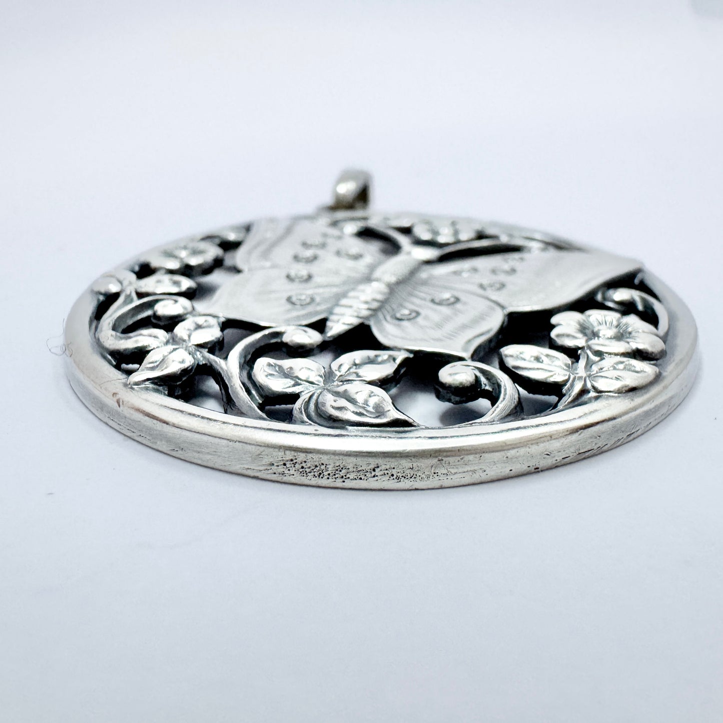 G Dahlgren, Sweden year 1950. Vintage Large Solid Silver Butterfly Pendant.