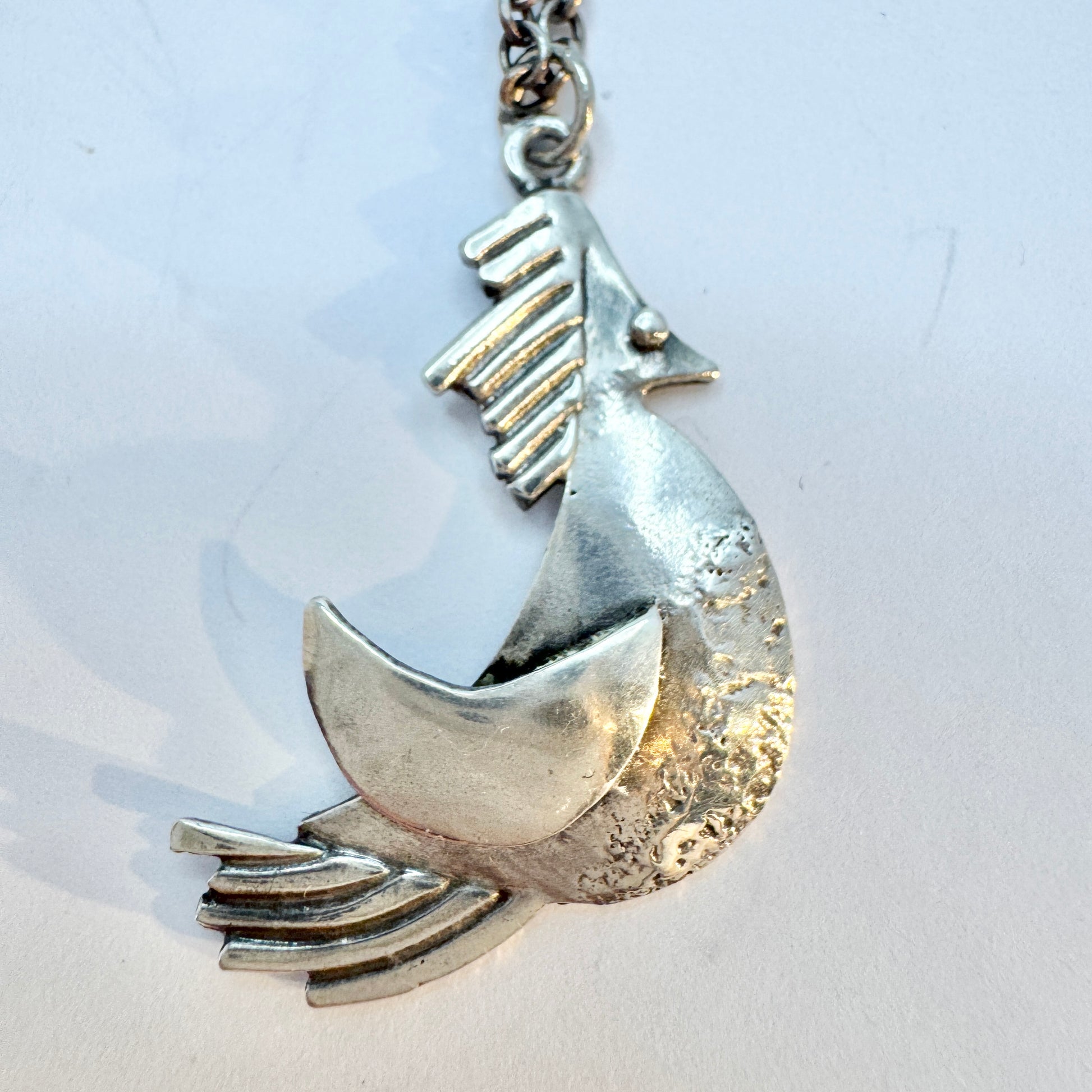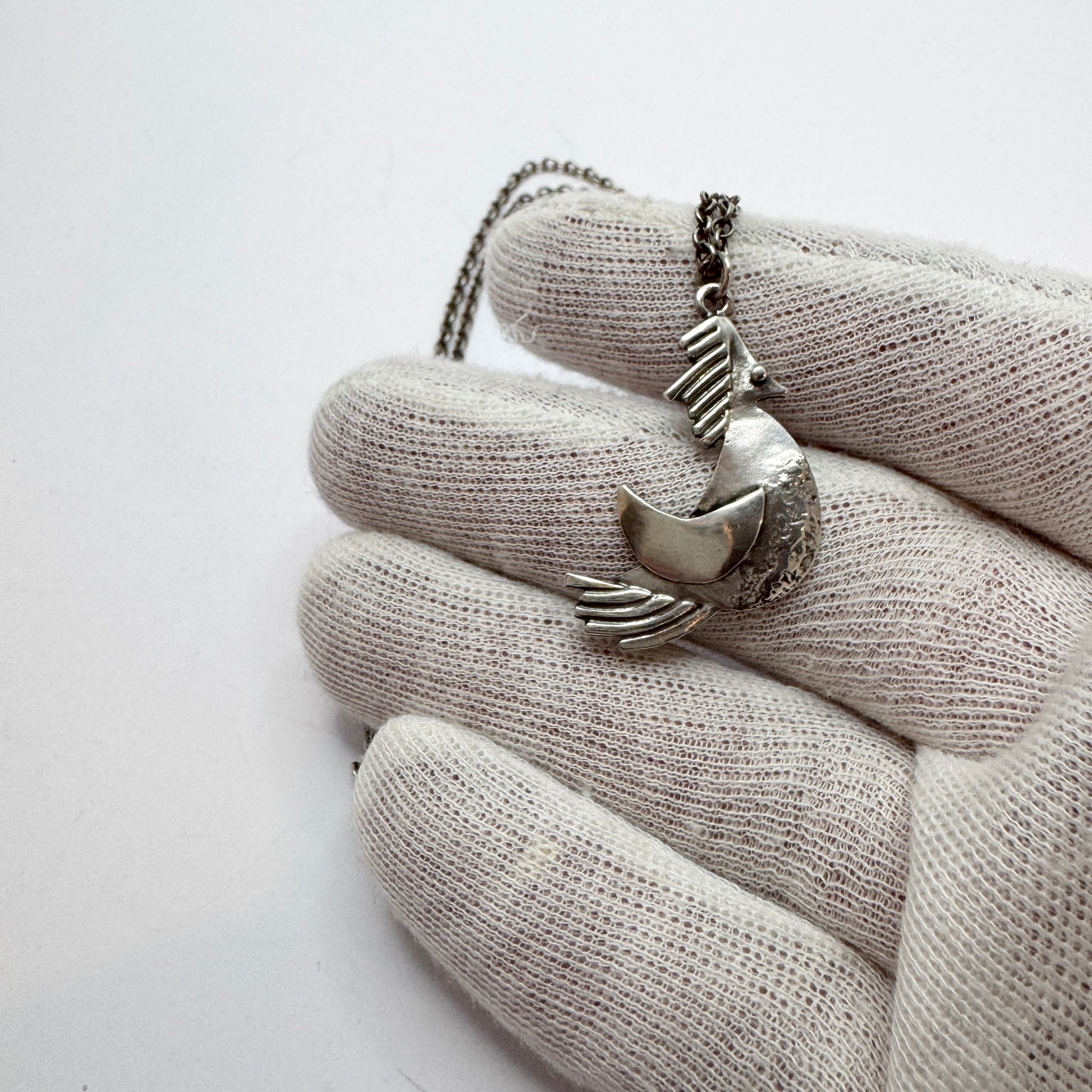 Harvey Kornicks, USA. Vintage Sterling Silver Bird Pendant Necklace.