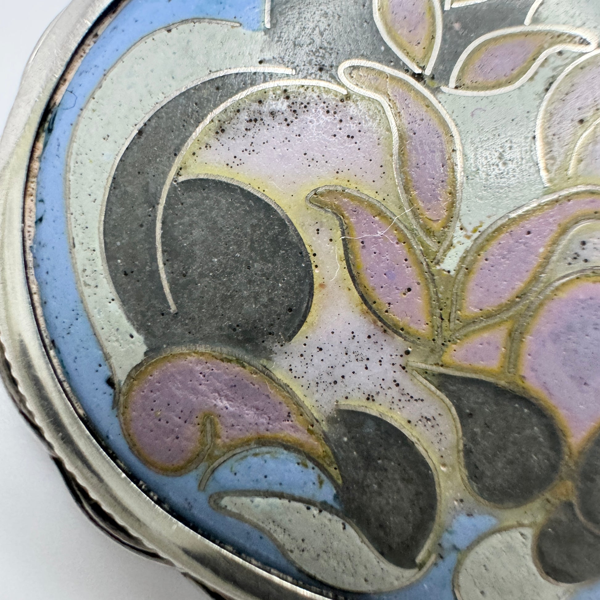 Wonderful and much sought after antique solid silver enamel arts and crafts brooch. Hallmarked for renowned Hugo Lundstedt, Gothenburg, Sweden year 1921.