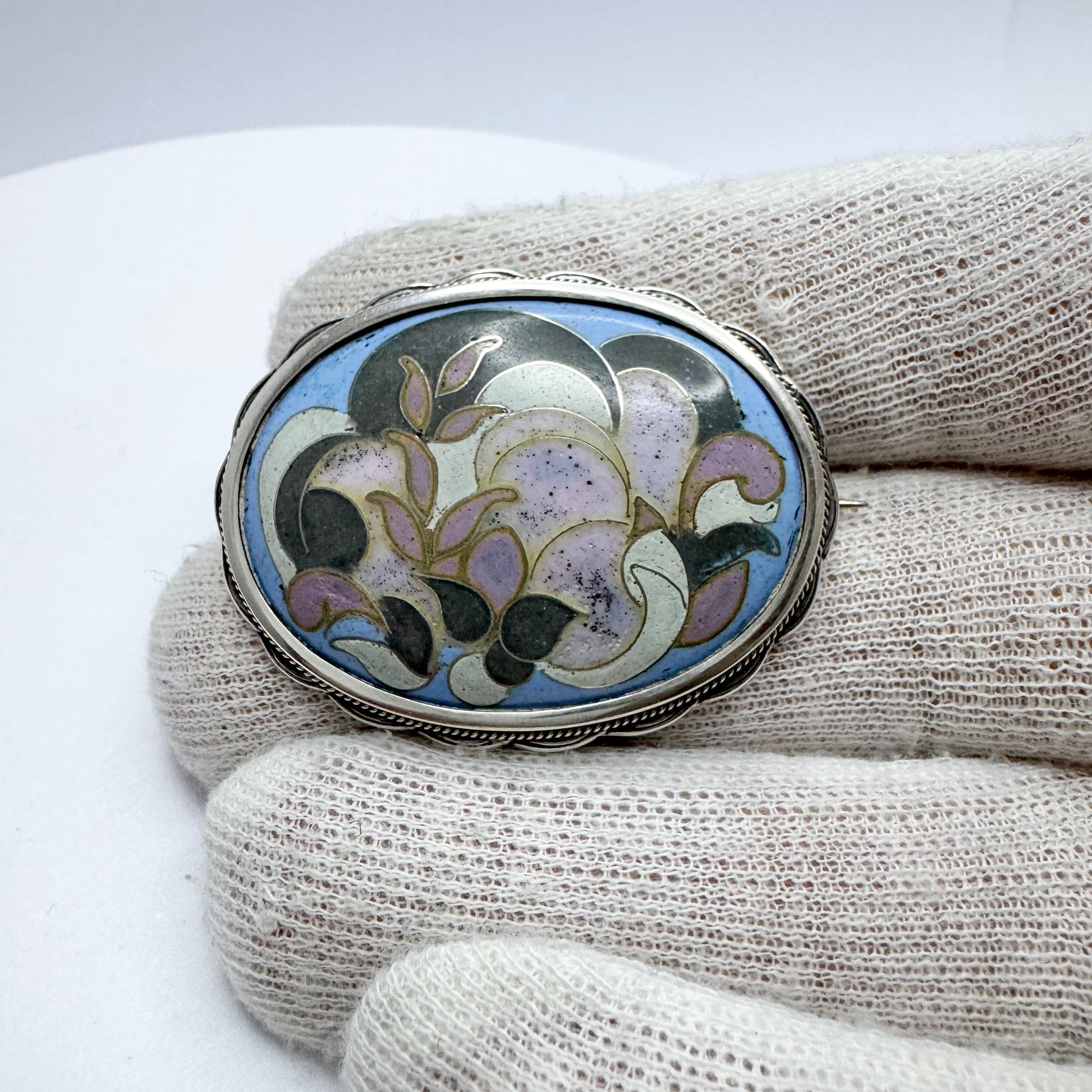 Hugo Lundstedt, Sweden 1921. Antique Arts & Crafts Silver Enamel Brooch