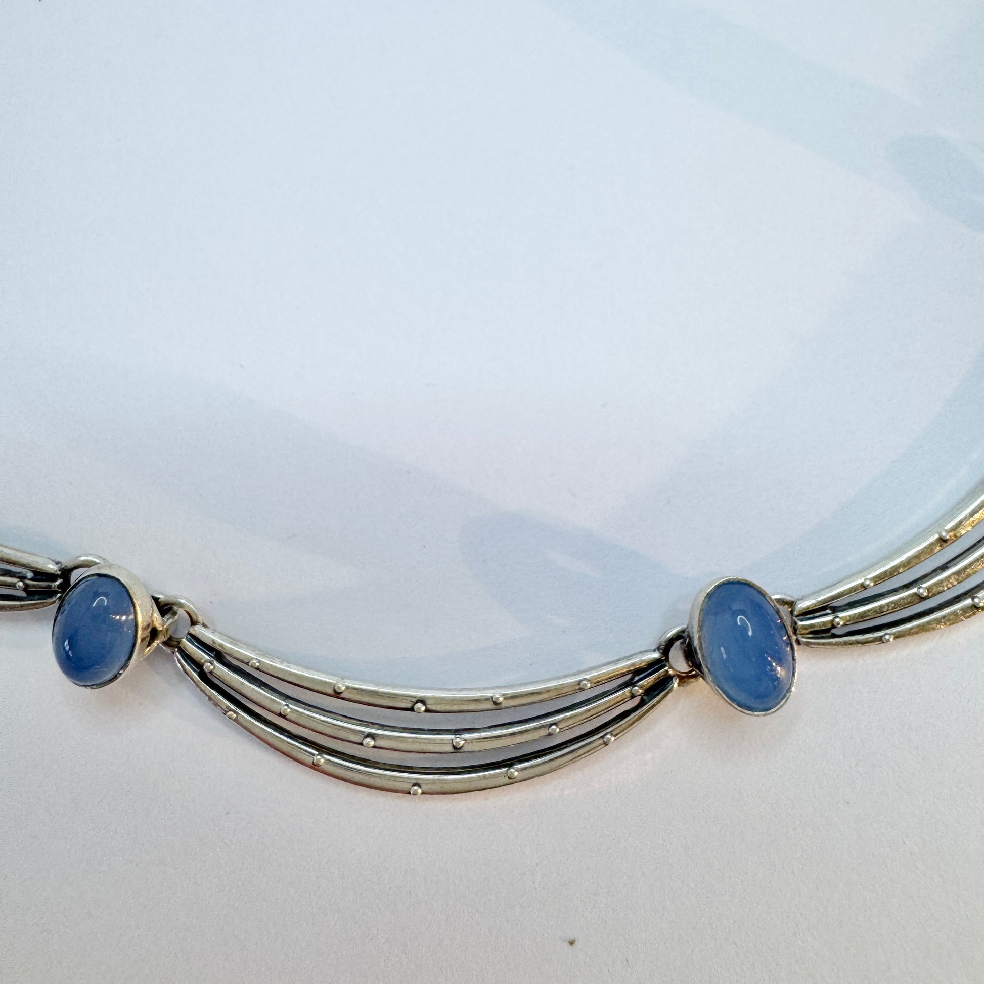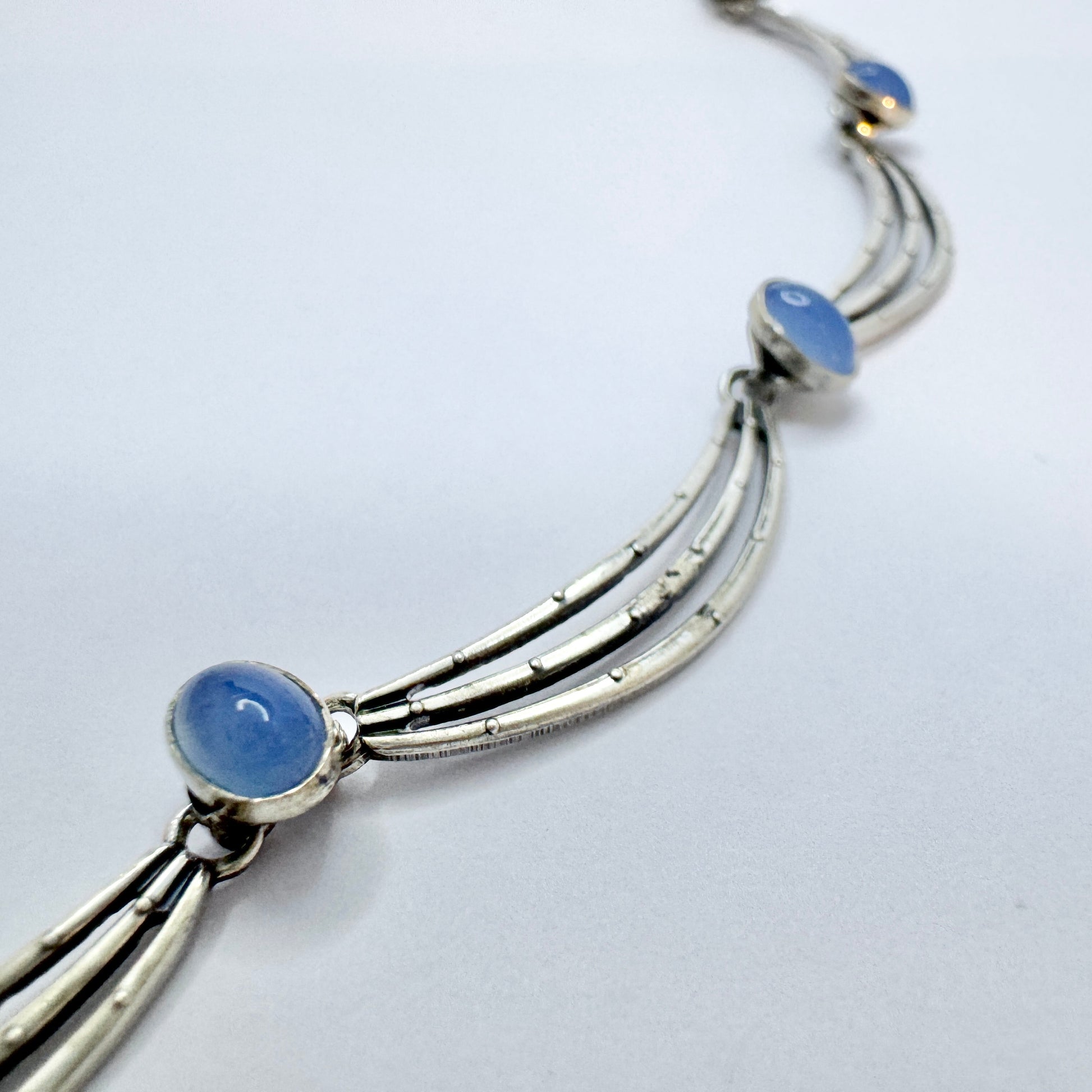 Wonderful vintage solid silver chalcedony necklace. Hallmarked for K&L-Kordes Lichtenfels, Germany. Also with Swedish import marks, ca 1960s.