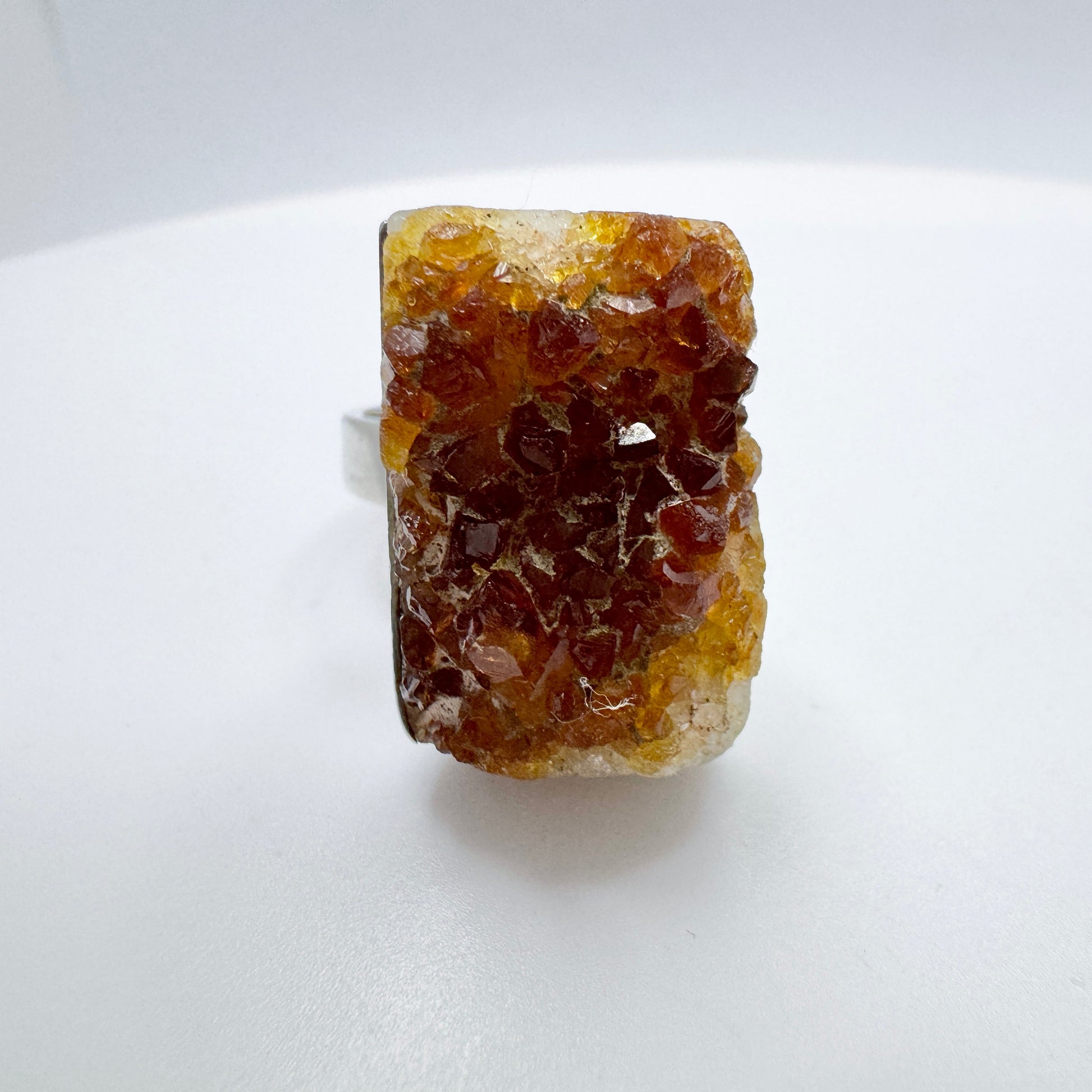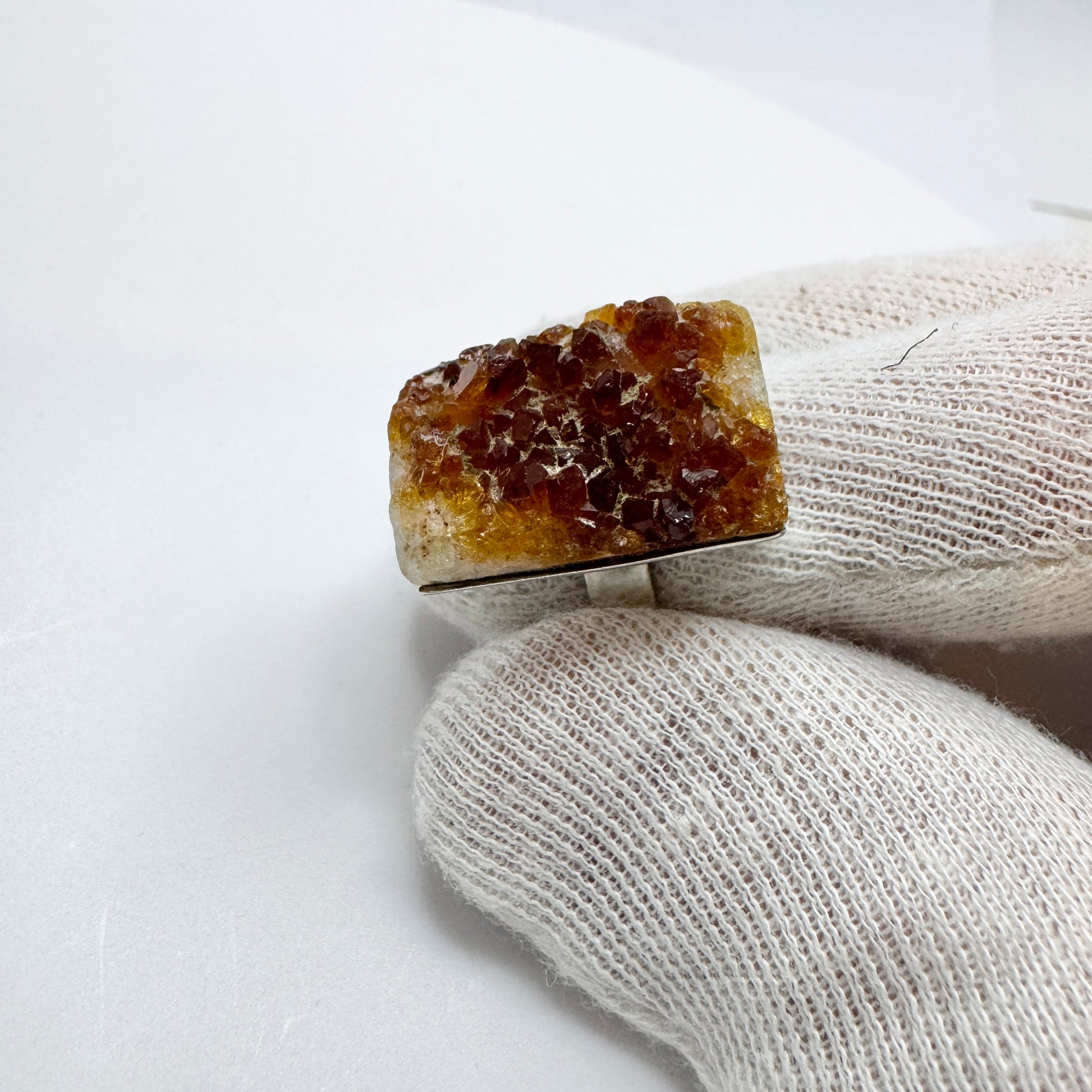 Magnus Maximus Designs, England 1971. Vintage Sterling Silver Druzy Citrine Quartz Ring.