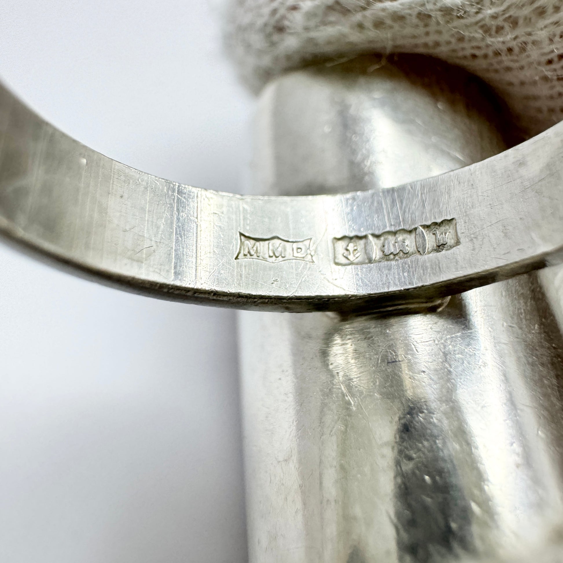 Wonderful and rare vintage modernist sterling silver quartz ring. Hallmarked for sought after Magnus Maximus Designs, England year 1971.
