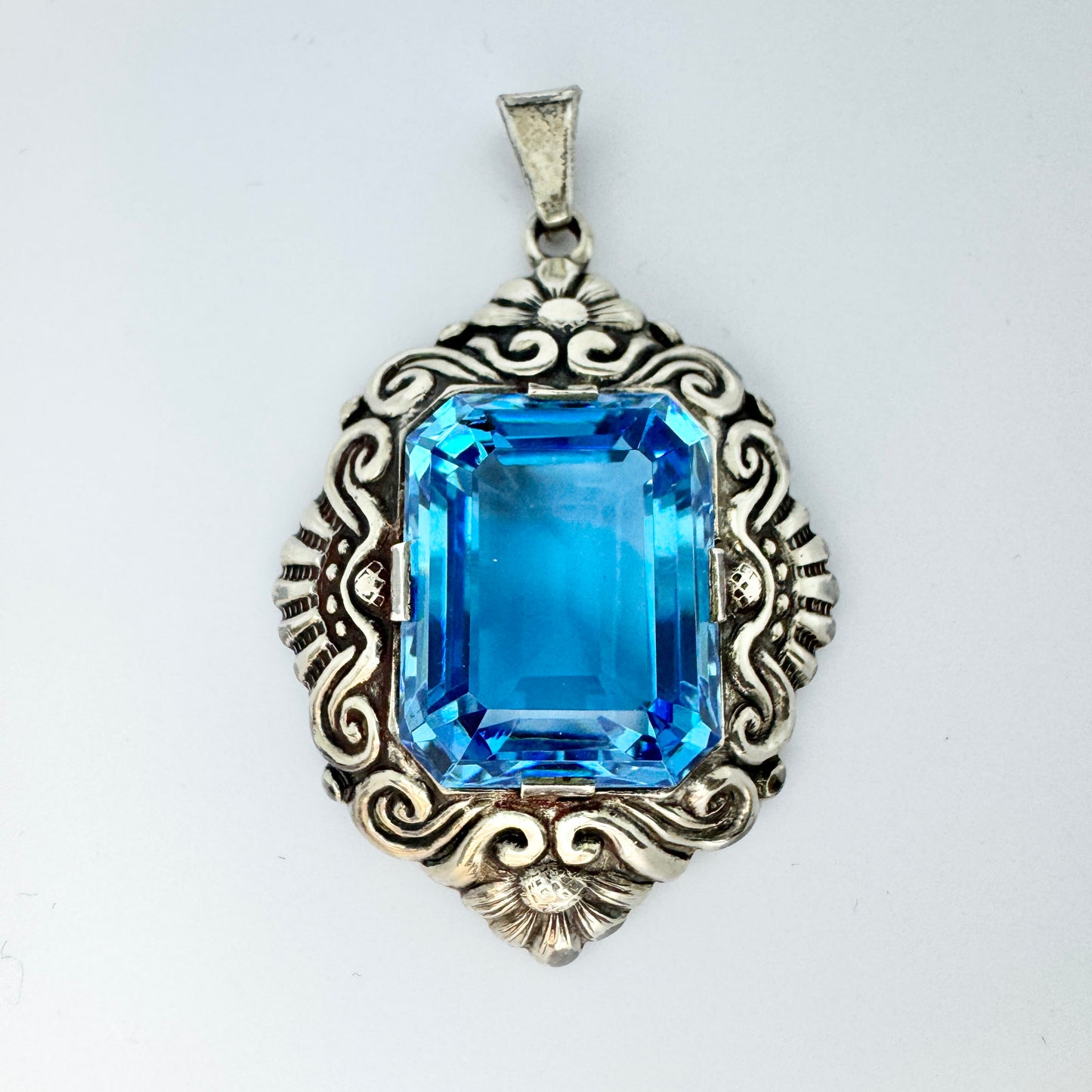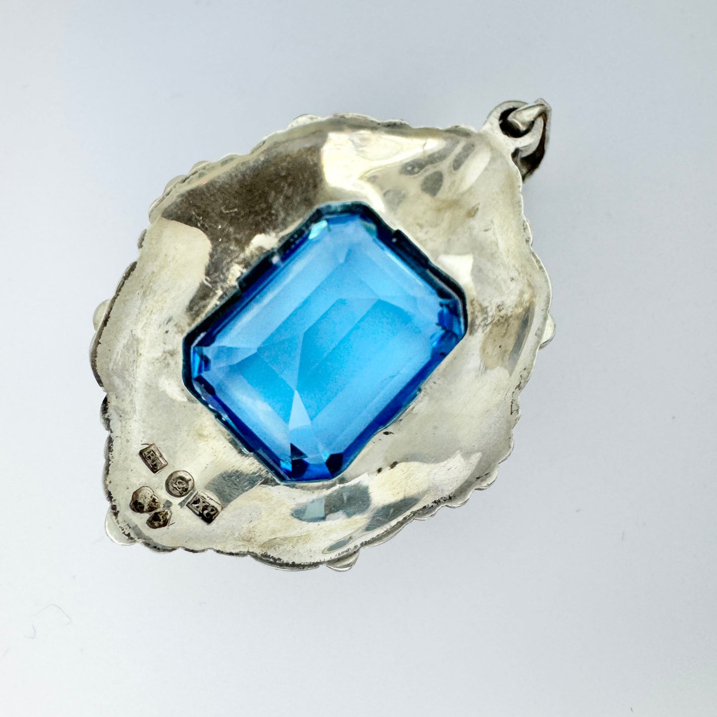Wonderful and sought after vintage sterling silver blue synthetic spinel pendant. Fully hallmarked for Per Emilson, Sweden year 1948.