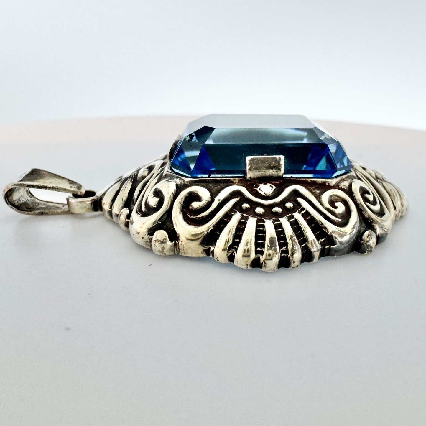 Per Emilson, Sweden 1948. Vintage Sterling Silver Intense Blue Synthetic Spinel Pendant.