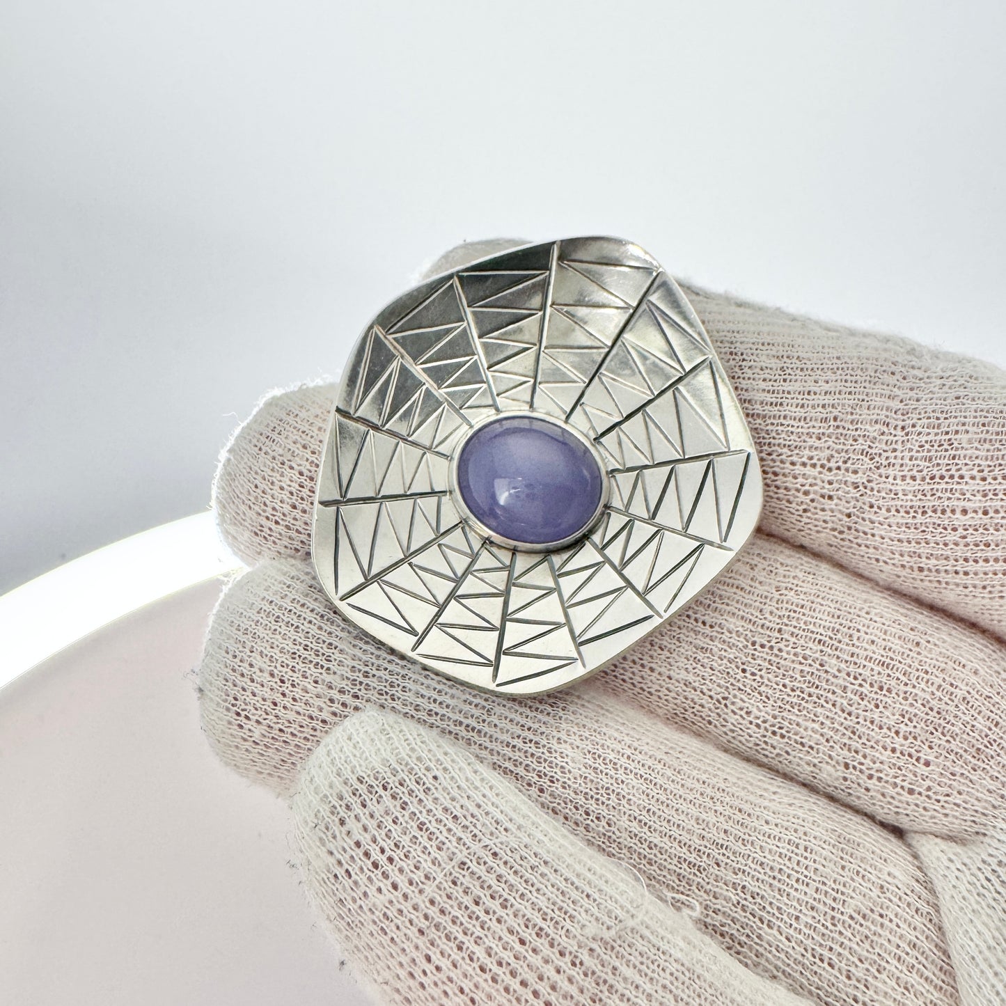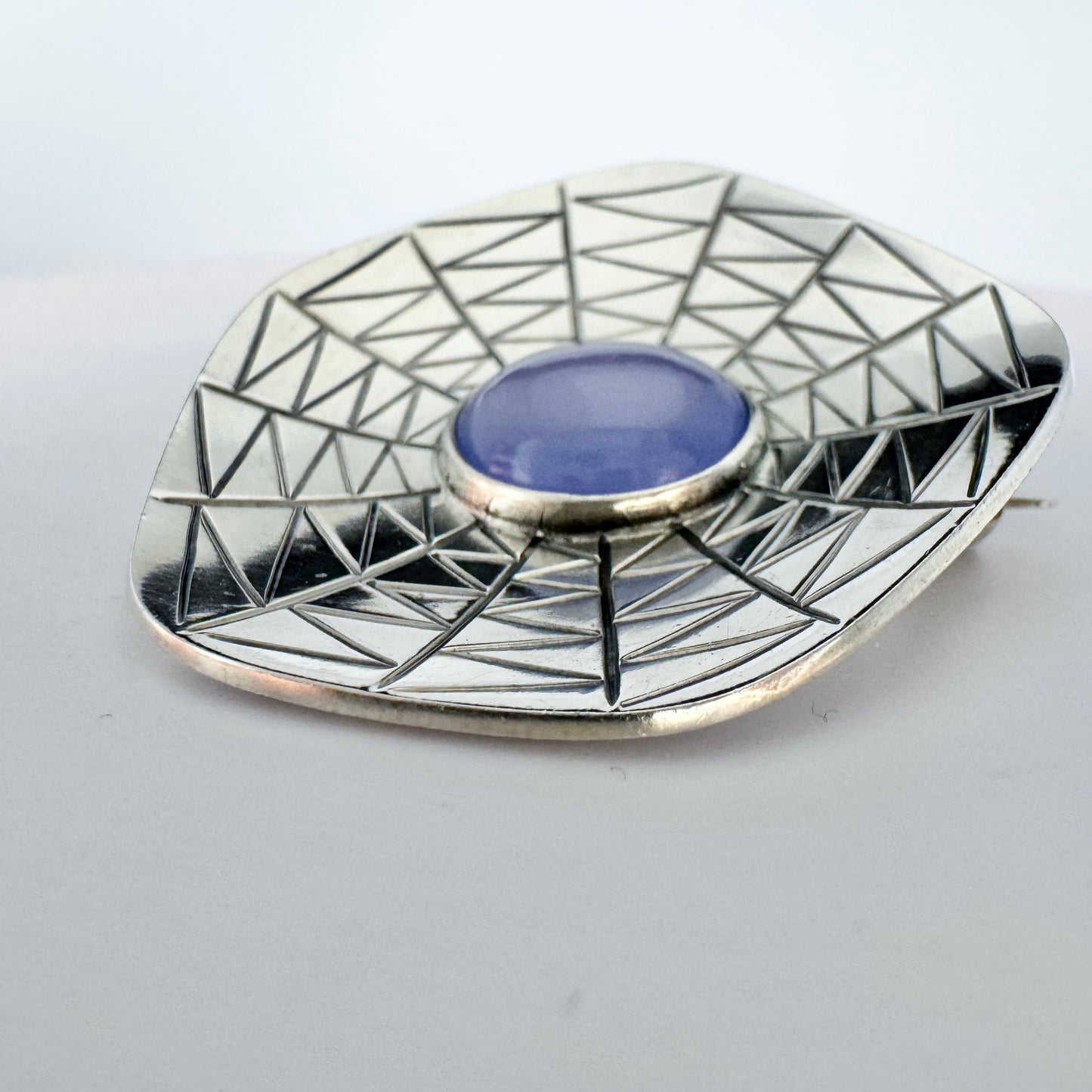 Per Sköld, Sweden 1957. Vintage Sterling Silver Chalcedony Brooch.