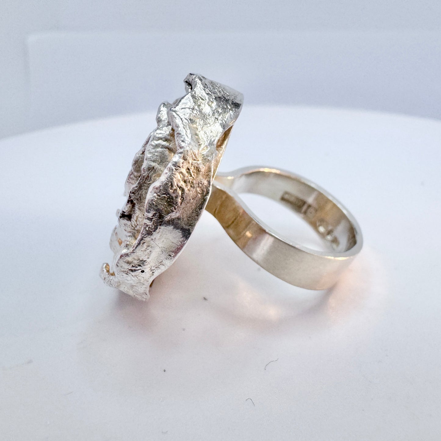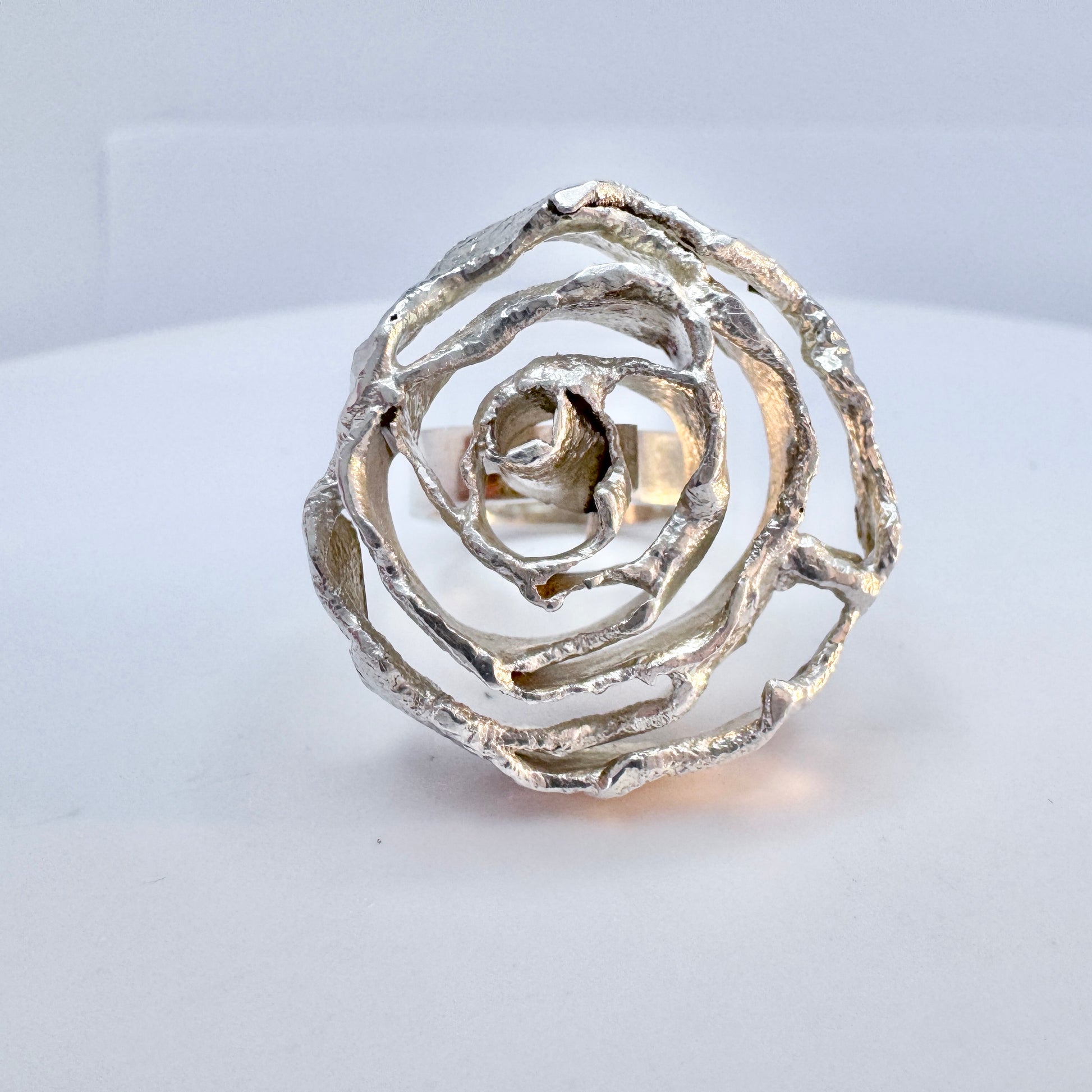 Wonderful and bold vintage modernist sterling silver ring. Fully hallmarked and signed for sought after maker Robbert, Sweden year 1971.