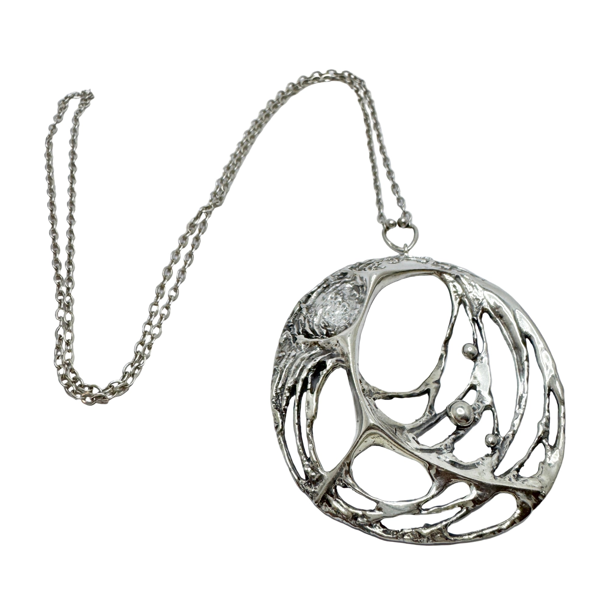 Sten & Laine, Finland 1974. Very Large Vintage Sterling Silver Spider Web Pendant Necklace.