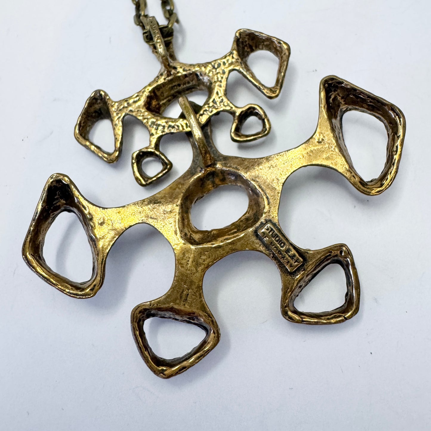 Beautiful and large vintage bronze pendant necklace. Marked for sought after Studio Else & Paul, Norway 1970s