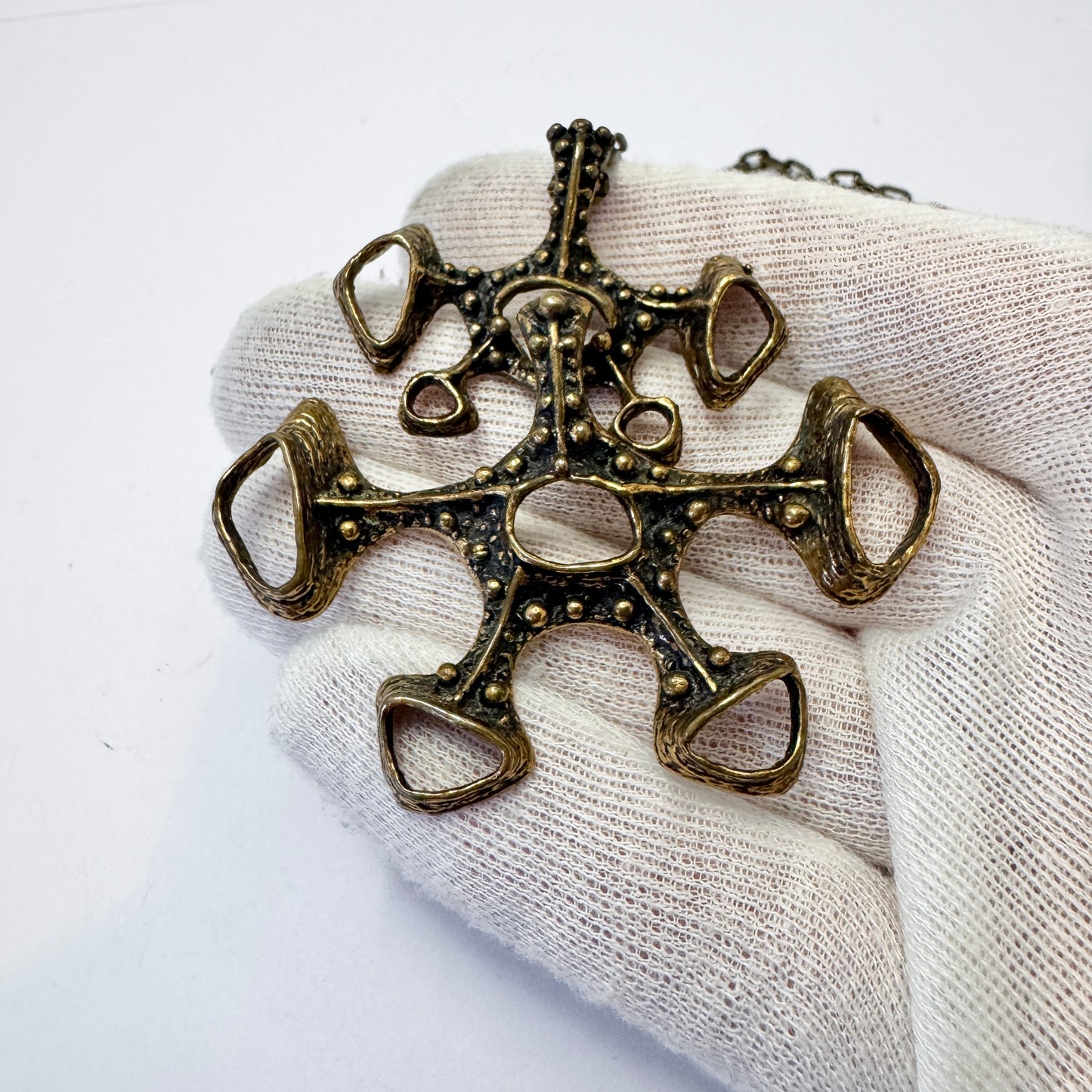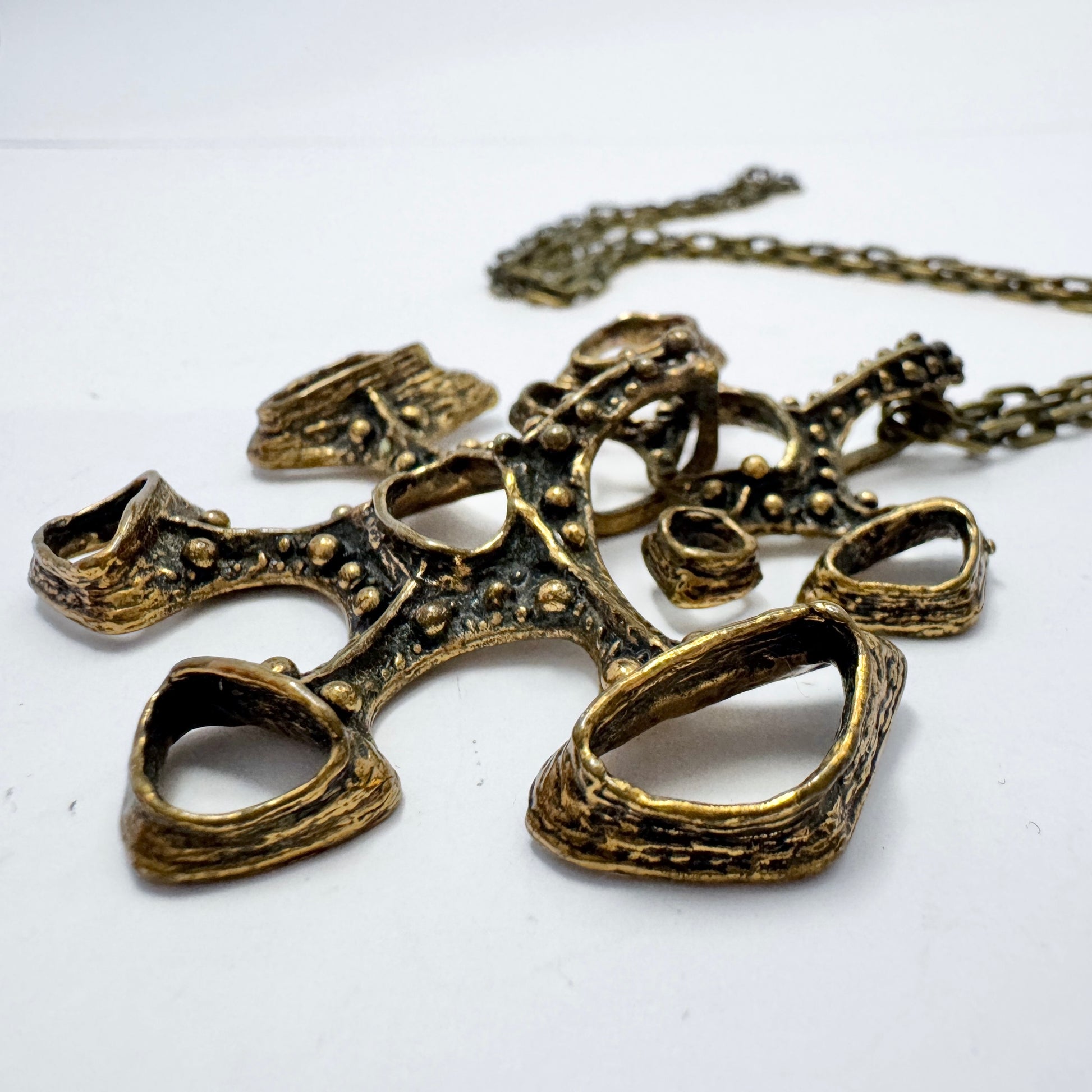 Studio Else & Paul, Norway 1970s. Large Vintage Bronze pendant Necklace.