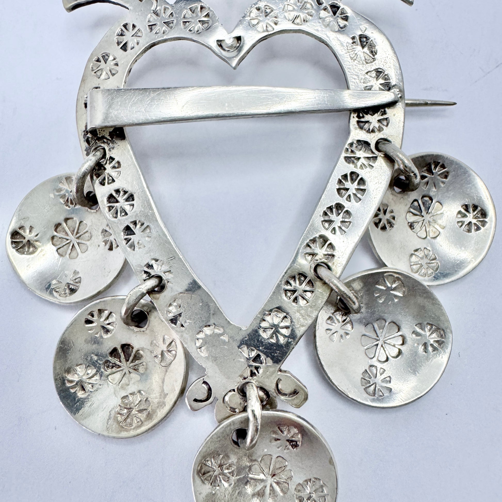 Very charming vintage sterling silver crowned heart brooch. Hallmarked for Sweden year 1981.
