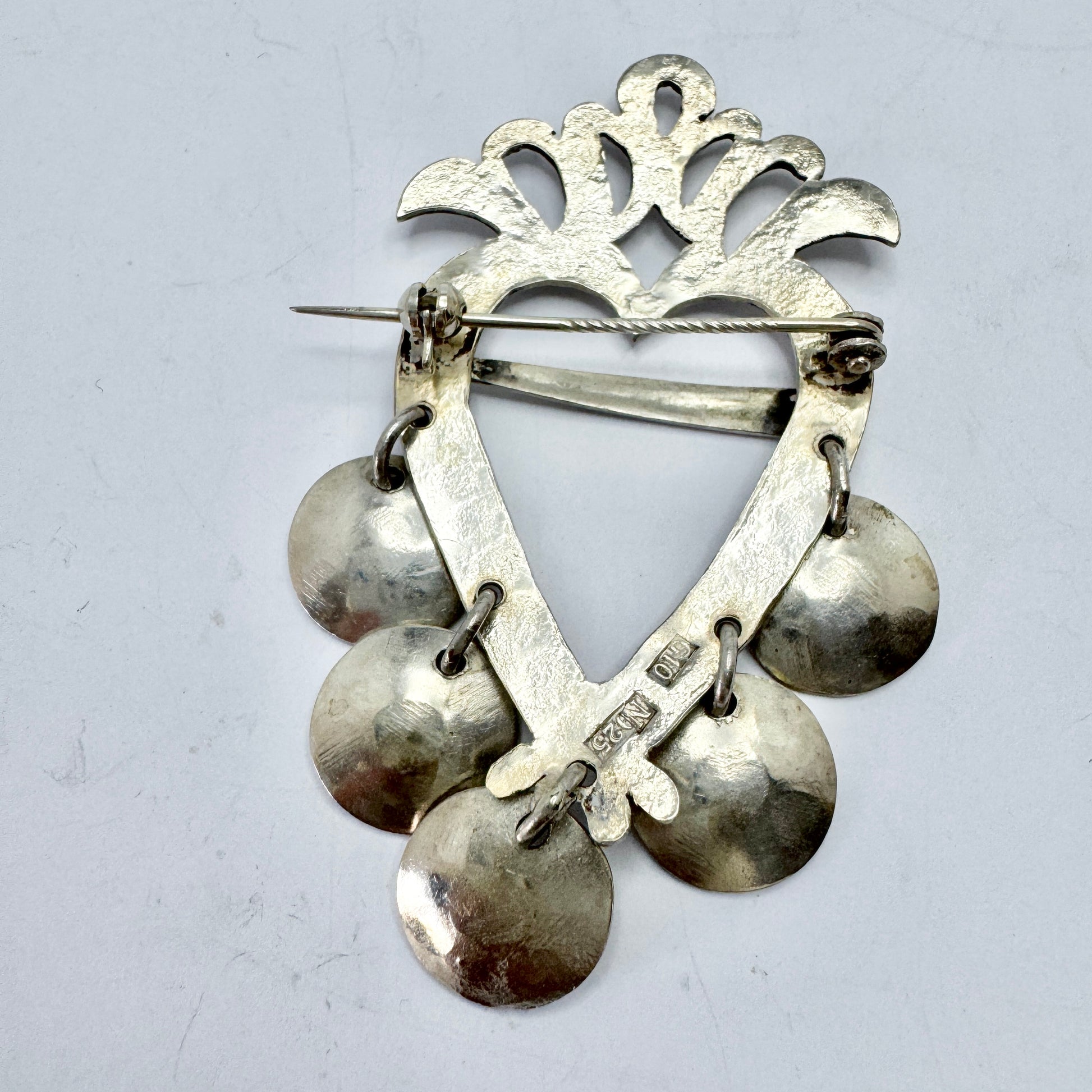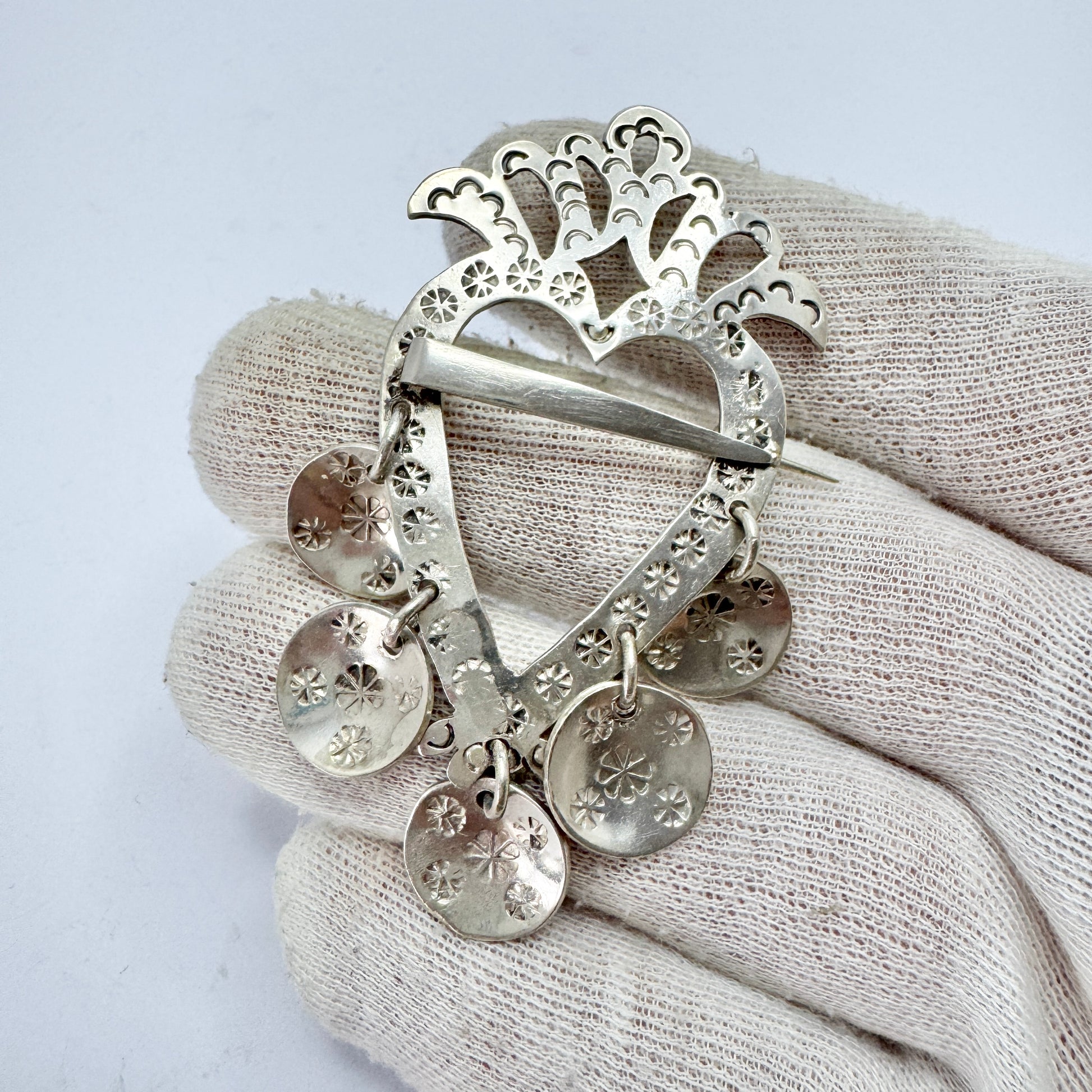 Sweden 1981. Vintage Sterling Silver Traditional Crowned Heart Brooch.