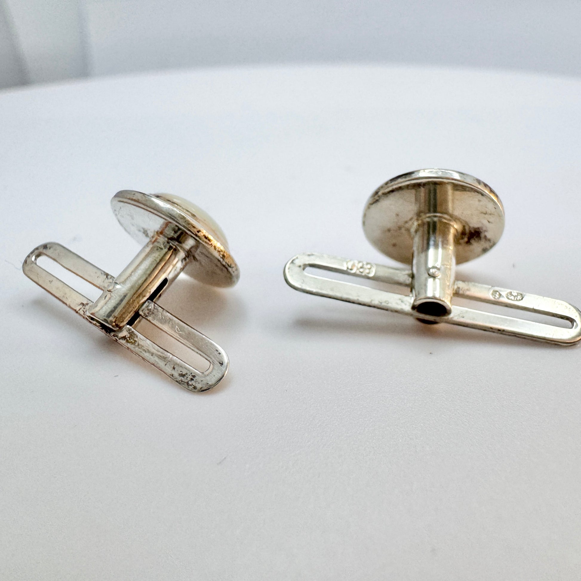 Sweden ca 1940s. Vintage Solid Silver Moonstone Shirt Buttons.