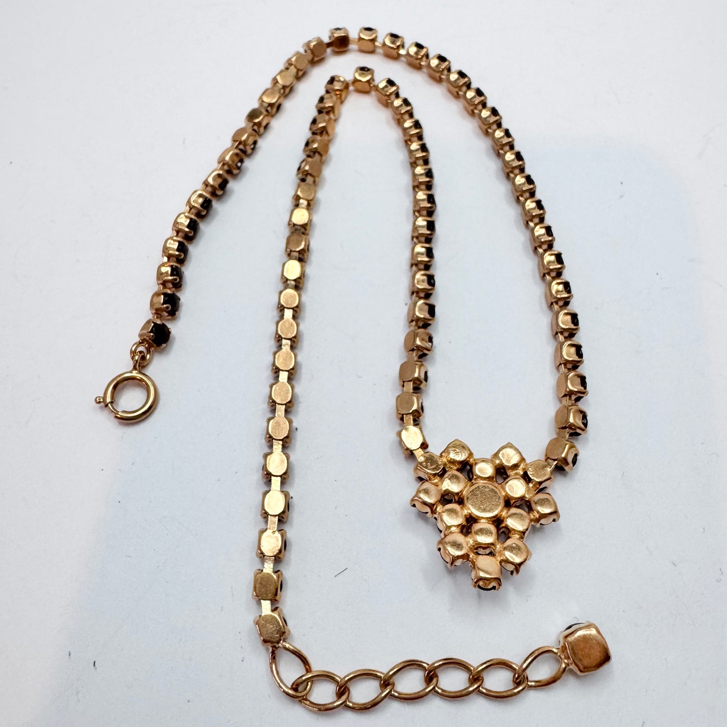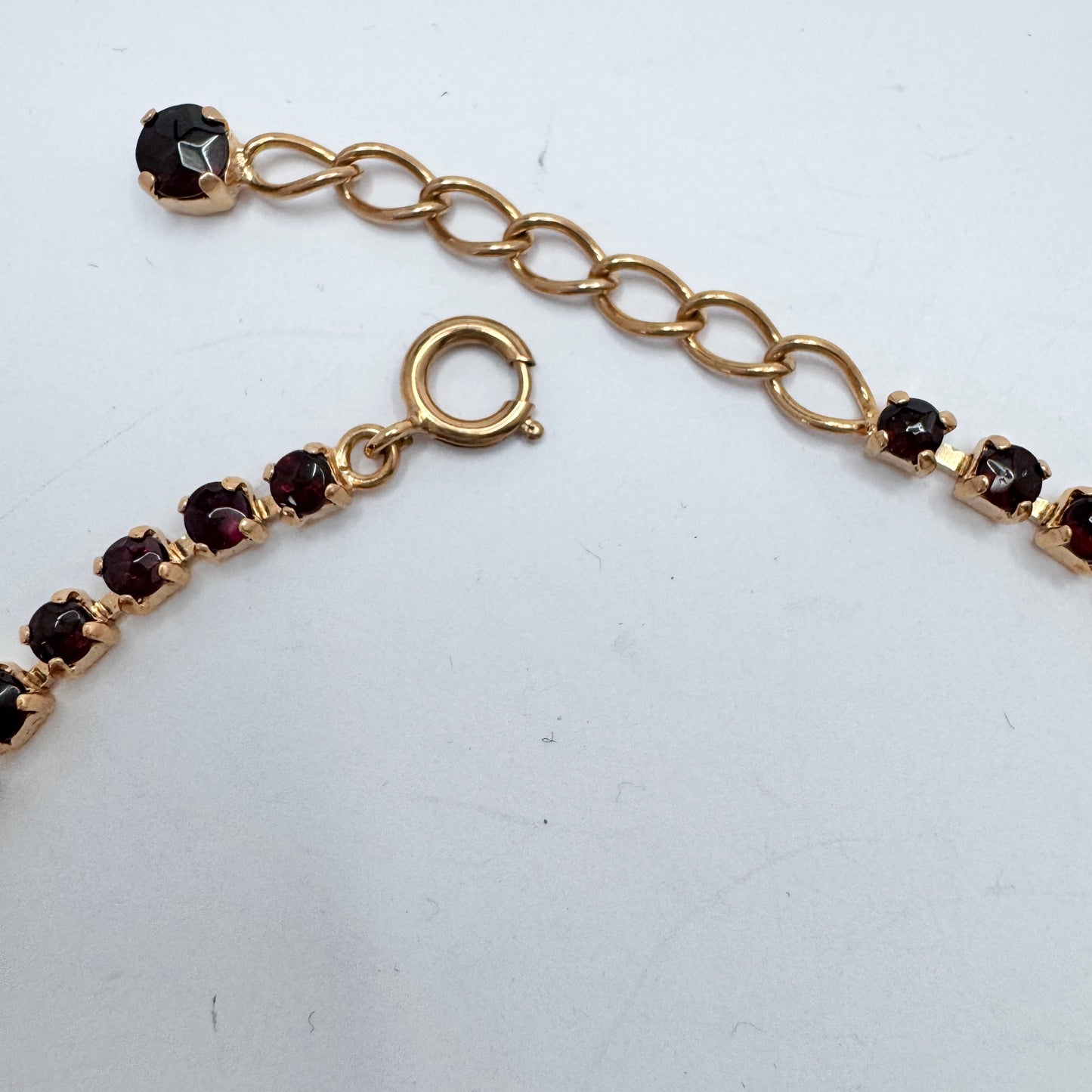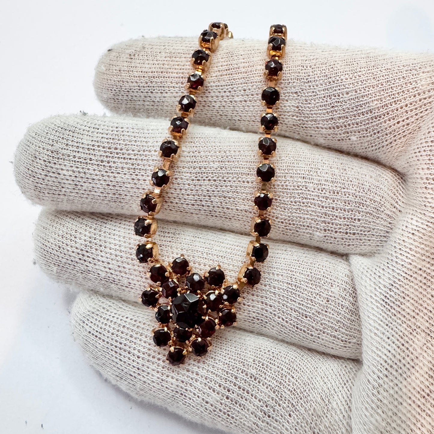 Very charming vintage gilt metal garnet necklace. Continental Europe c 1950-60s.