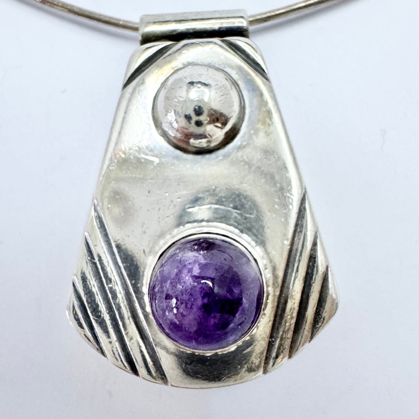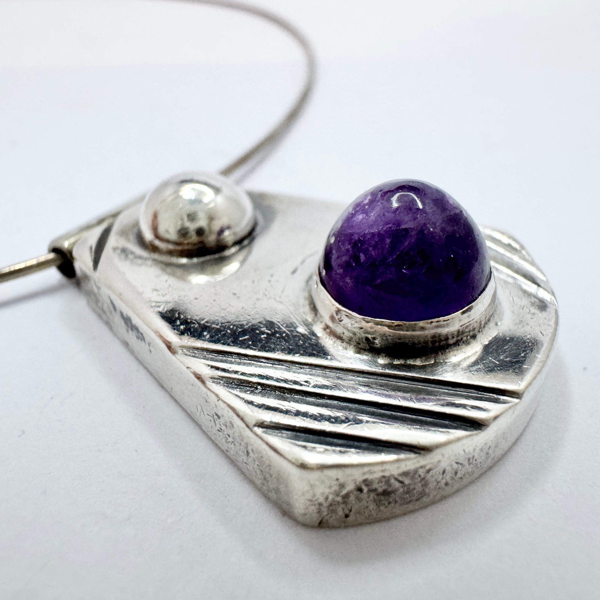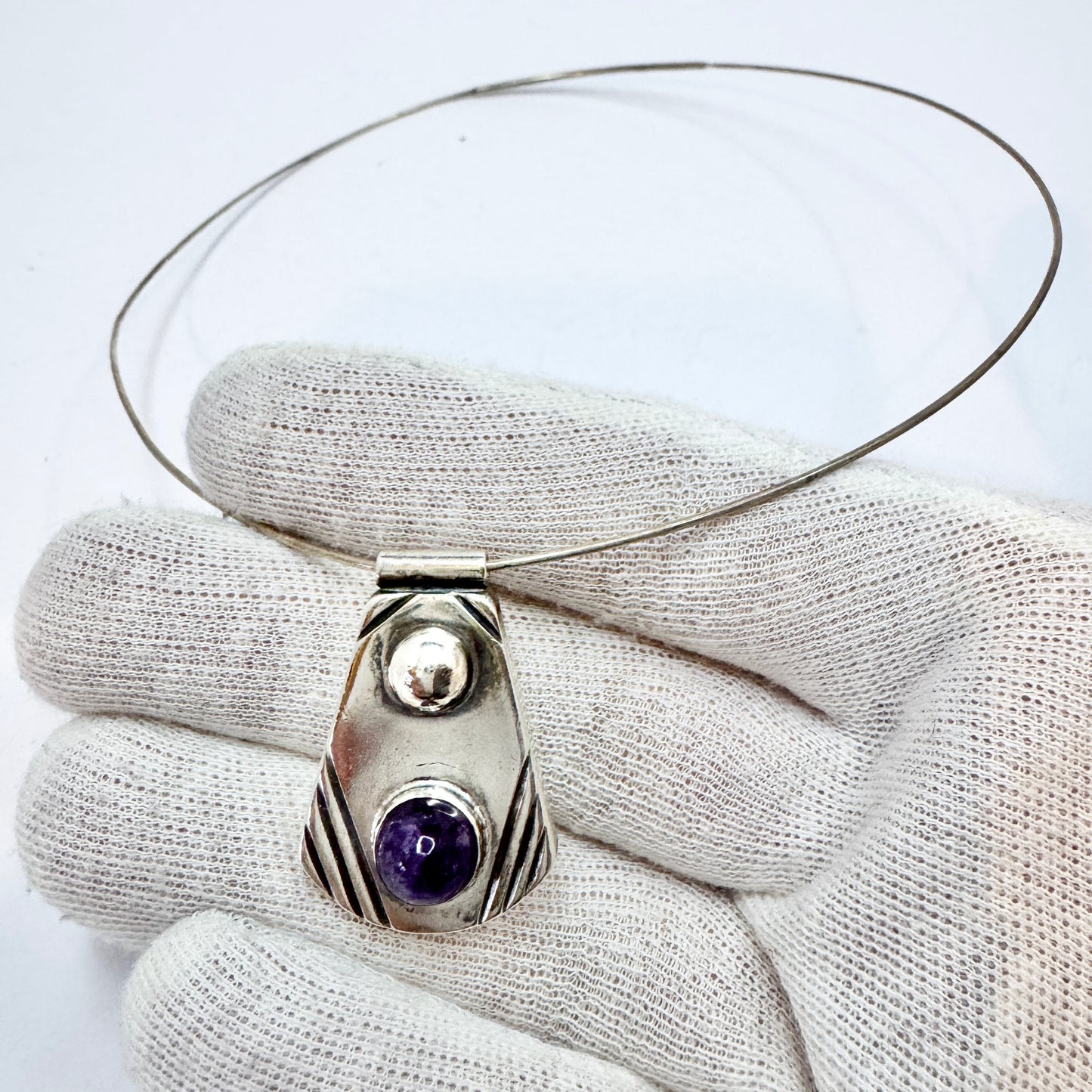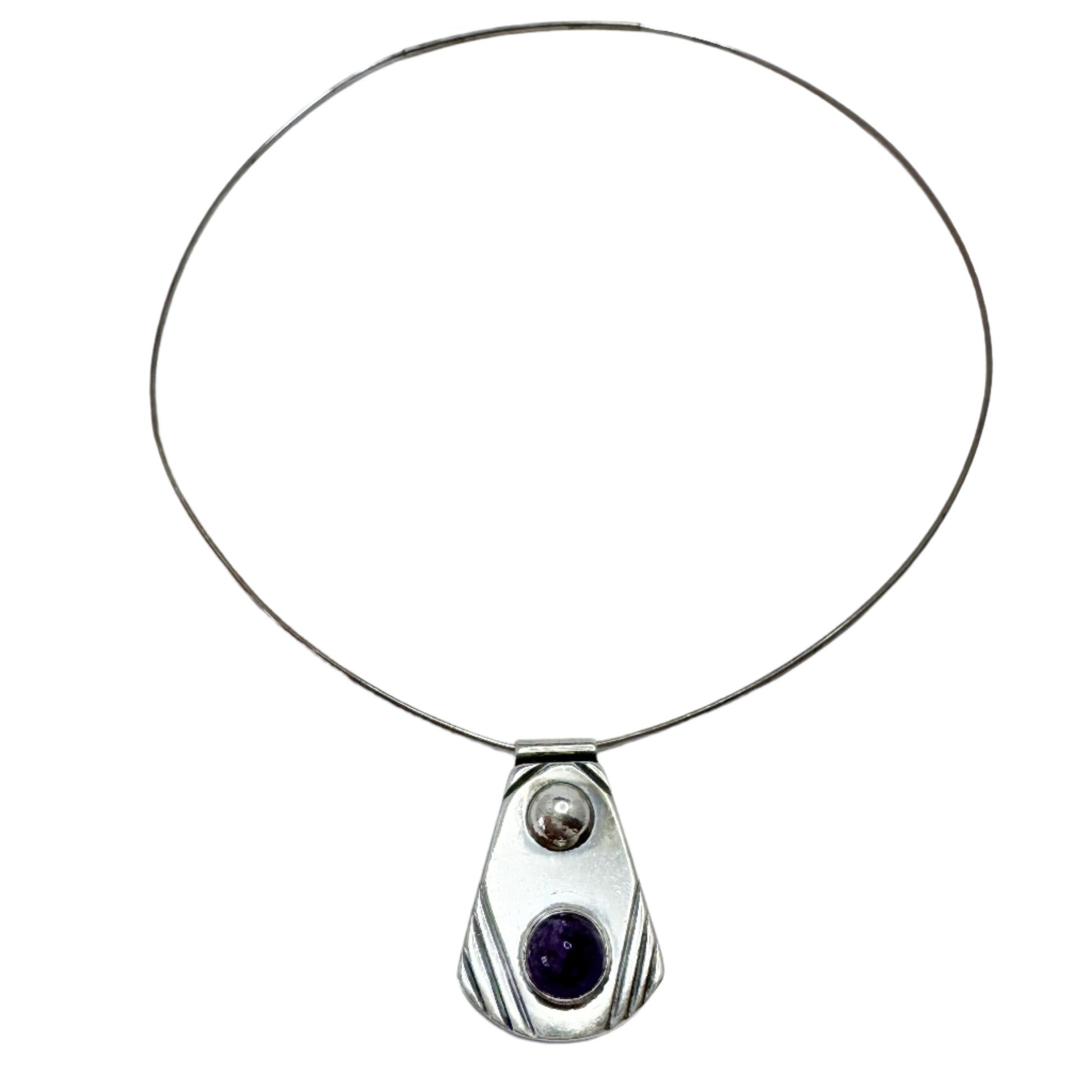 Vintage Sterling Silver Amethyst Pendant Neck-ring Necklace.