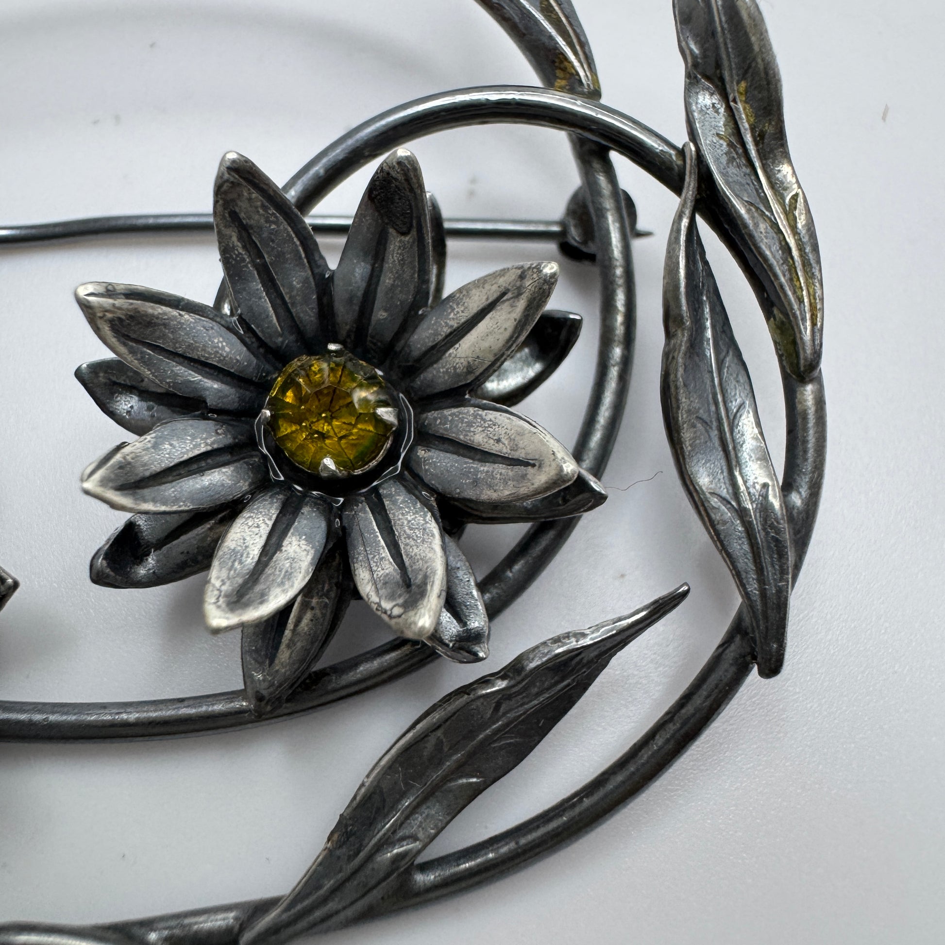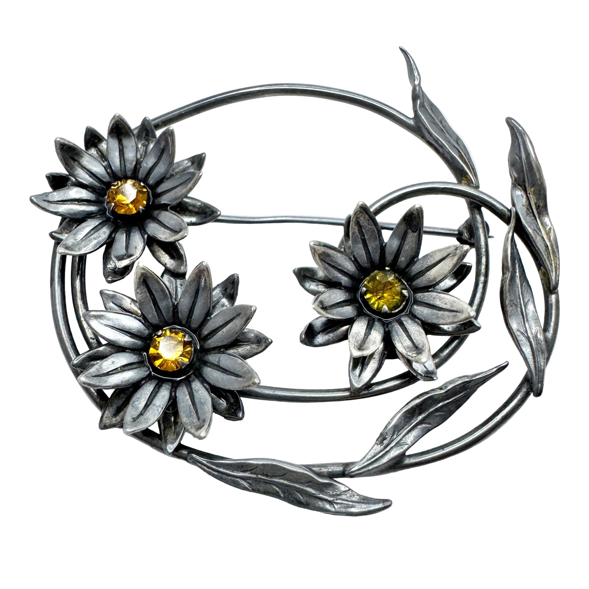 Vintage sterling silver paste stone brooch. Hallmarked for sterling silver. Probably the USA.