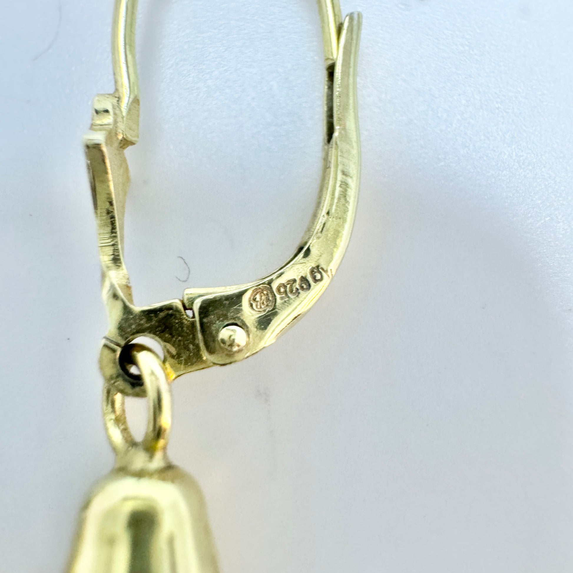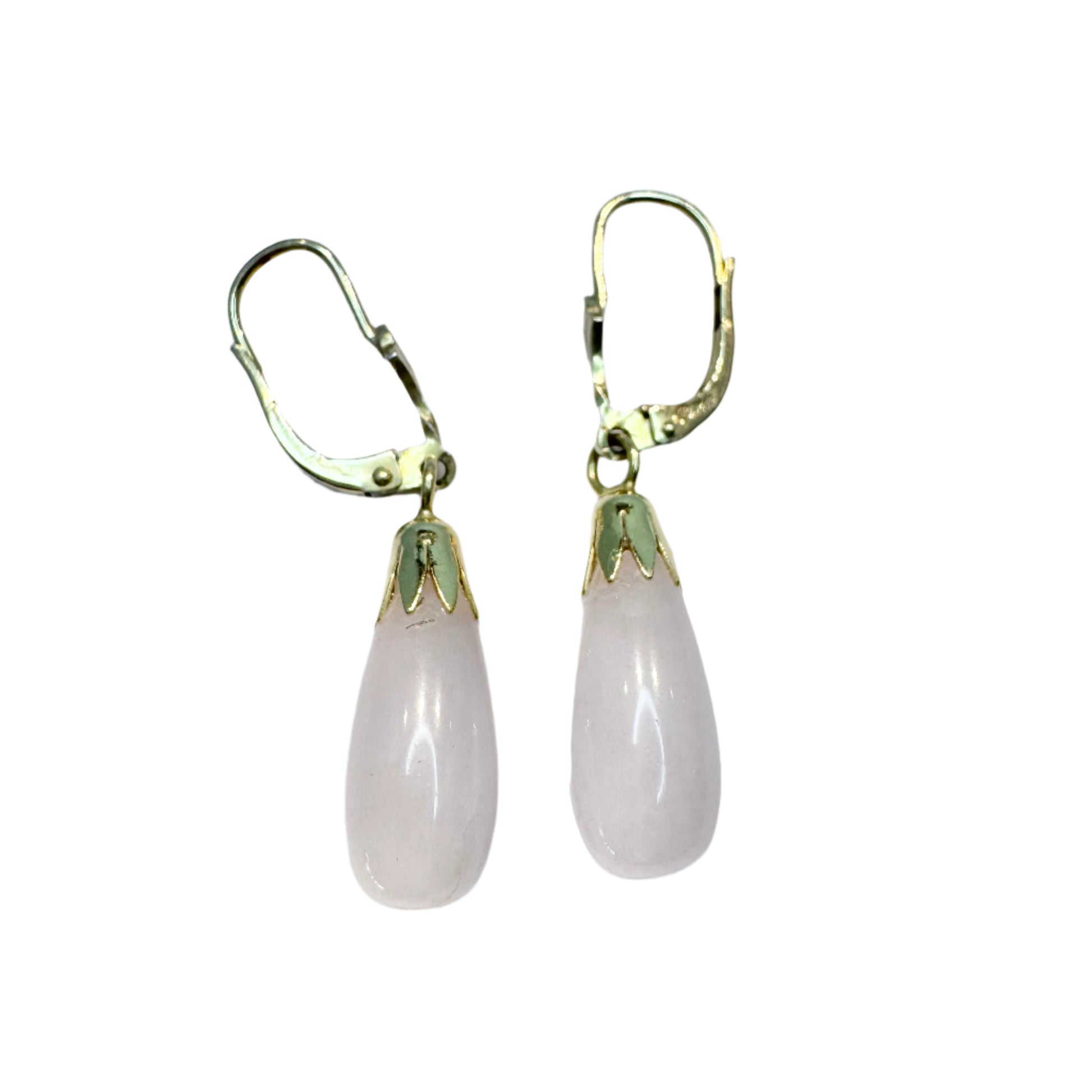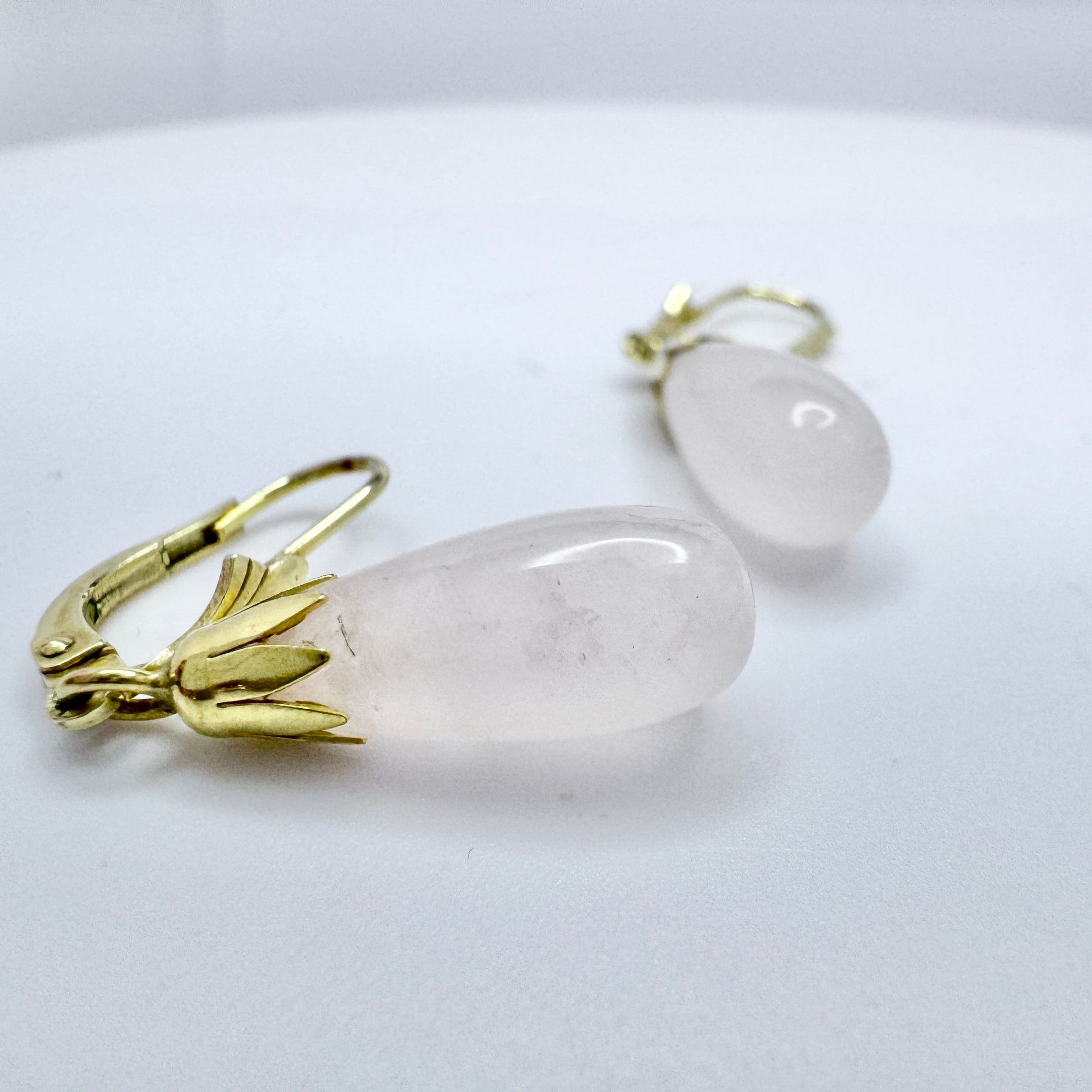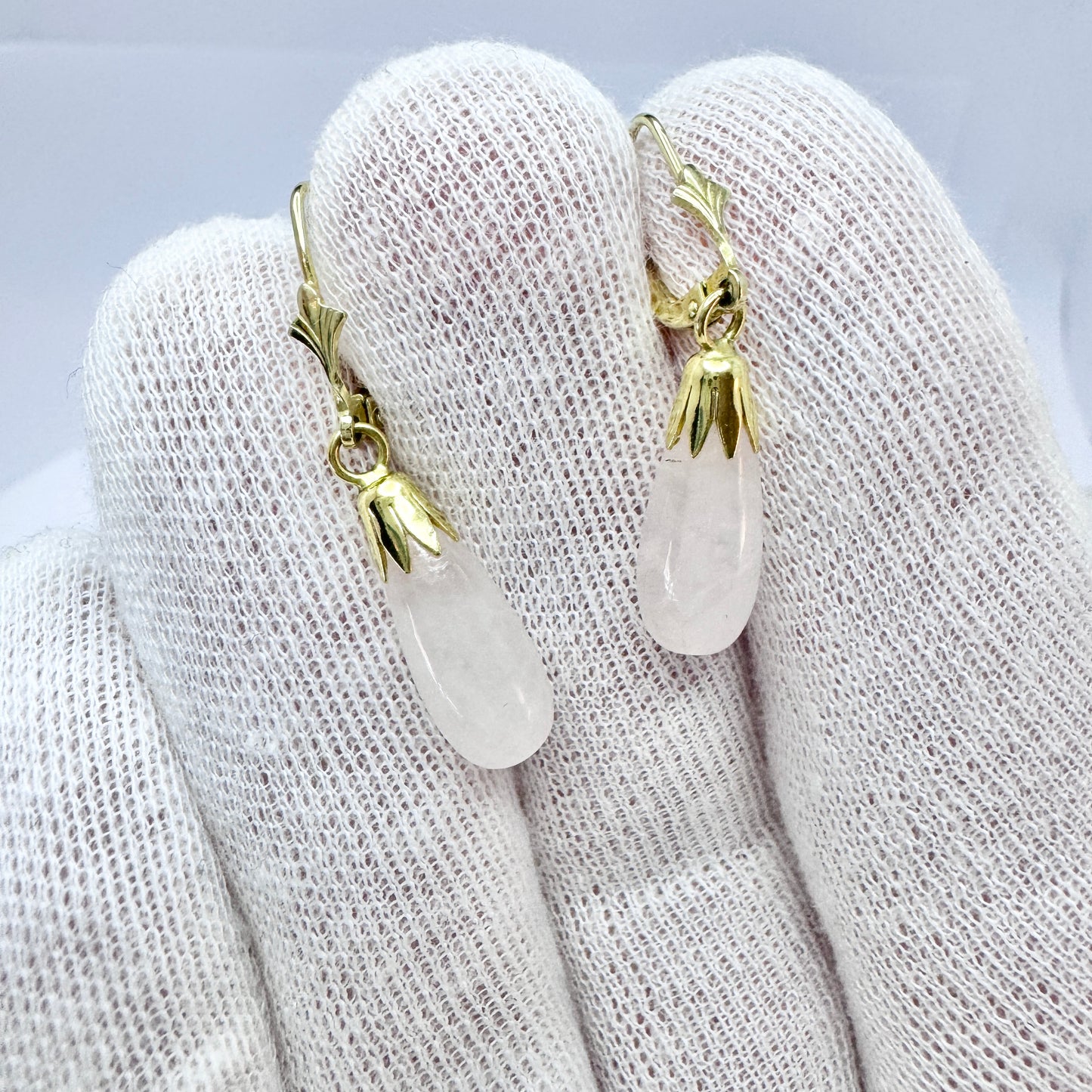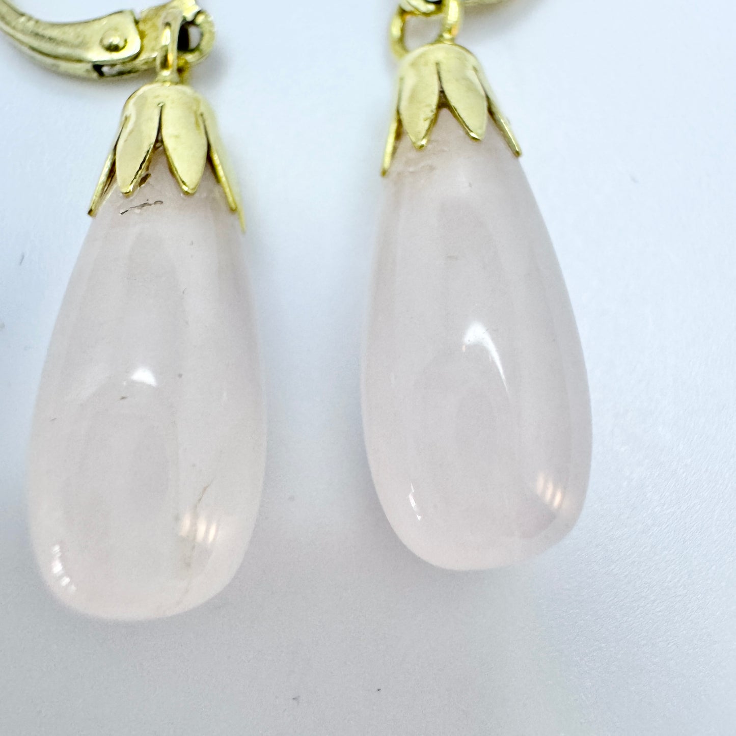 Beautiful vintage gilt solid sterling silver rose quartz pair of earrings. Hallmarked for sterling silver and unidentified makers marks.