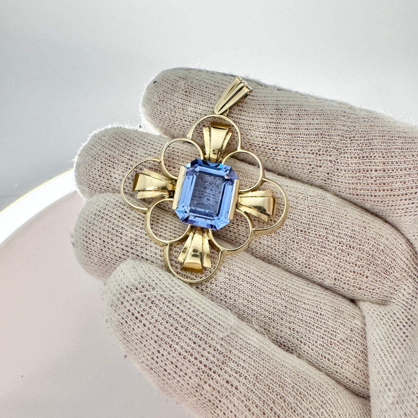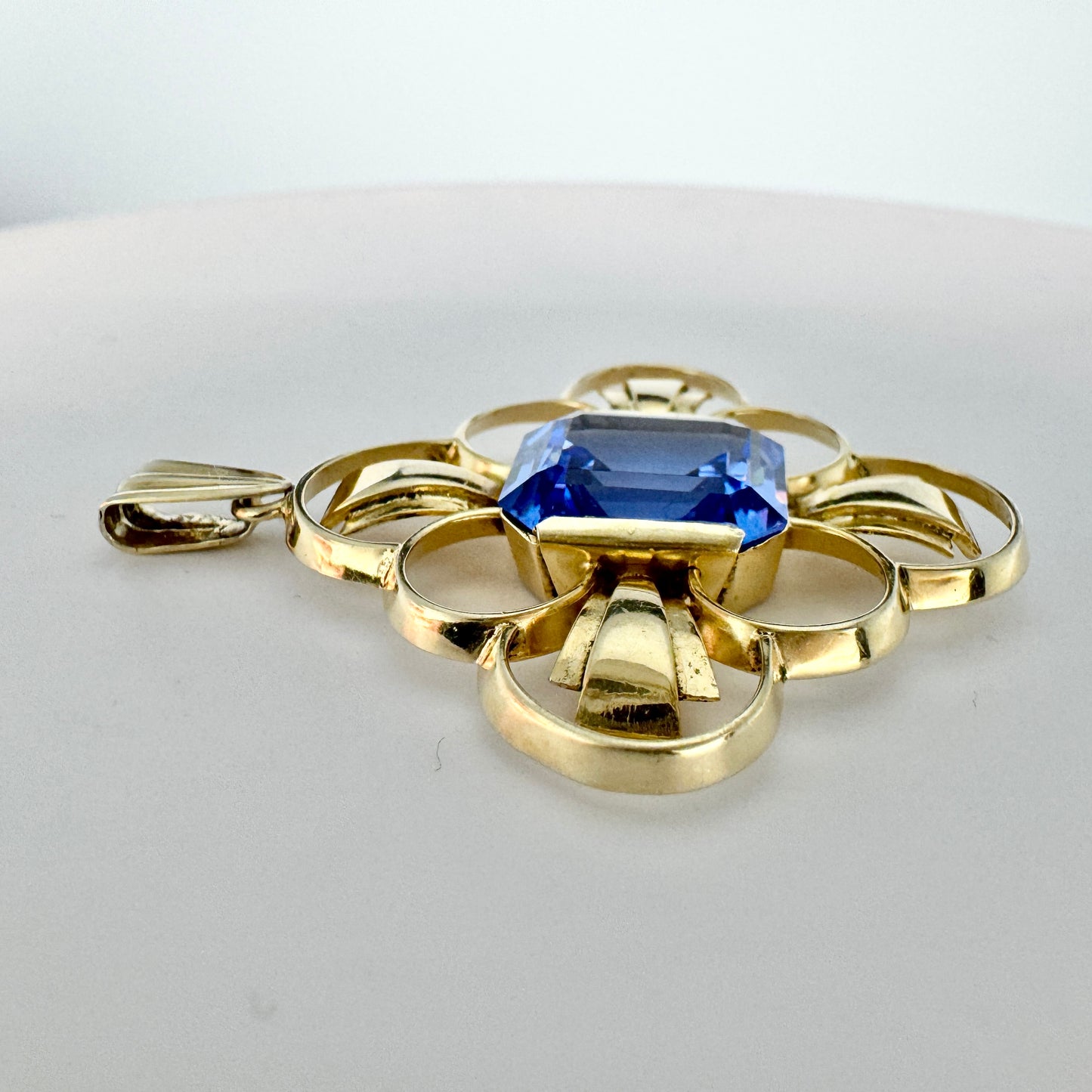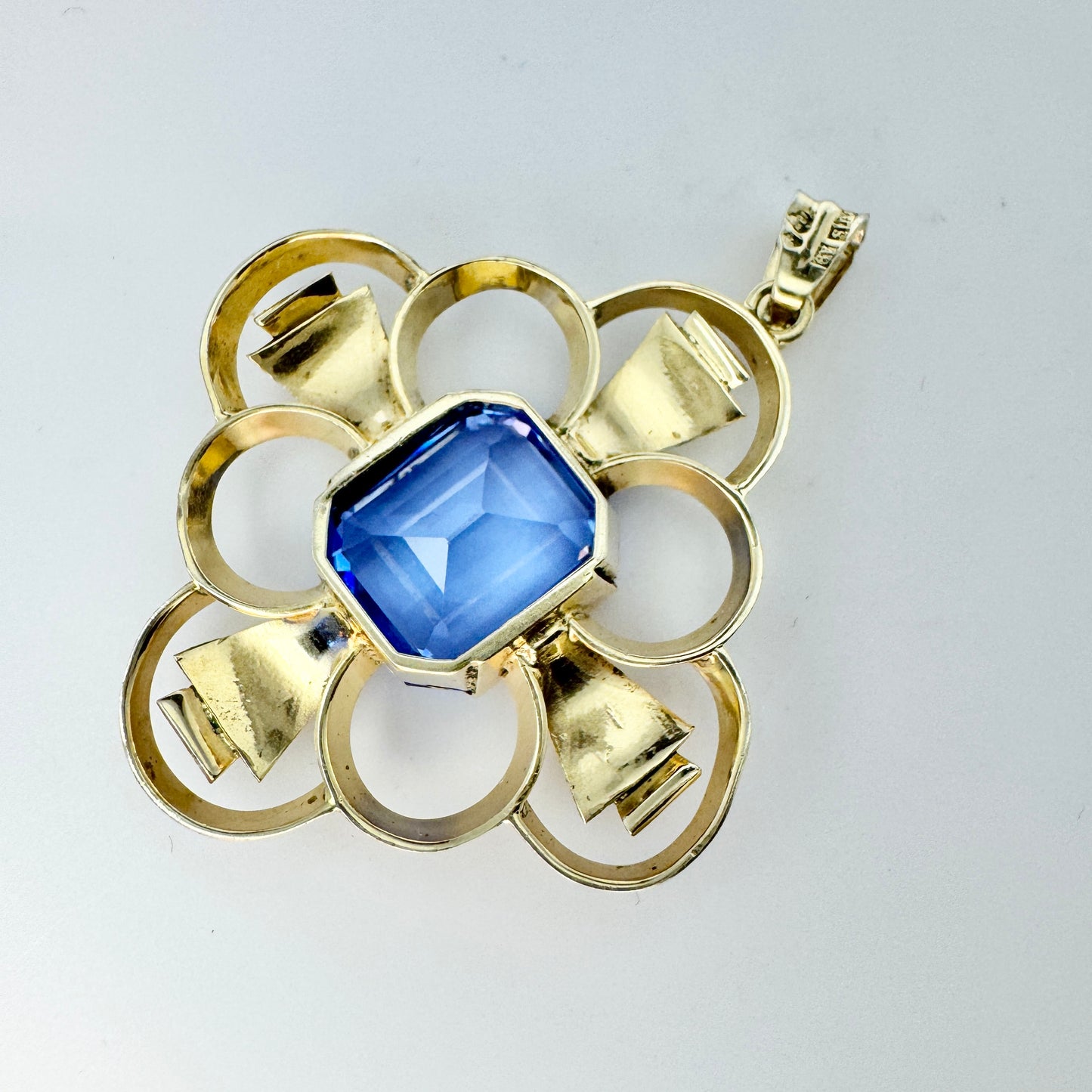 Wonderful vintage gold gilt solid silver blue synthetic spinel pendant. Fully hallmarked for Waldemar Jonsson, Sweden year 1951.
