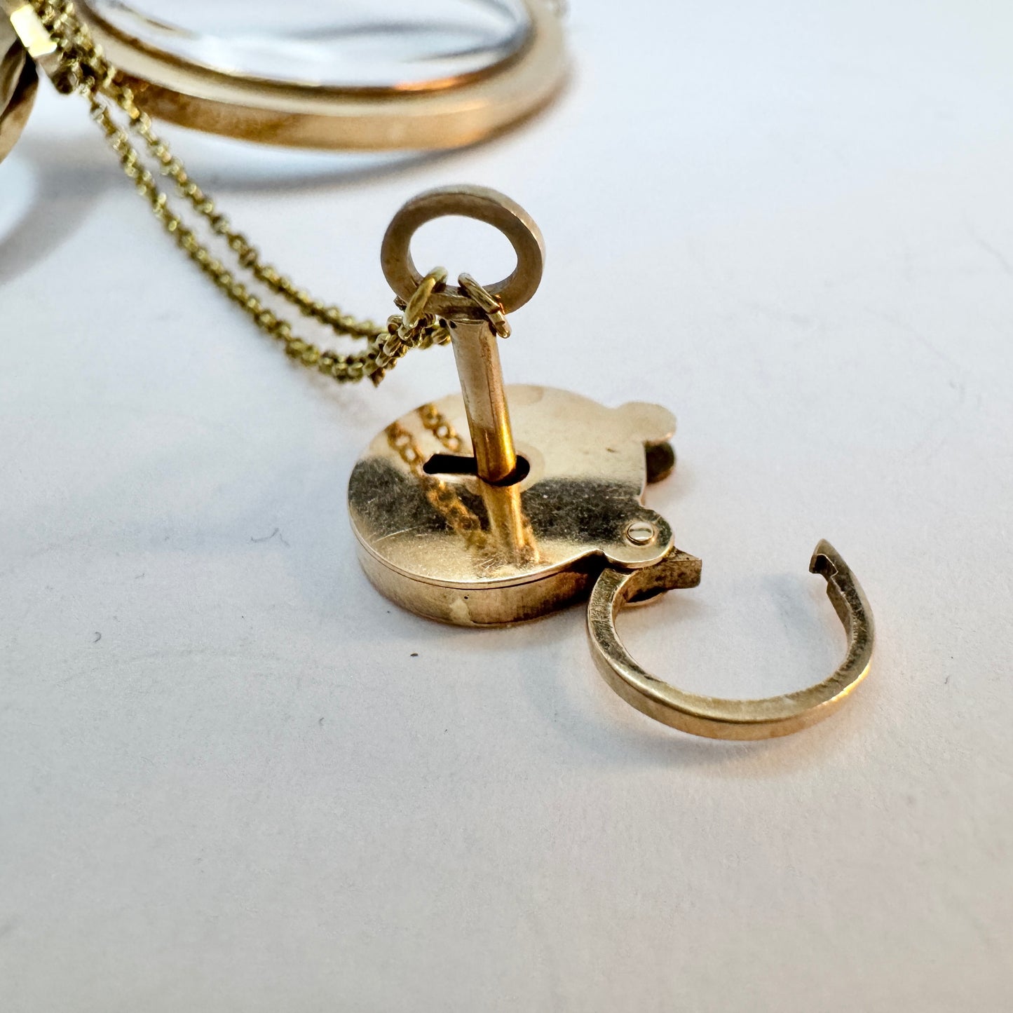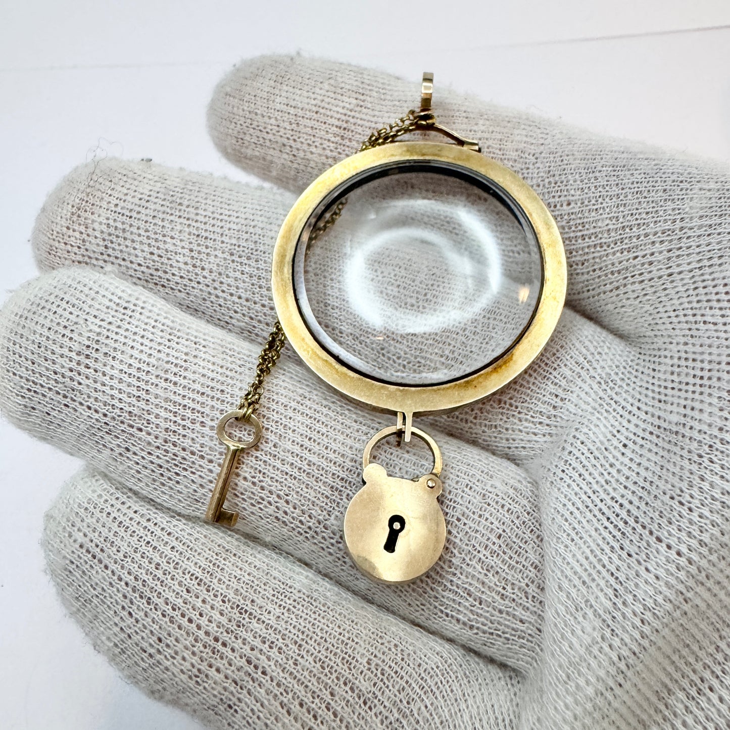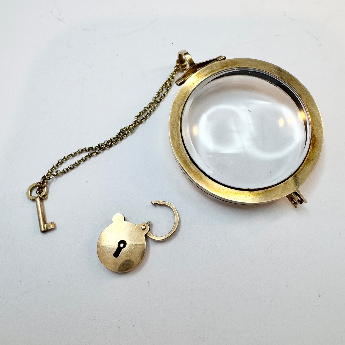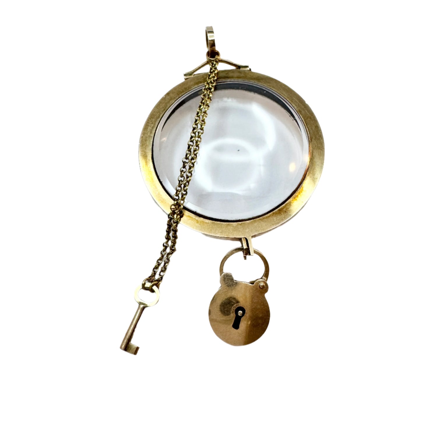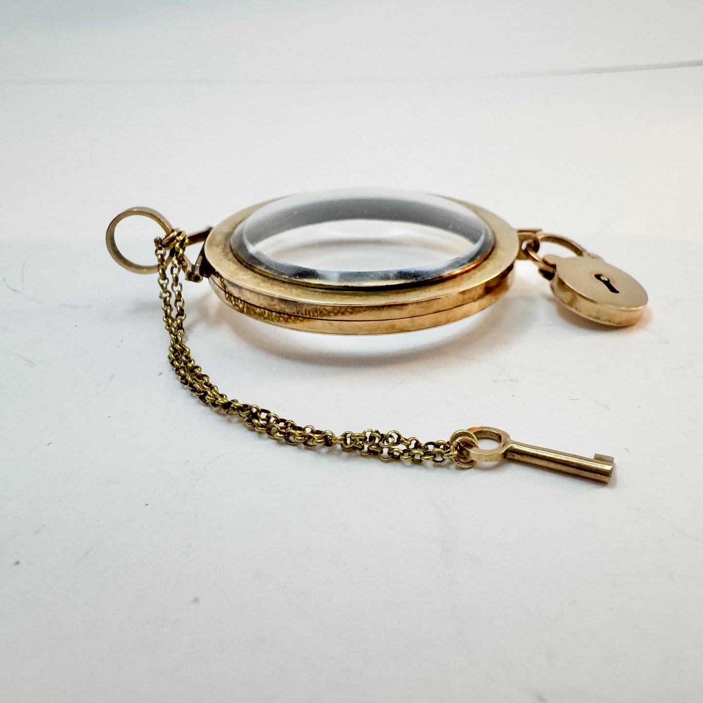 アンティーク ビクトリア朝 14K ゴールド ガラス ロケット ペンダント。