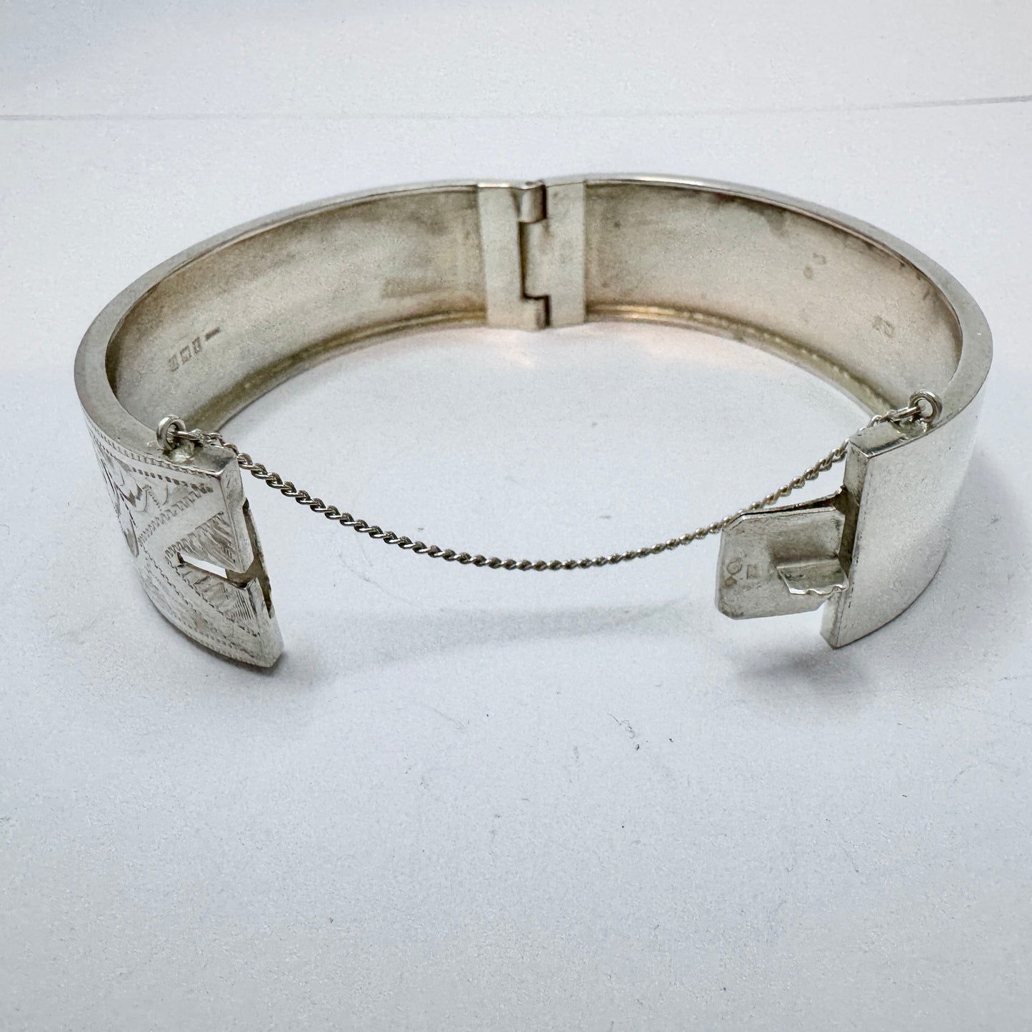 バーミンガム 1953 年。ヴィンテージ スターリング シルバー ヒンジ バングル ブレスレット。
