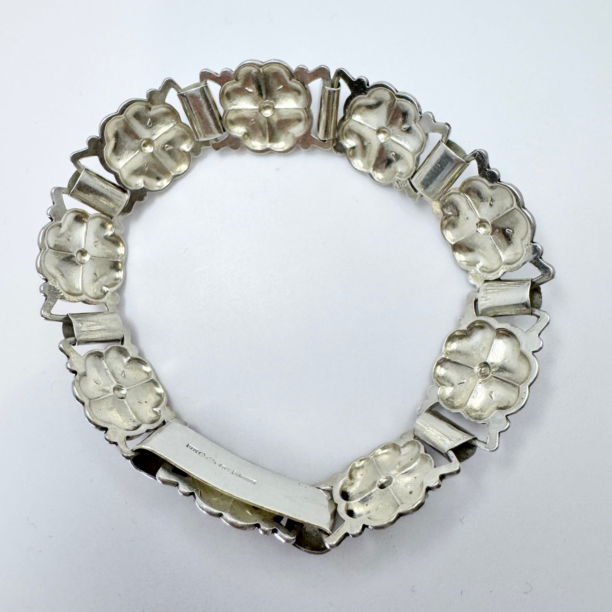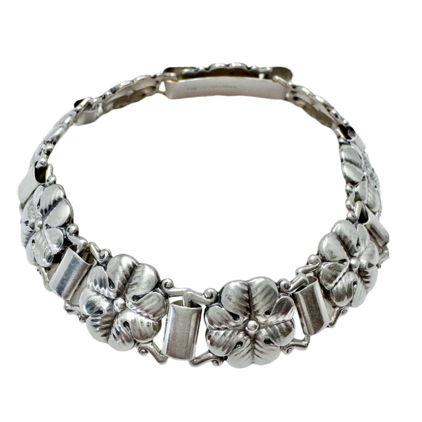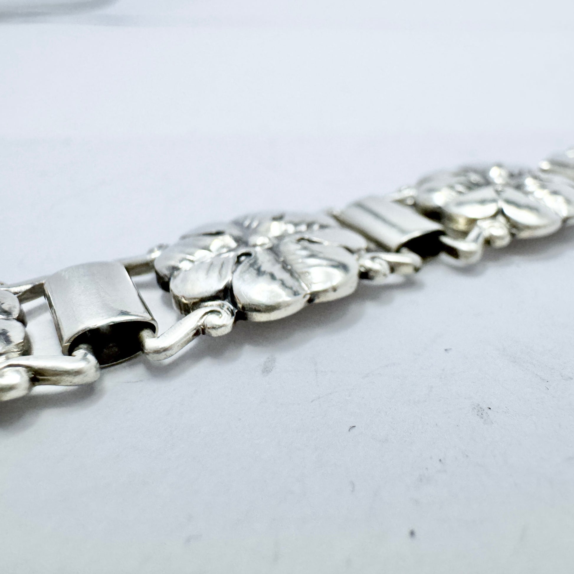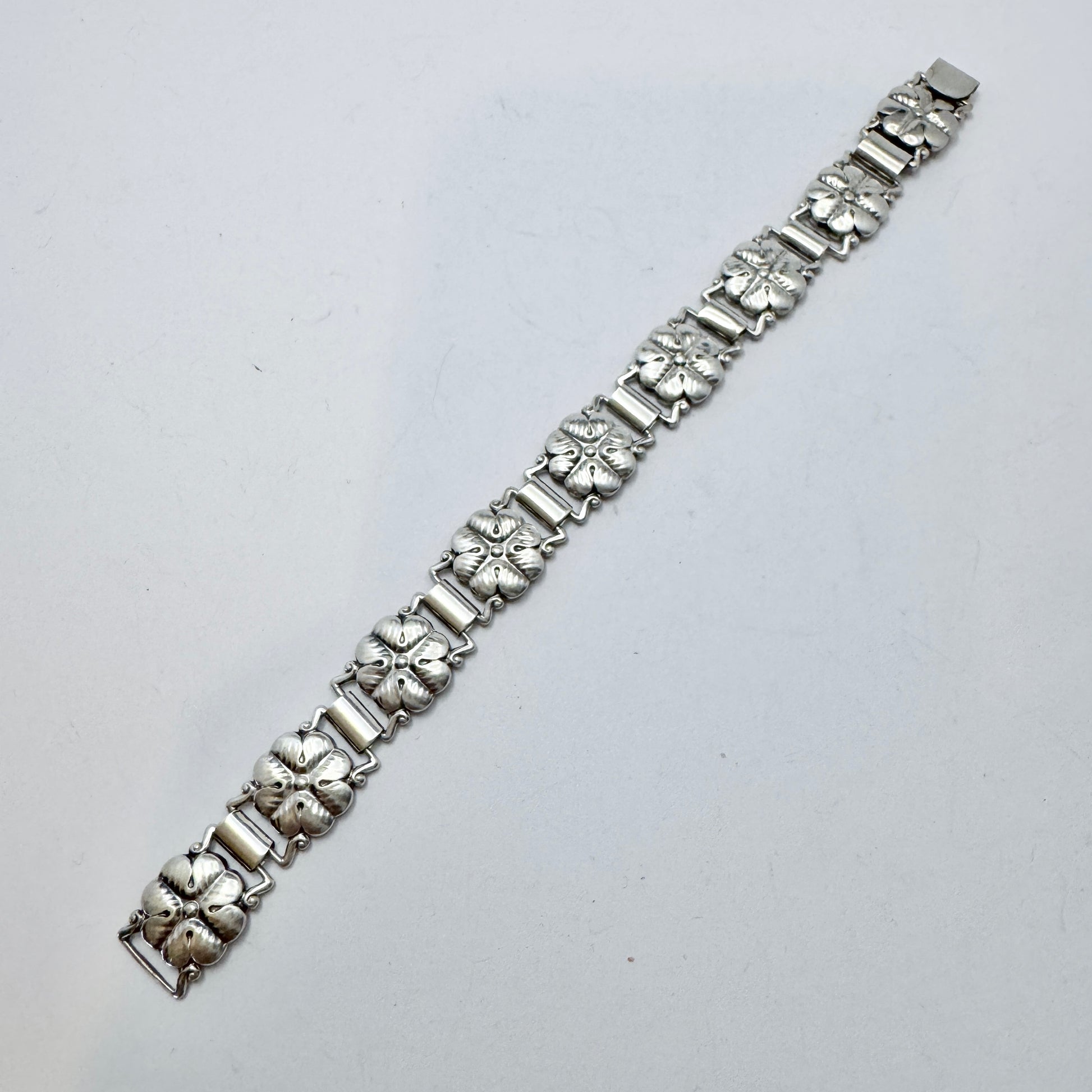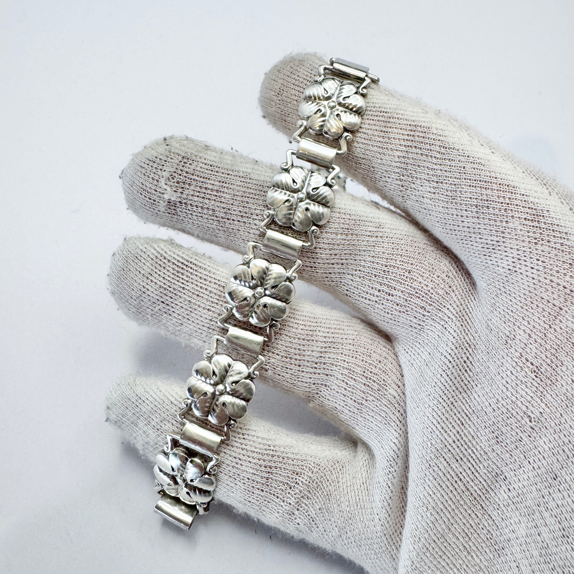 1962 年、スウェーデン、チェソン。ヴィンテージの純銀製四つ葉のクローバー ラッキー ブレスレット。