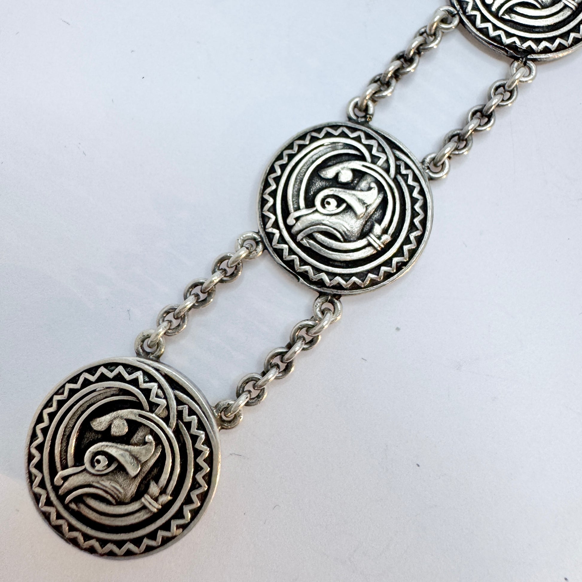 CG Hallberg, Sweden 1937. Vintage Dragestil Solid Silver Bracelet.