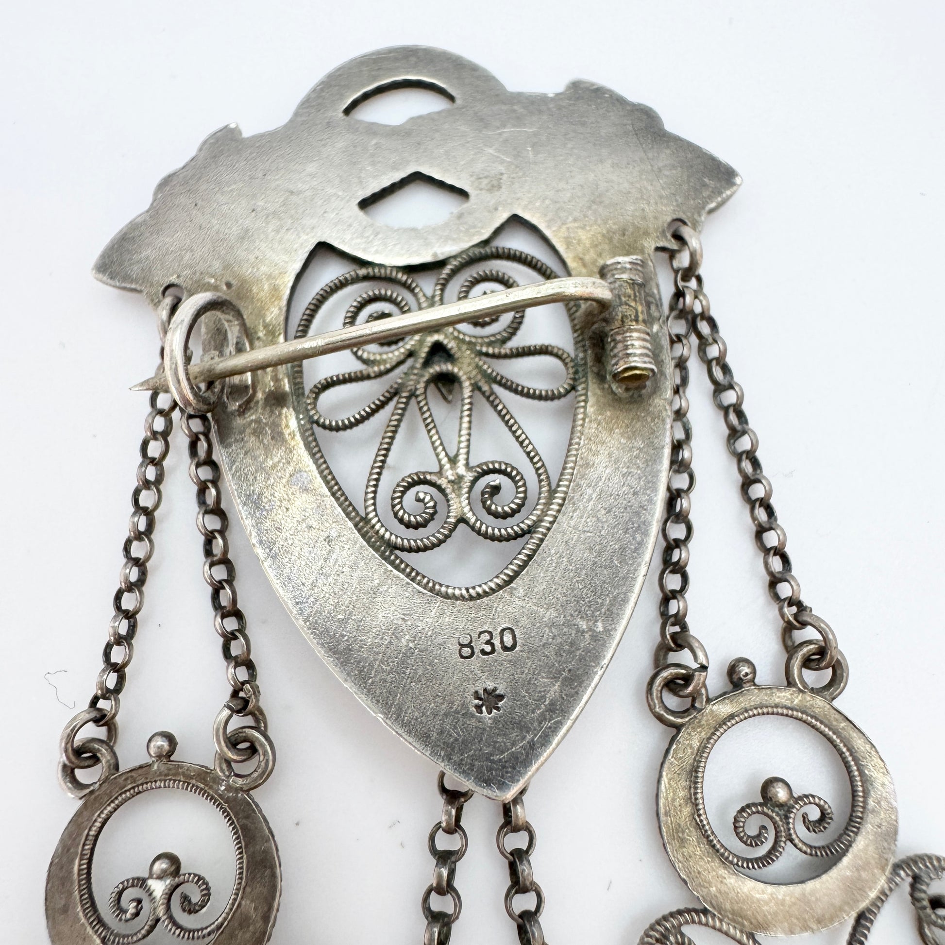 Wonderful and much sought after antique solid silver dragestil / jugendstil sølje brooch. Hallmarked for Clement Berg, Norway ca 1910.