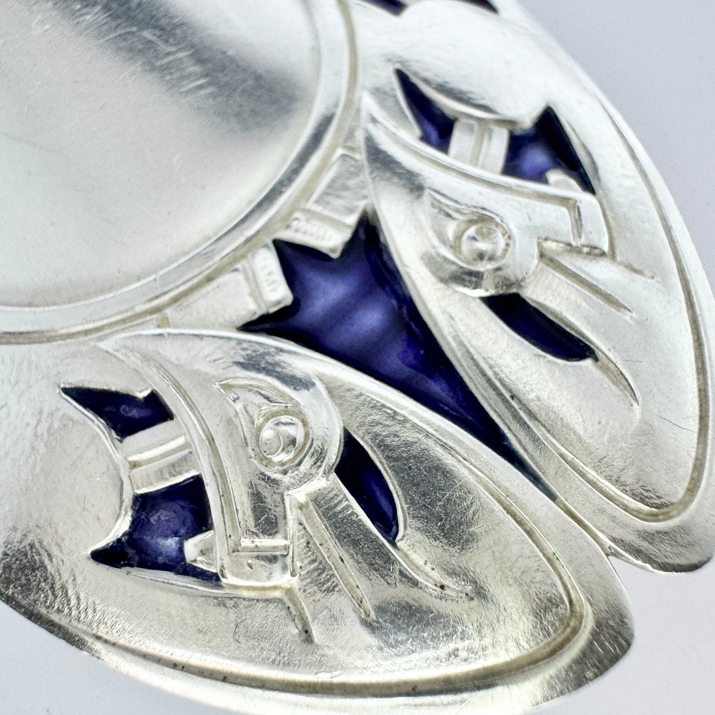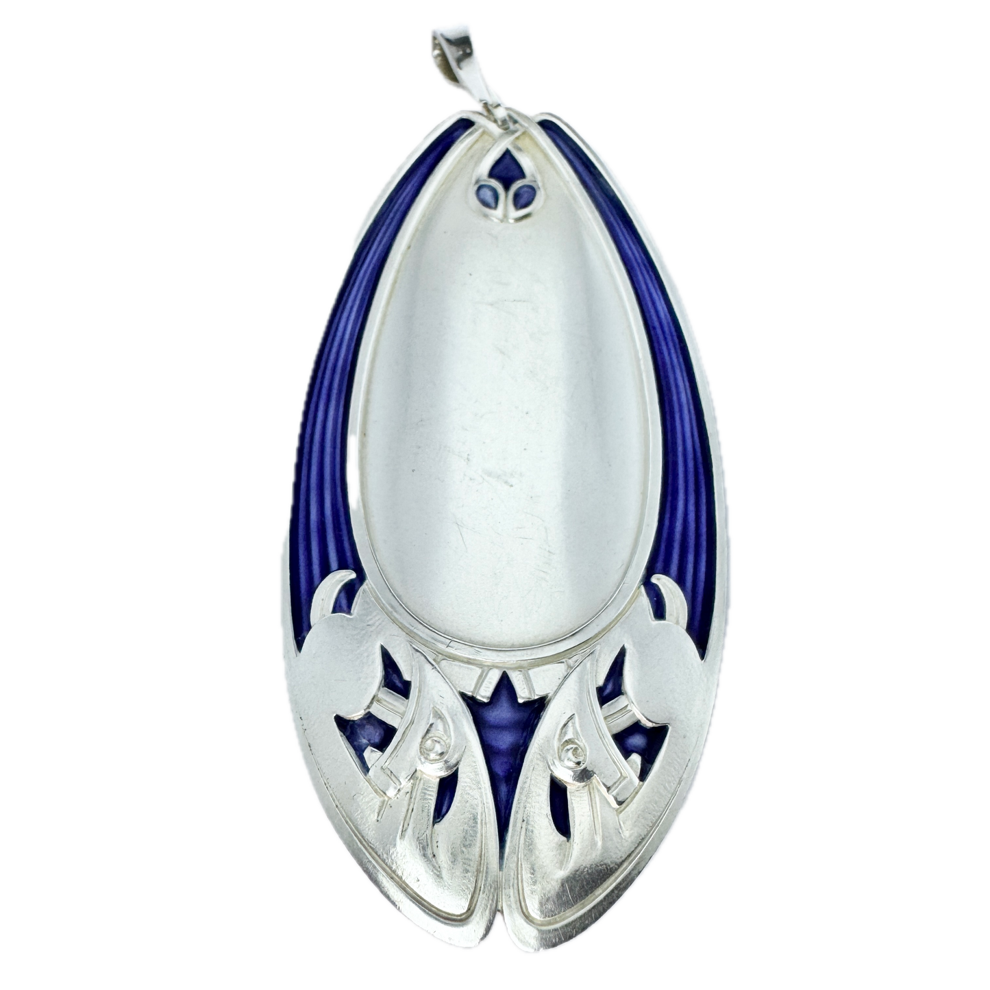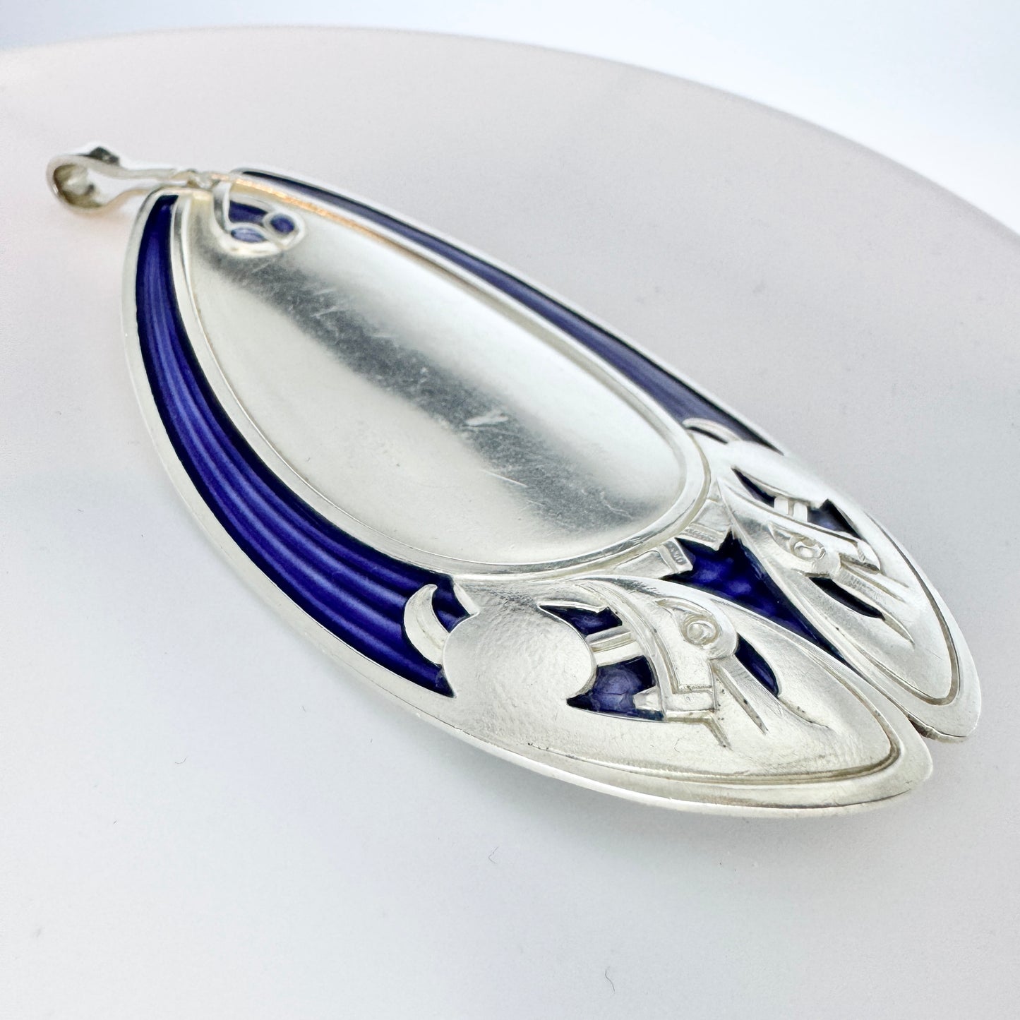 素晴らしく、非常に珍しい、大きなスターリングシルバーのエナメル ユーゲントシュティール ペンダント。ノルウェーの David-Andersen の刻印あり、1910 年代頃。