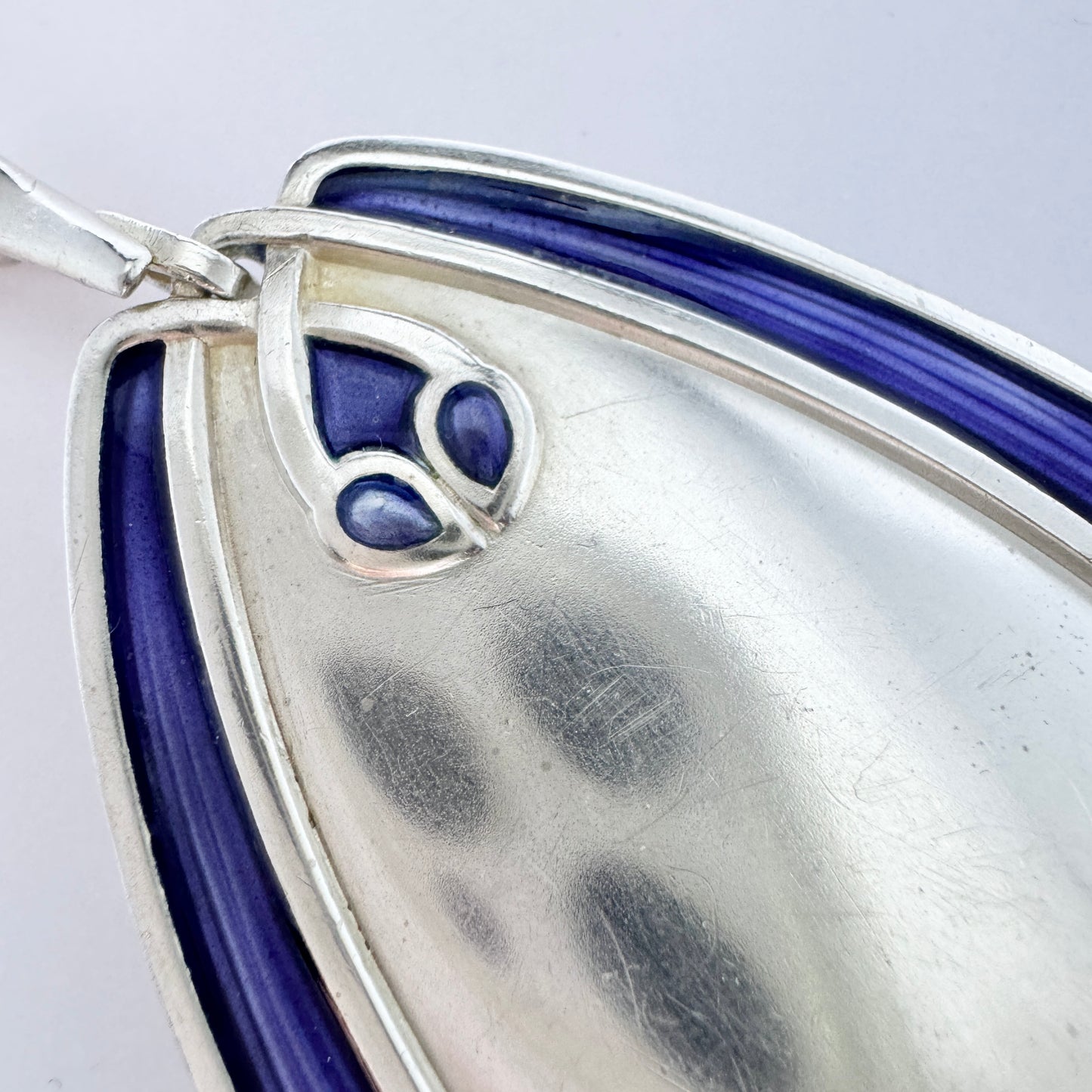 ノルウェー、David-Andersen、1910 年代頃の非常に大きなスターリング シルバーのエナメル ユーゲントシュティール ペンダント。