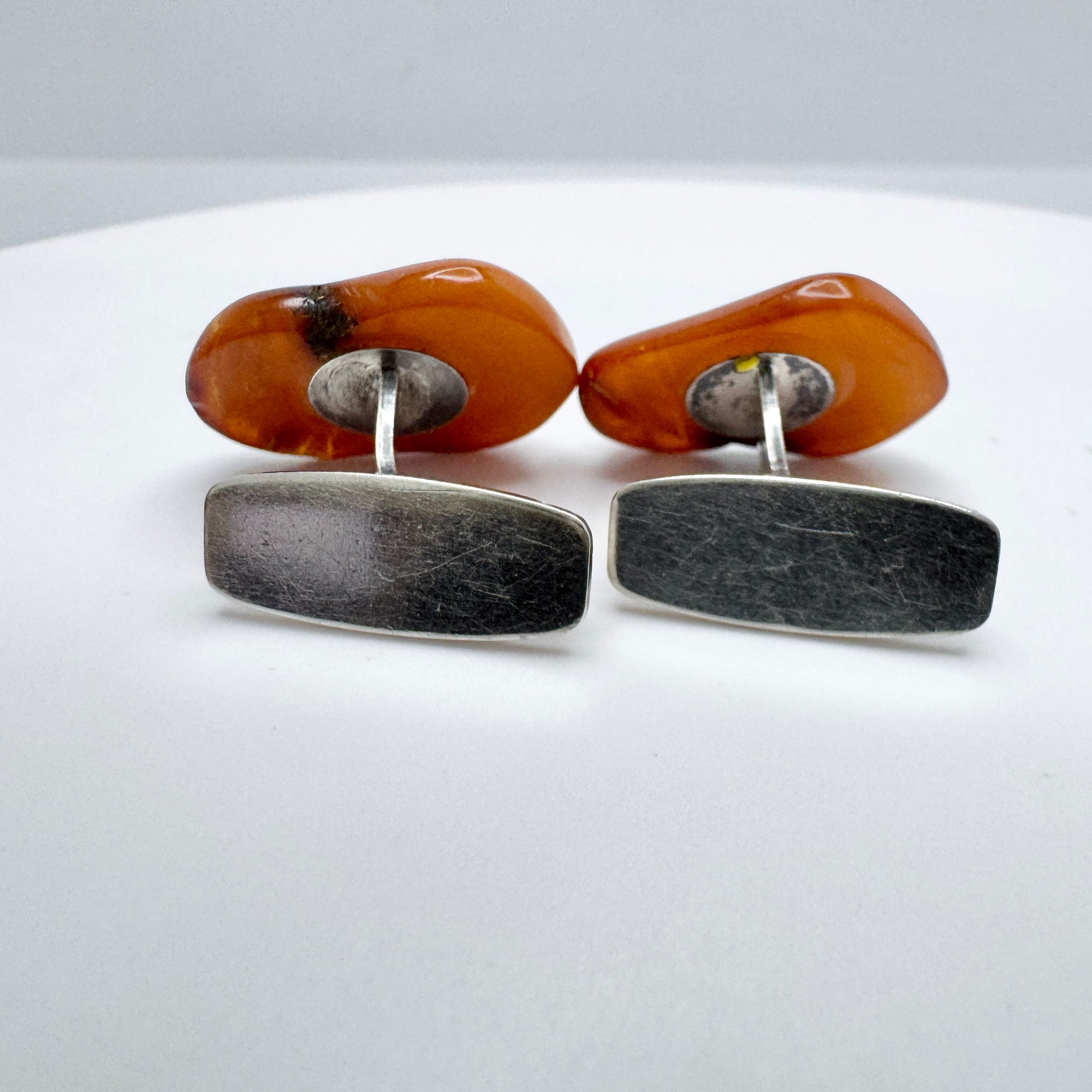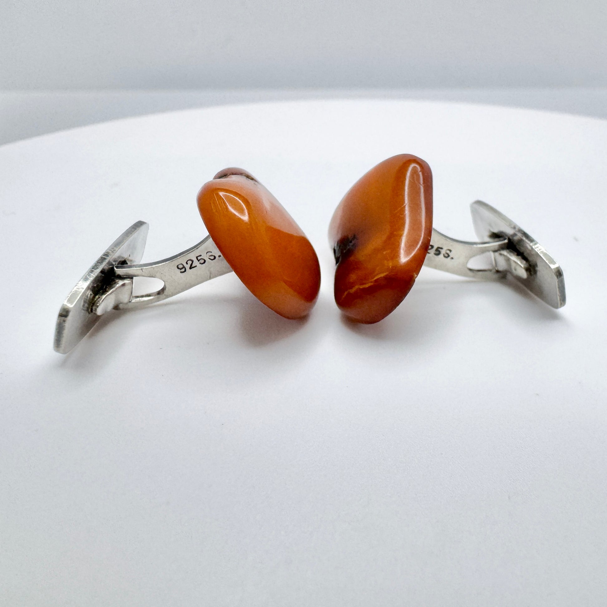 Denmark ca 1970. Vintage Sterling Silver Amber Cufflinks.