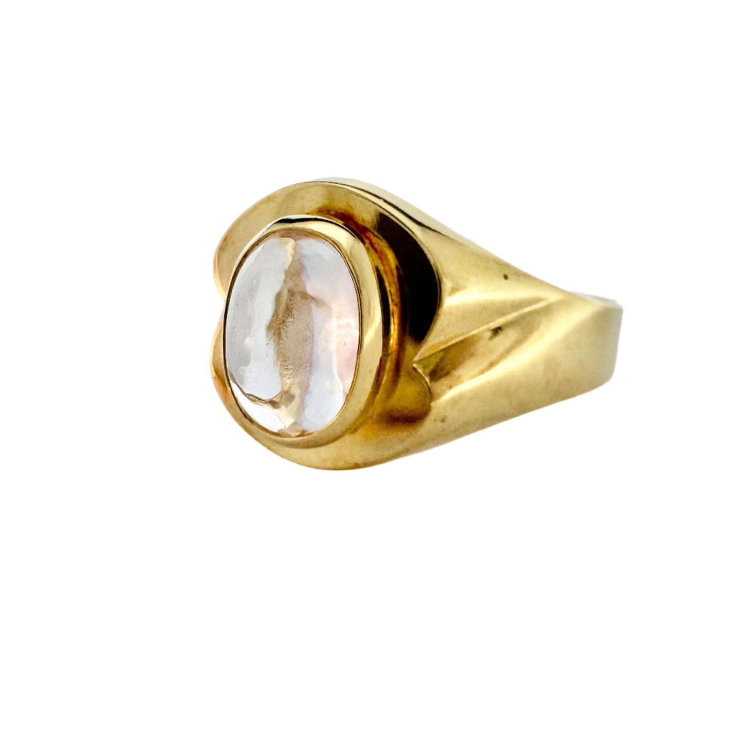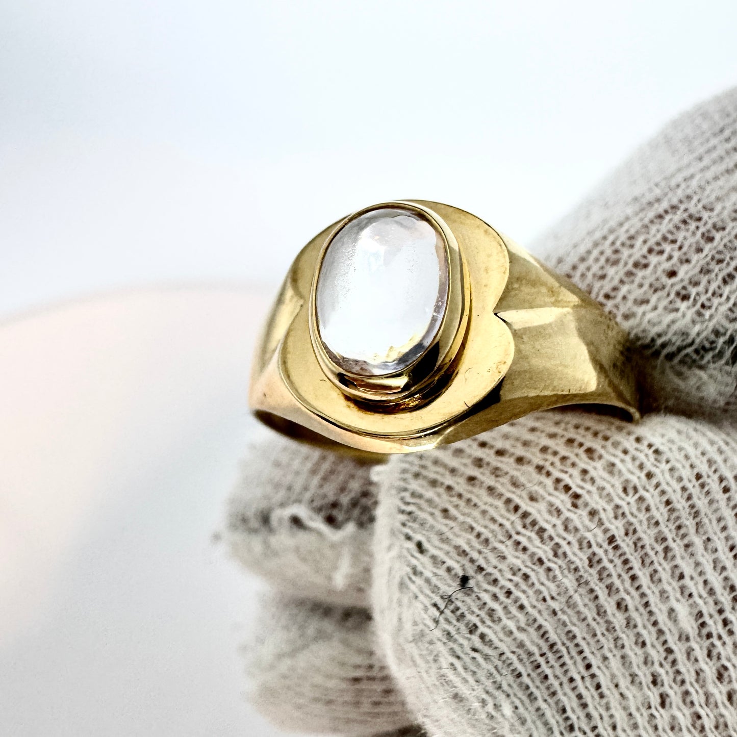 エクストローム、スウェーデン、1984 年。ヴィンテージ 18K ゴールド「光のプール」ロック クリスタル リング。