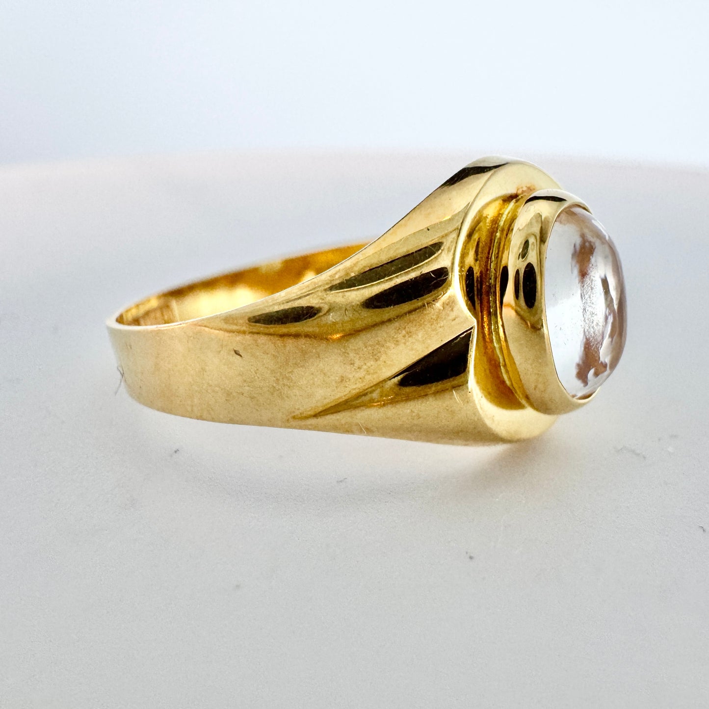 素晴らしいヴィンテージ 18K ゴールド ロッククリスタル リング。1984 年スウェーデン、エクストロームの 18K ゴールドの刻印が完全に入ります。