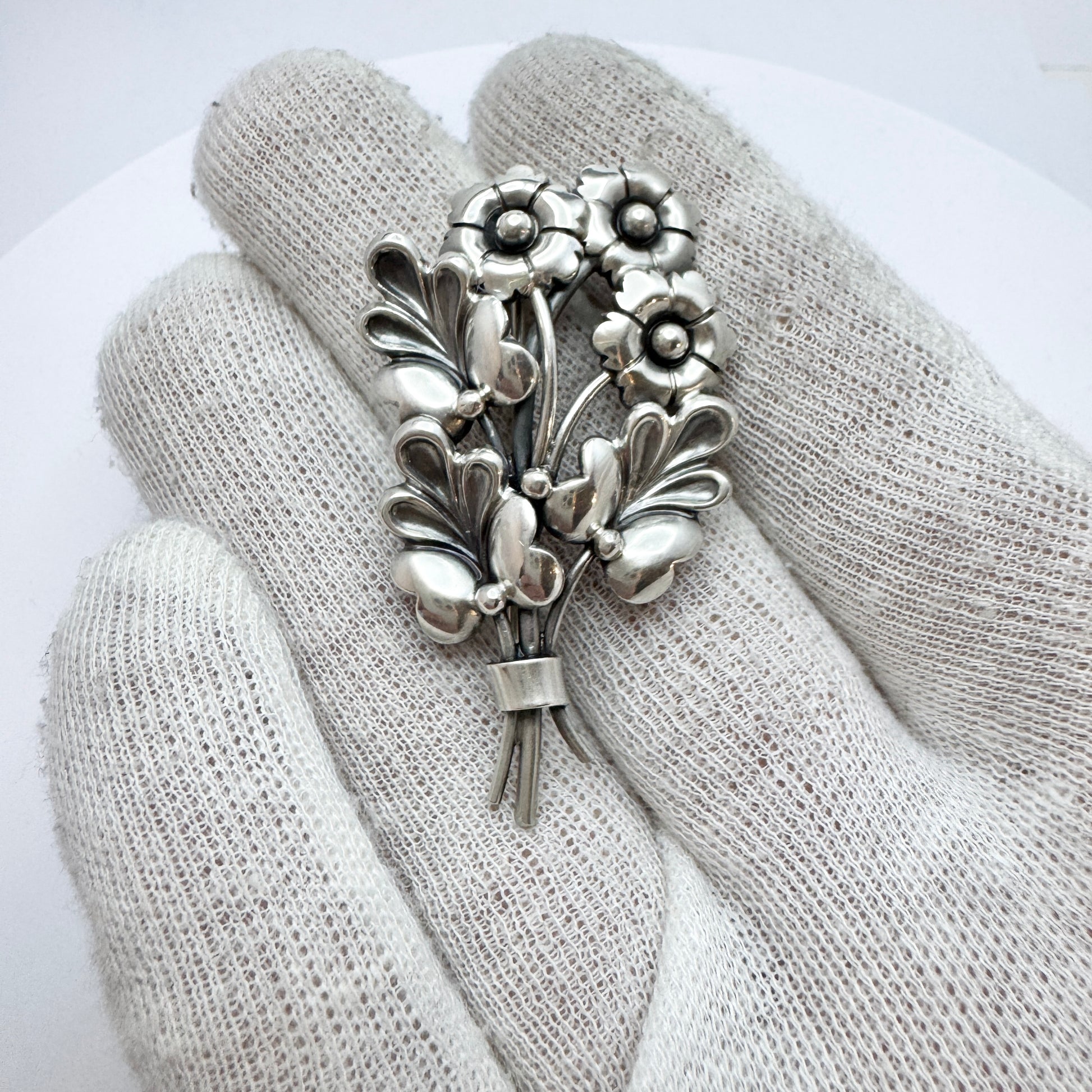 G Dahlgren, Sweden 1940s. Vintage Solid Silver Flower Bouquet Brooch.