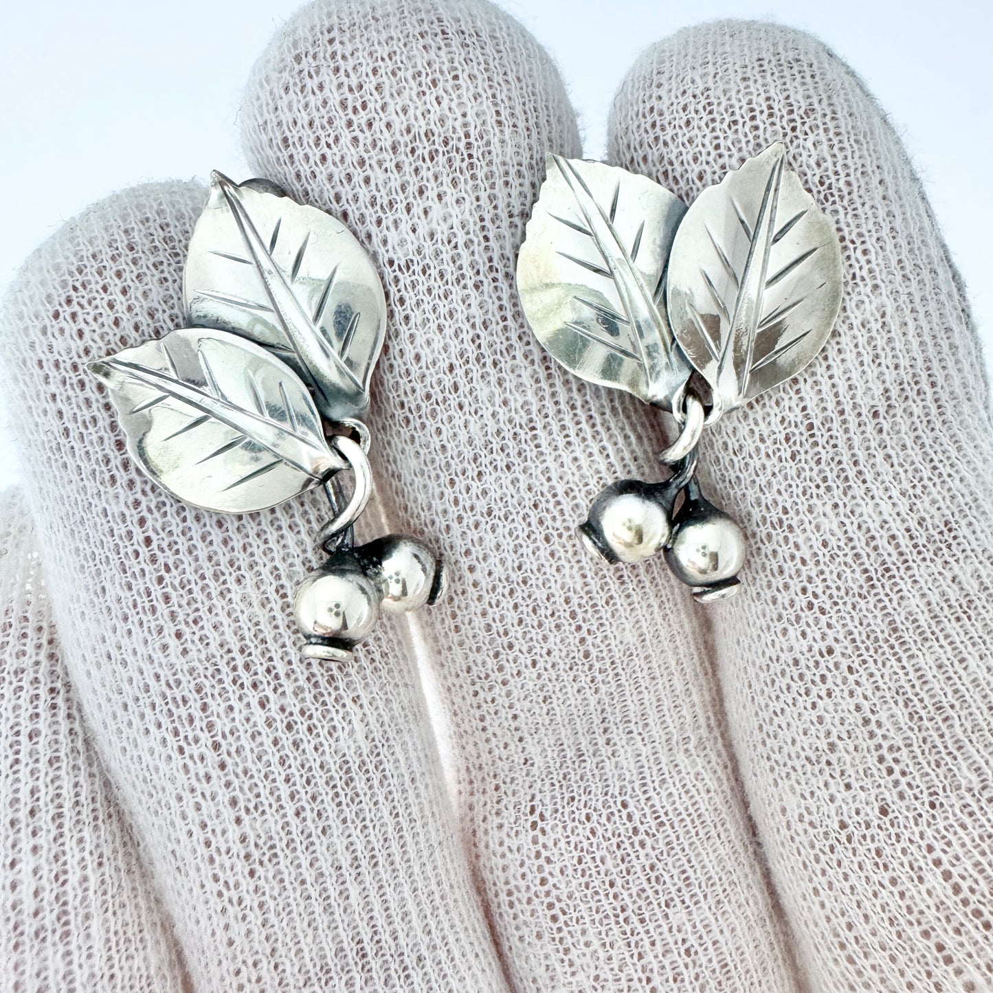 ゲルトルート・エンゲル、ミケルセン、スウェーデン、1954 年。ヴィンテージ スターリング シルバー イヤリング。署名入り。
