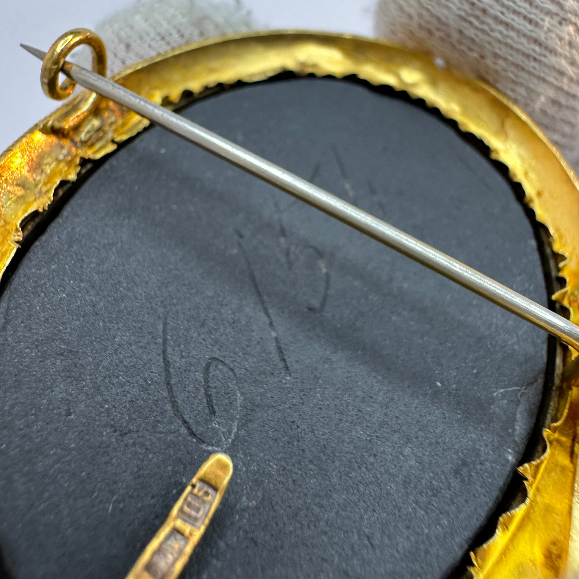 Gustaf Möllenborg, Sweden 1874. Antique 18k Gold Grand Tour Pietra Dura Brooch.