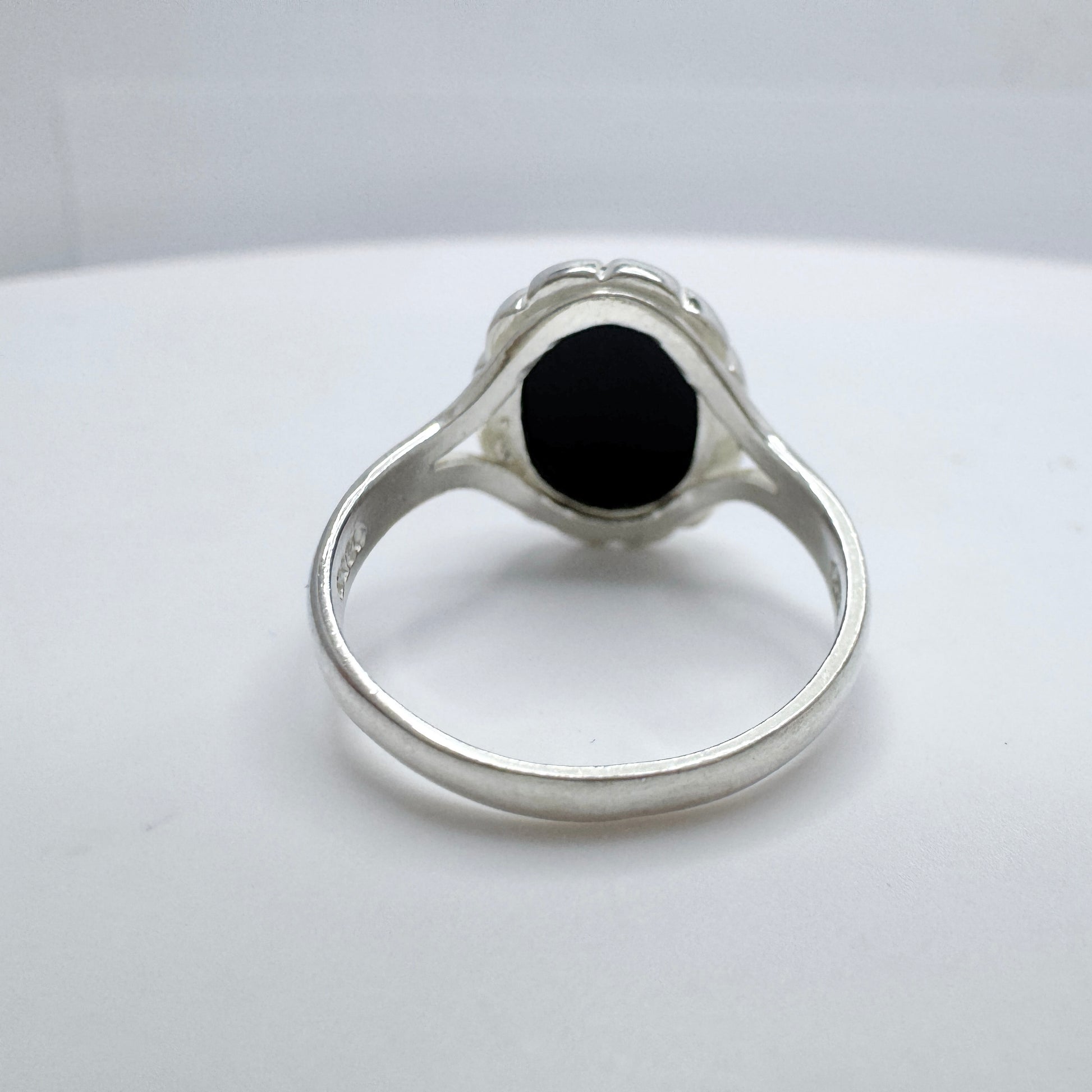 Beautiful vintage sterling silver onyx ring. Hallmarked for Herman Siersbøl, Denmark ca 1950s.