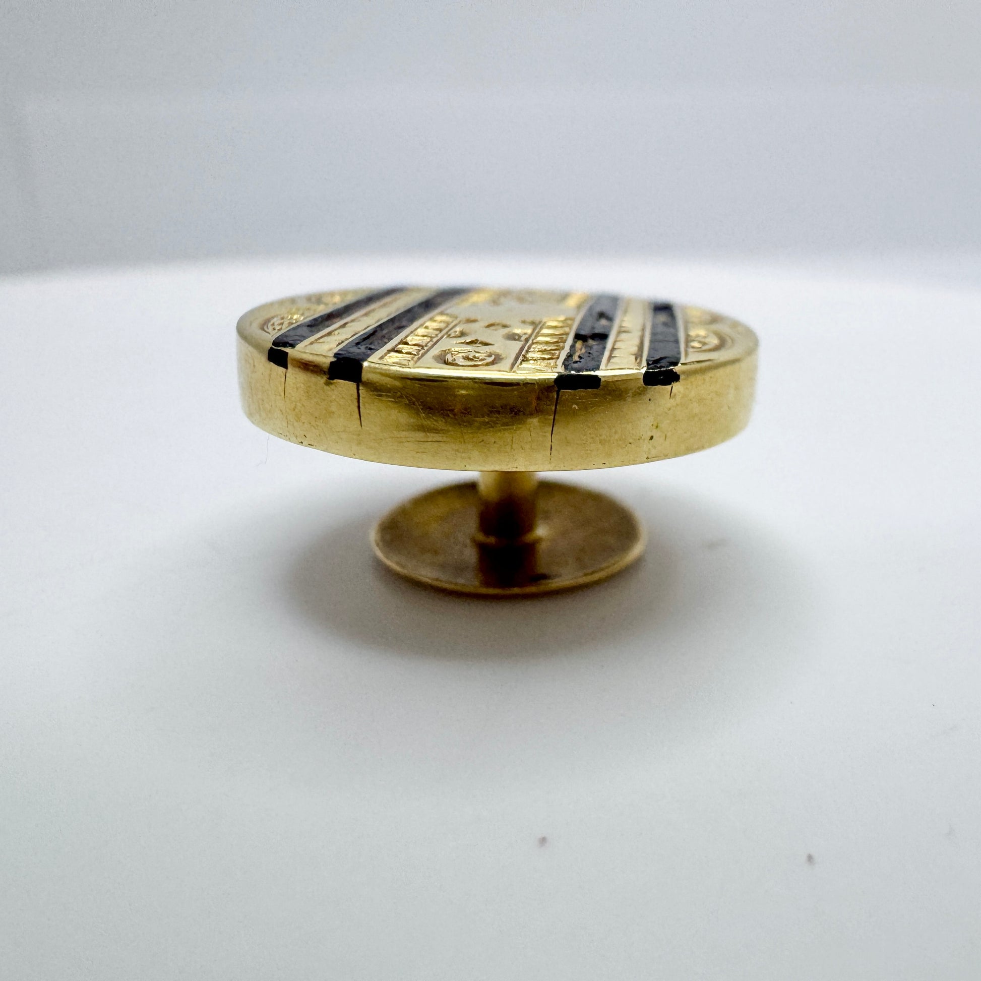 Beautiful antique 18k gold black enamel button. Hallmarked for 18k gold, J E Torsk, Stockholm, Sweden year 1864.