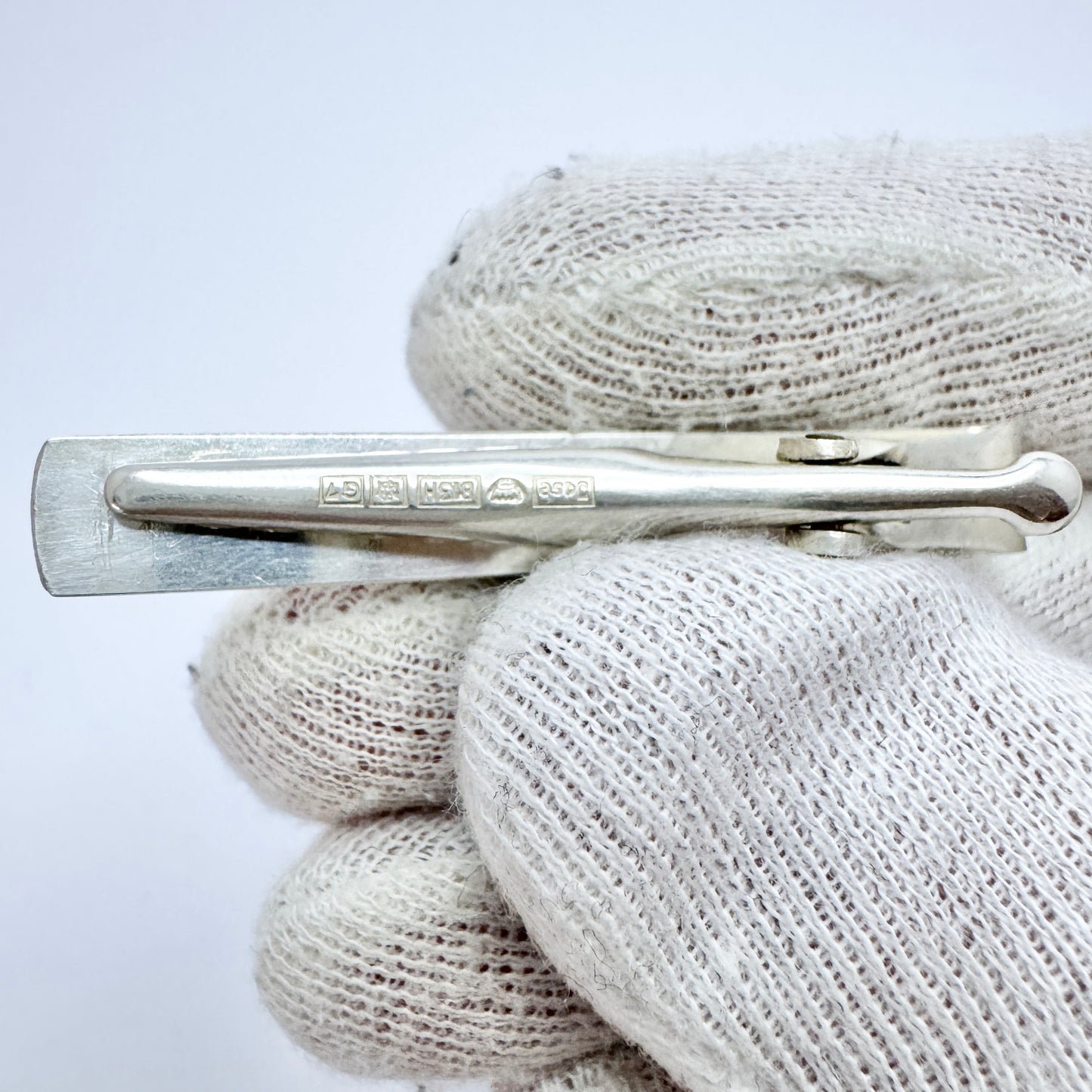 Beautiful vintage solid silver moonstone tie-clip. Fully hallmarked for Jalosepot Oy, Finland year 1960.