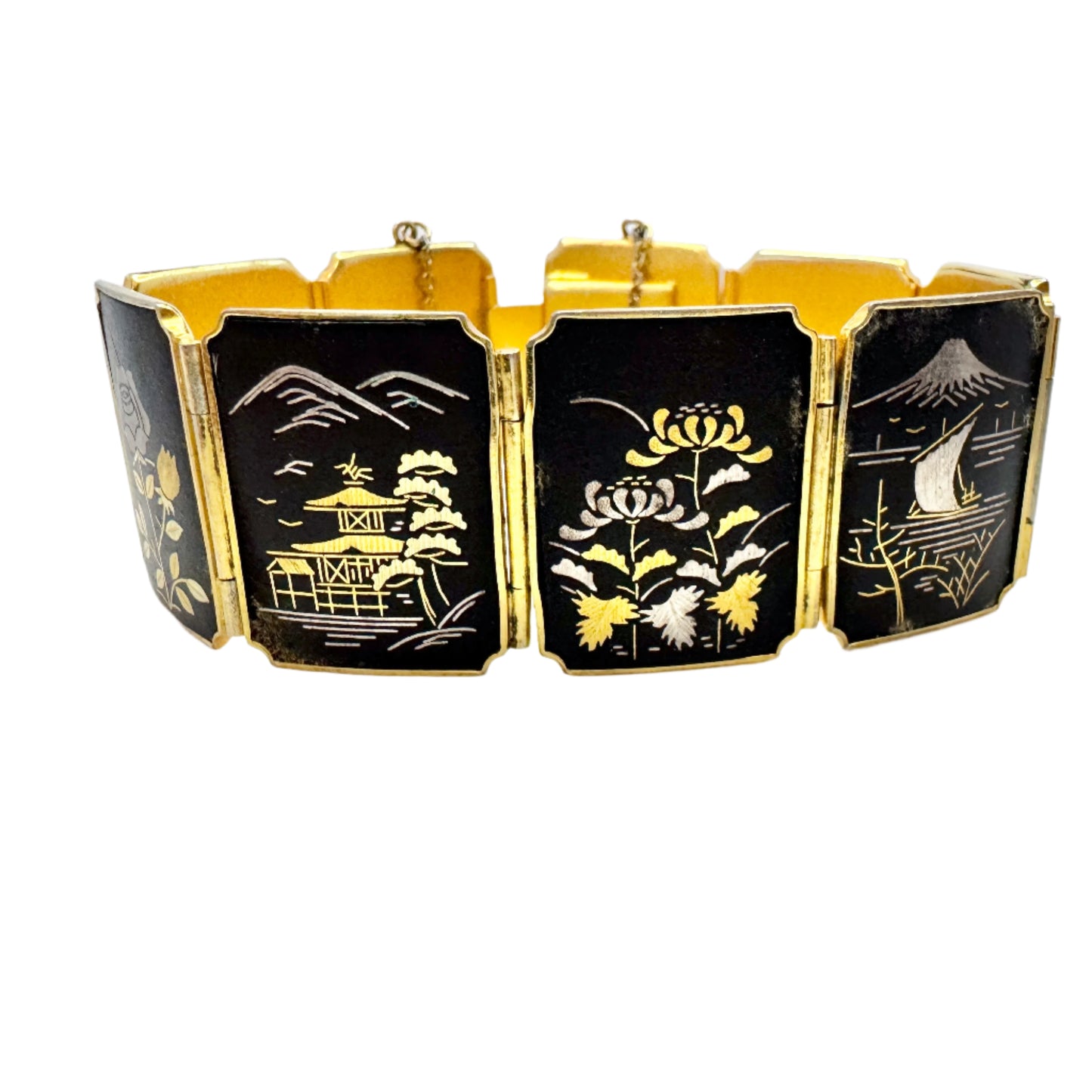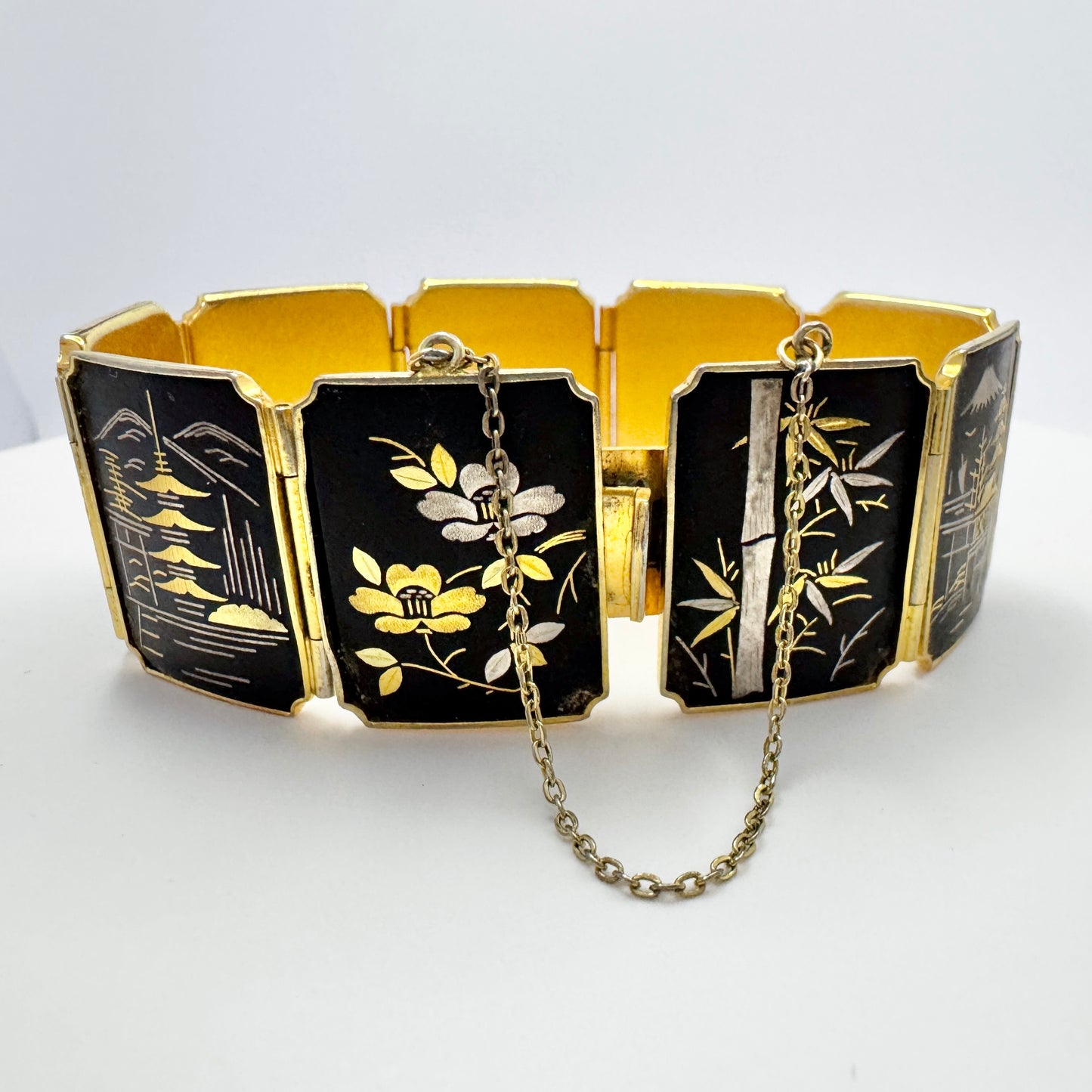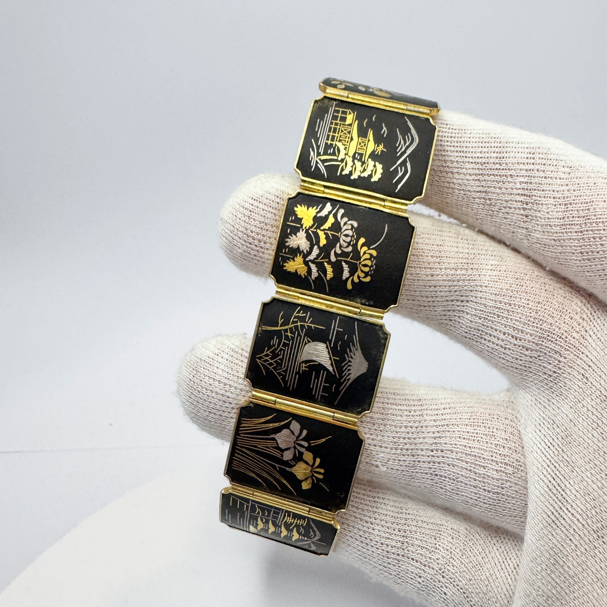 日本。ヴィンテージ ダマスカス パネル コスチューム ジュエリー ブレスレット。