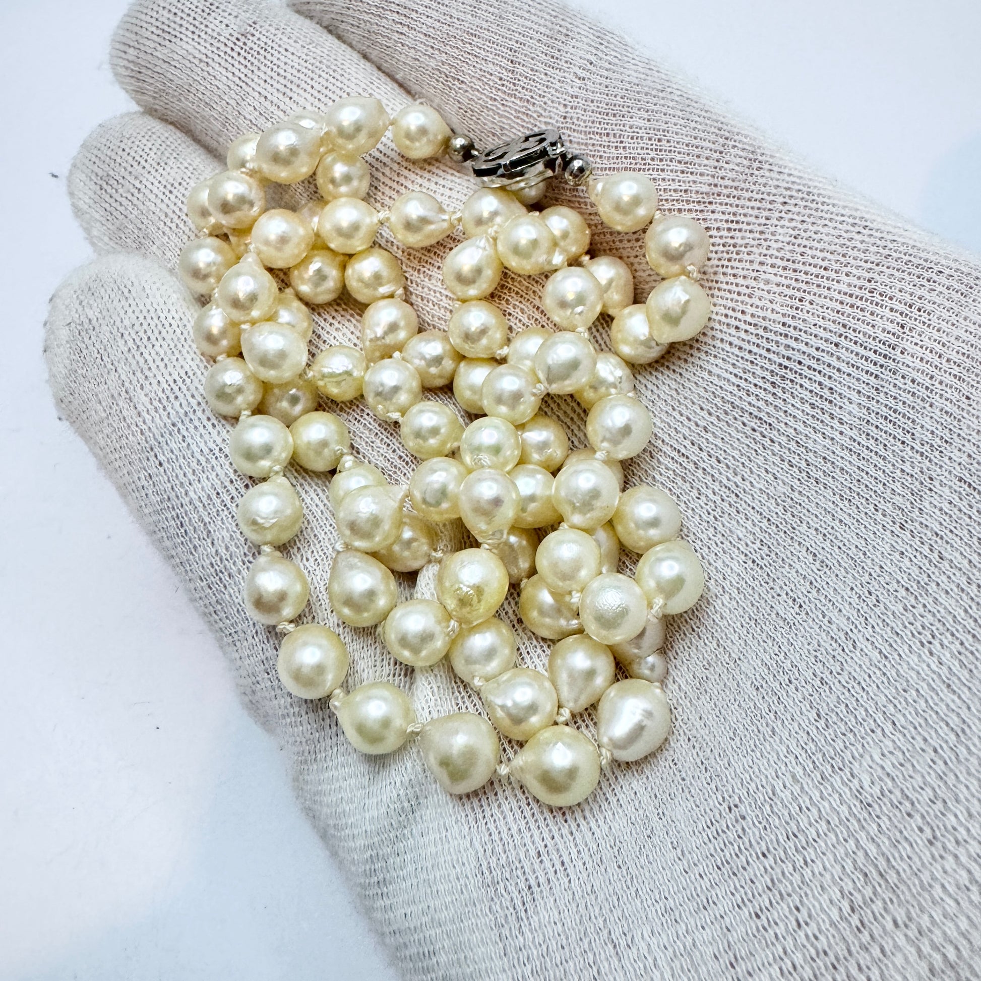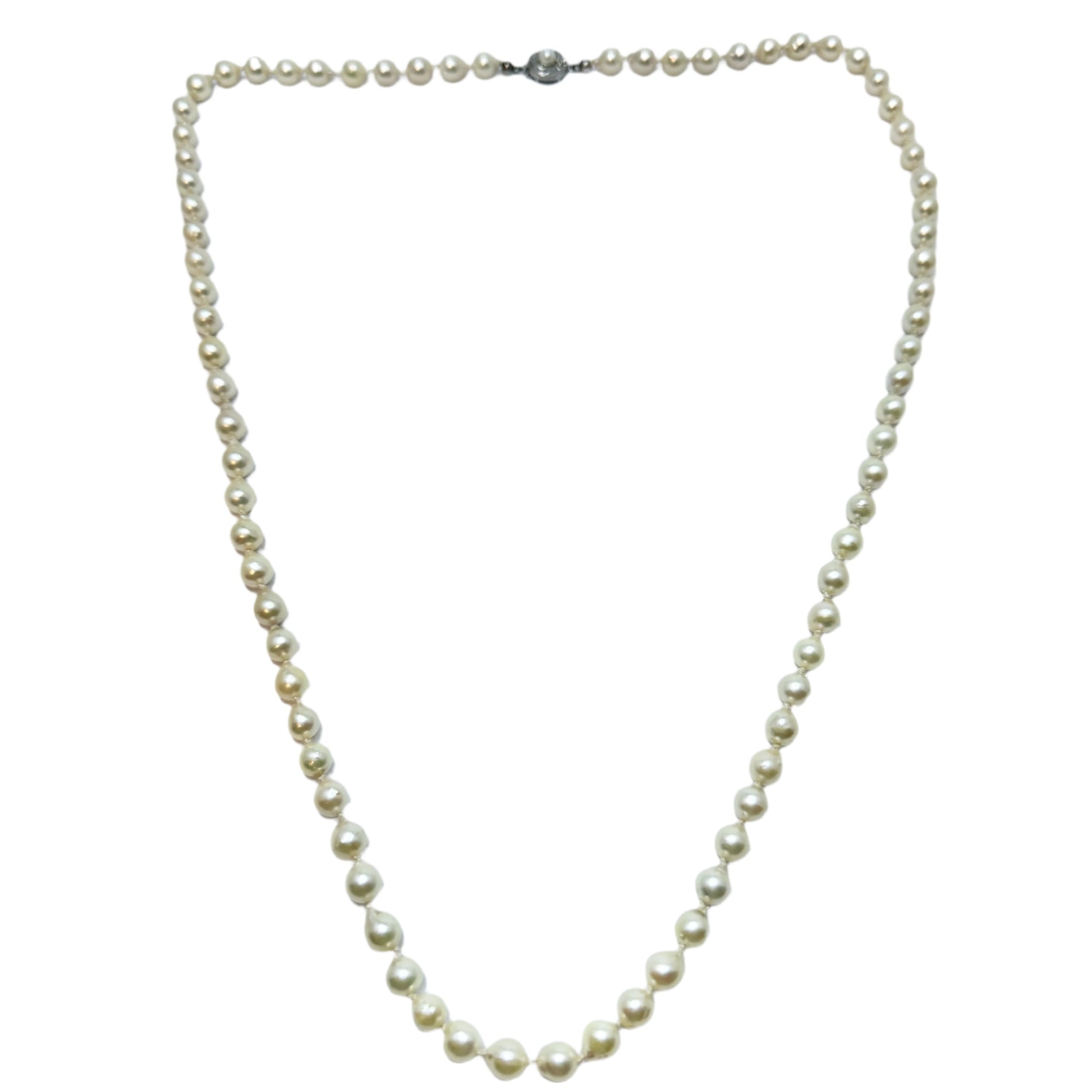 JKa Kohle、ドイツ。ヴィンテージ 27 インチ バロック アコヤ パール ネックレス。スターリング クラスプ。