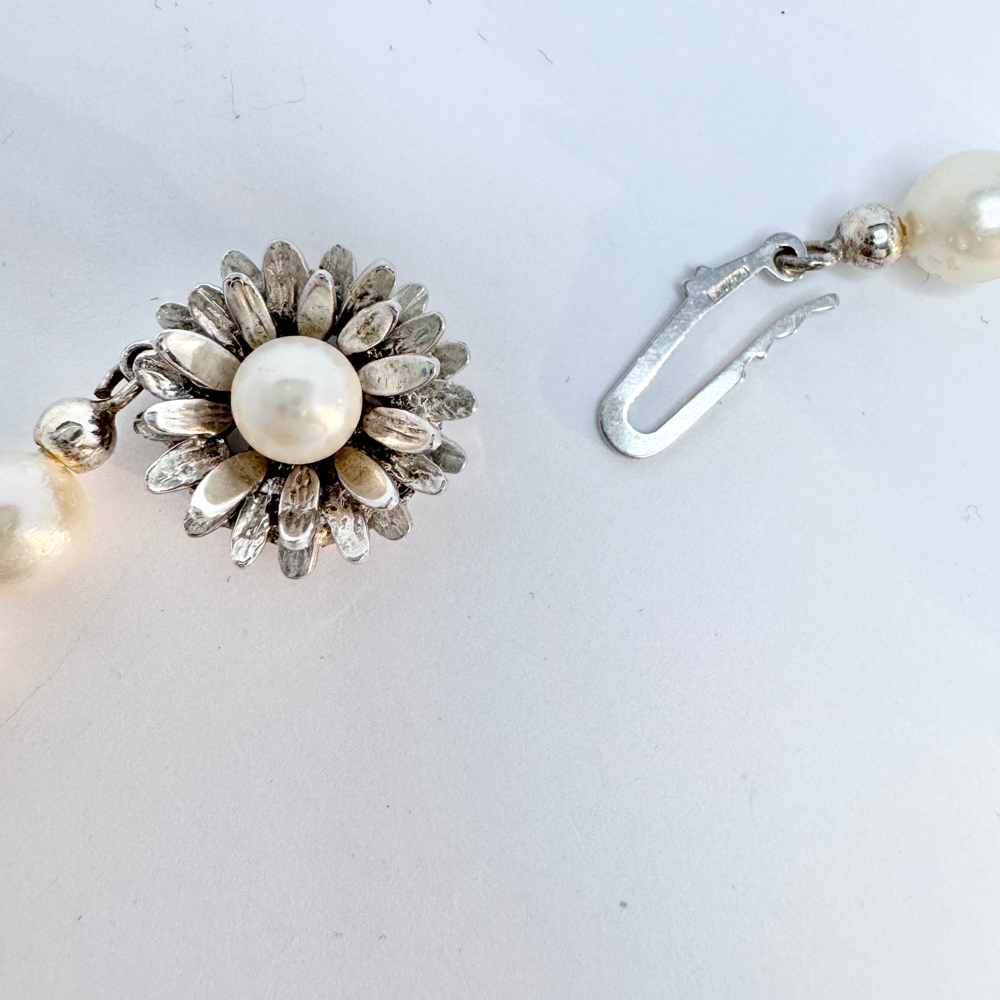JKa Köhle, Germany. Vintage Pearl Sterling Clasp Necklace.