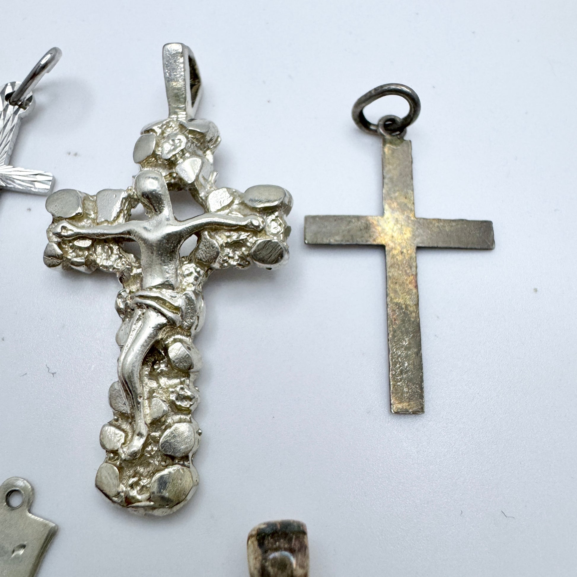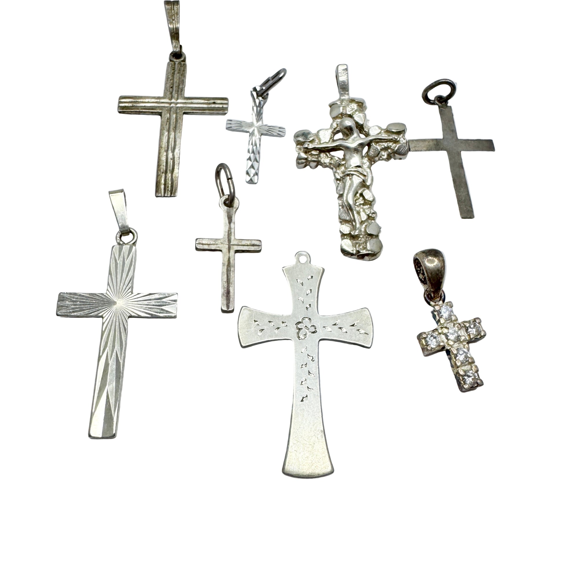 Job Lot. Vintage Solid Silver Cross Crucifix Pendants.