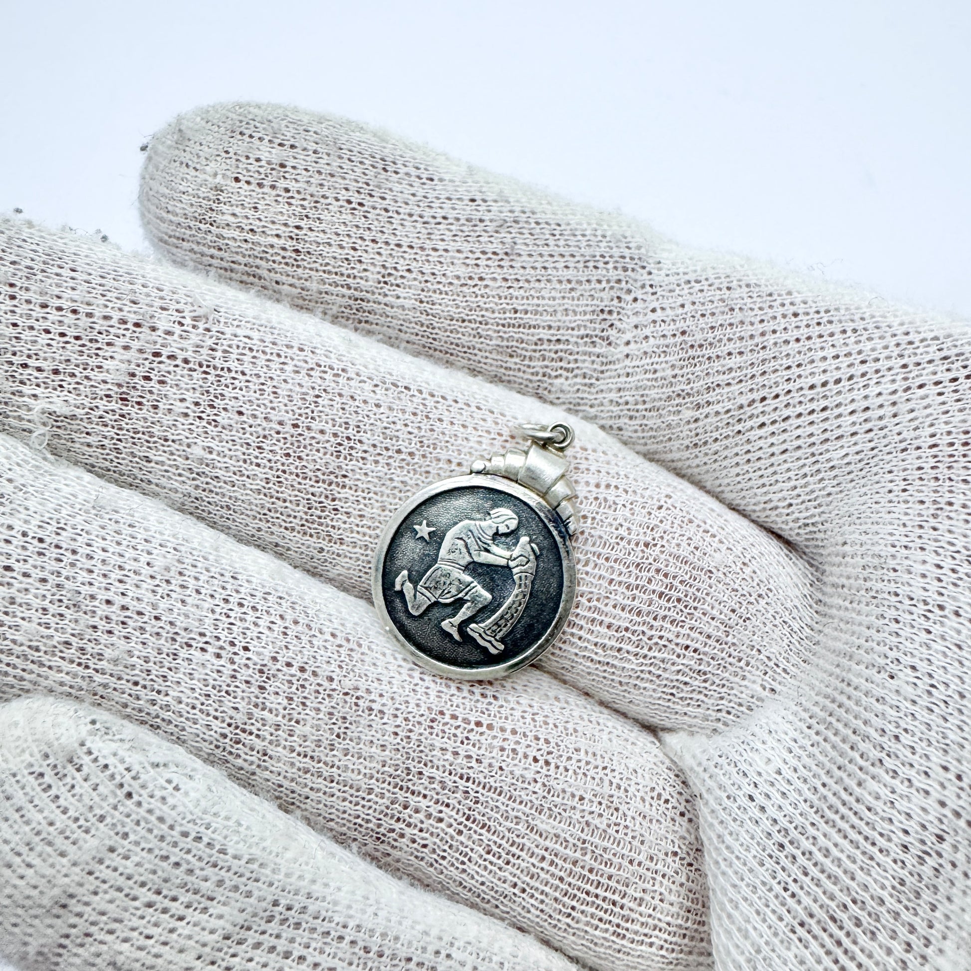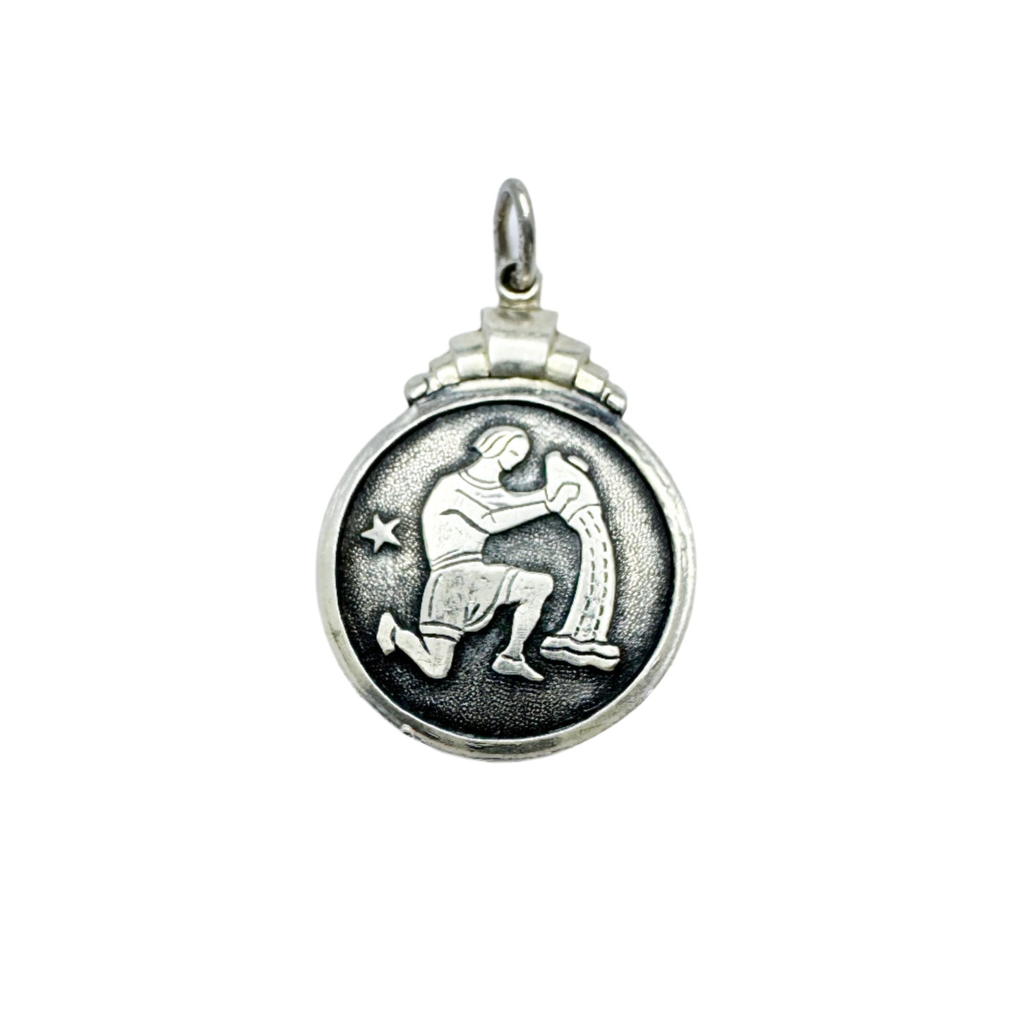K & E Carlson, Sweden 1950s. Solid Silver Aquarius Zodiac Charm.